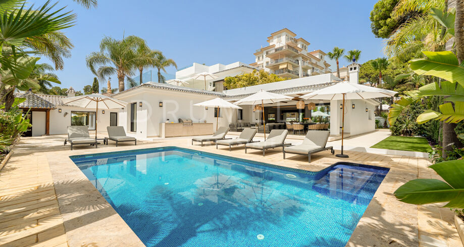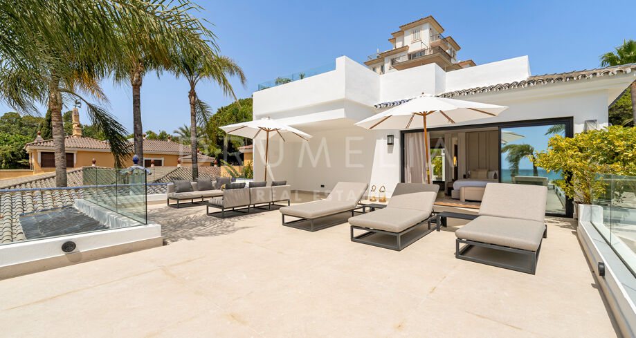 Villa de lujo en primera línea de playa en Puerto Banús con vistas al mar