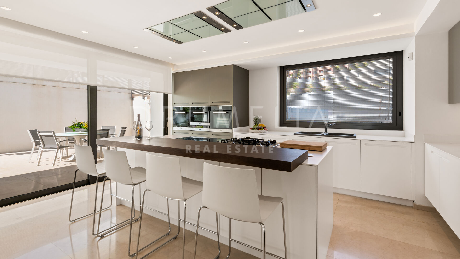 Этот превосходный современный особняк для аренды идеально подходит для тех, кто хотел бы провести отпуск в одном из самых эксклюзивных, безопасных и востребованных гольф-сообществ Марбельи. Расположенный на живописном участке 1.300 м², эффектный дом площадью 1.000 м² с изысканным эко-дружественным дизайном и современным комфортом органично вписывается во впечатляющий ландшафт гольф-клуба «Los Flamingos». Он смотрит на юг и любуется панорамными видами на море, горы и изумрудное гольф-поле.