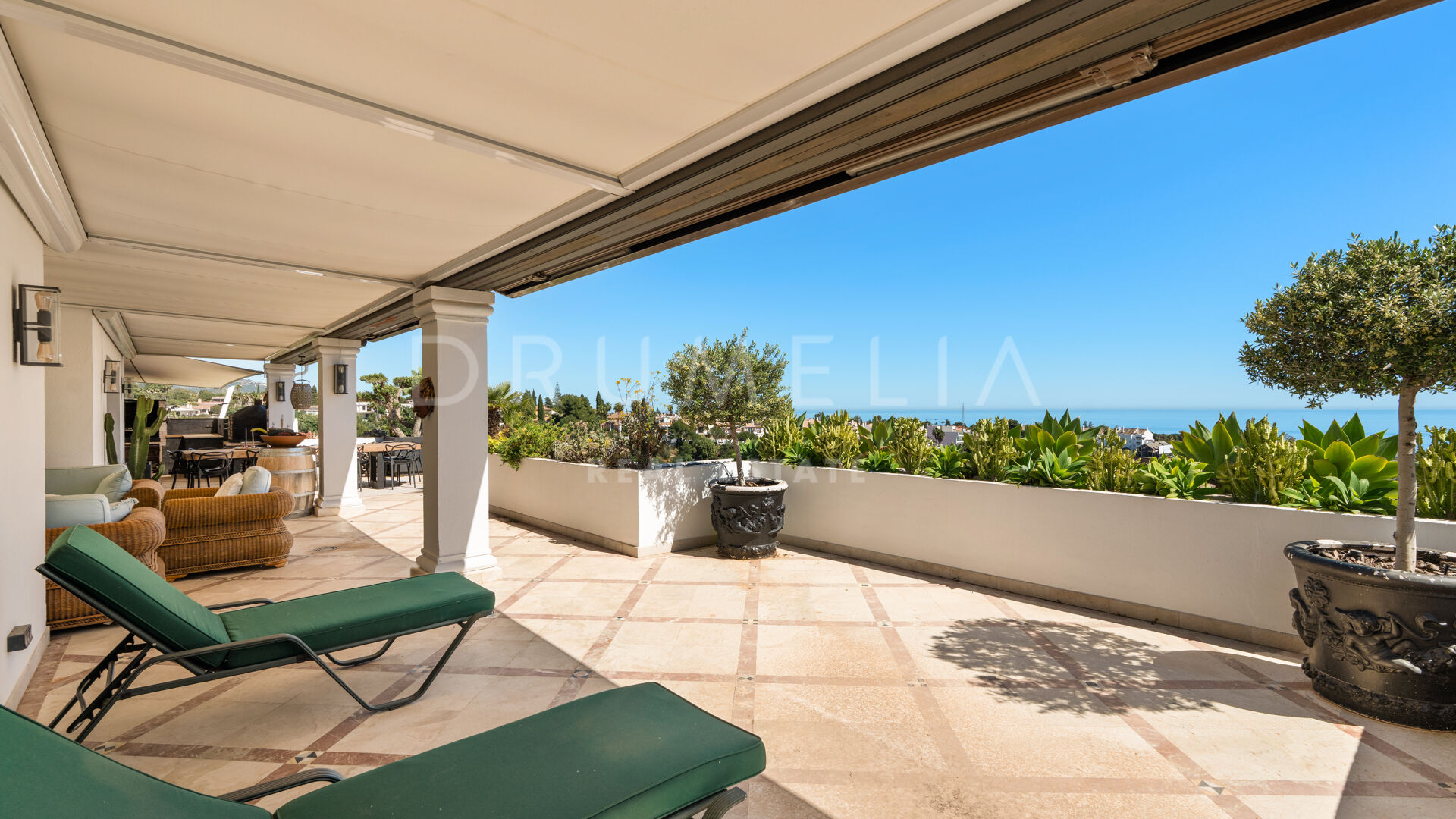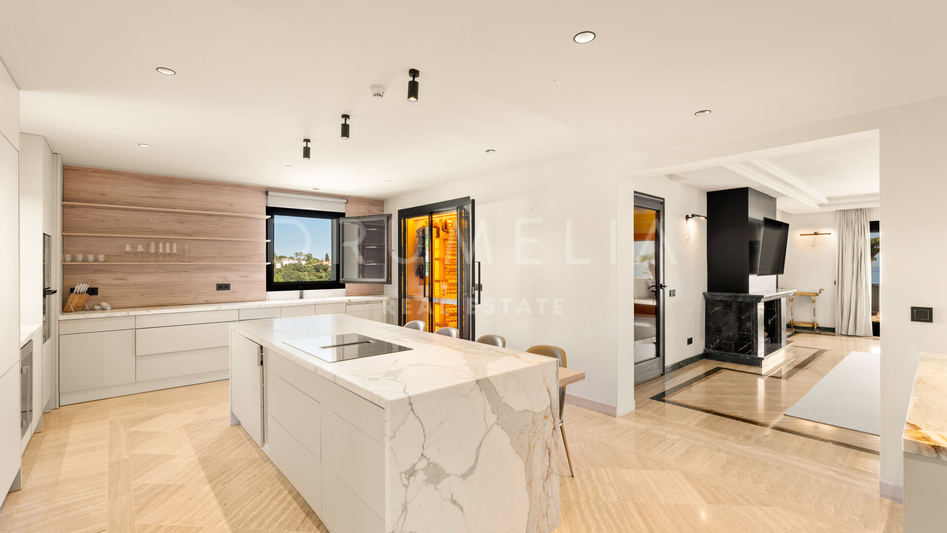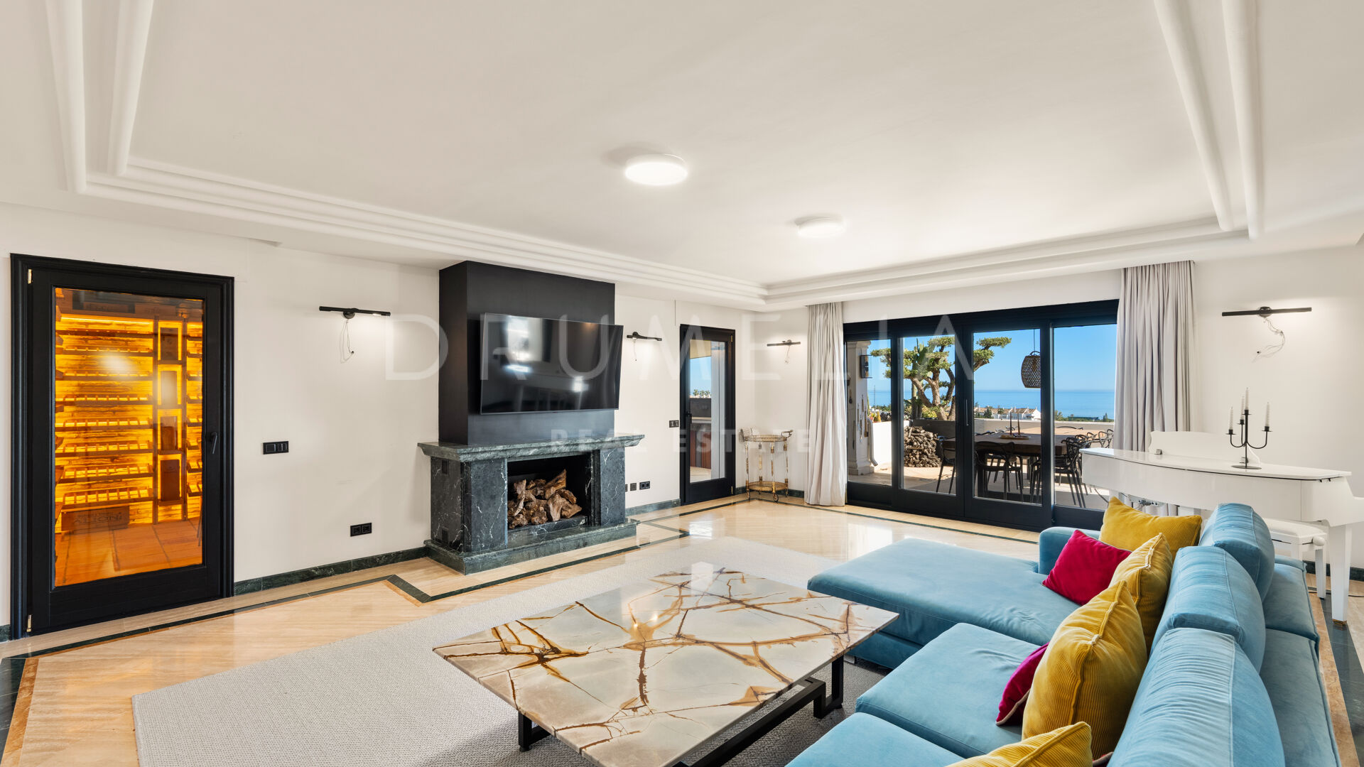 Объект предлагает 376 м² внутреннего пространства с светлыми и просторными жилыми зонами, которые плавно переходят в современную кухню и частный винный погреб.Интерьеры гармонично продолжаются на террасы площадью 191 м², откуда открываются панорамные виды на Средиземное море, побережье Марбельи и гору Ла Конча. Несколько открытых зон для обедов и отдыха создают идеальные условия для расслабления и приёма гостей.