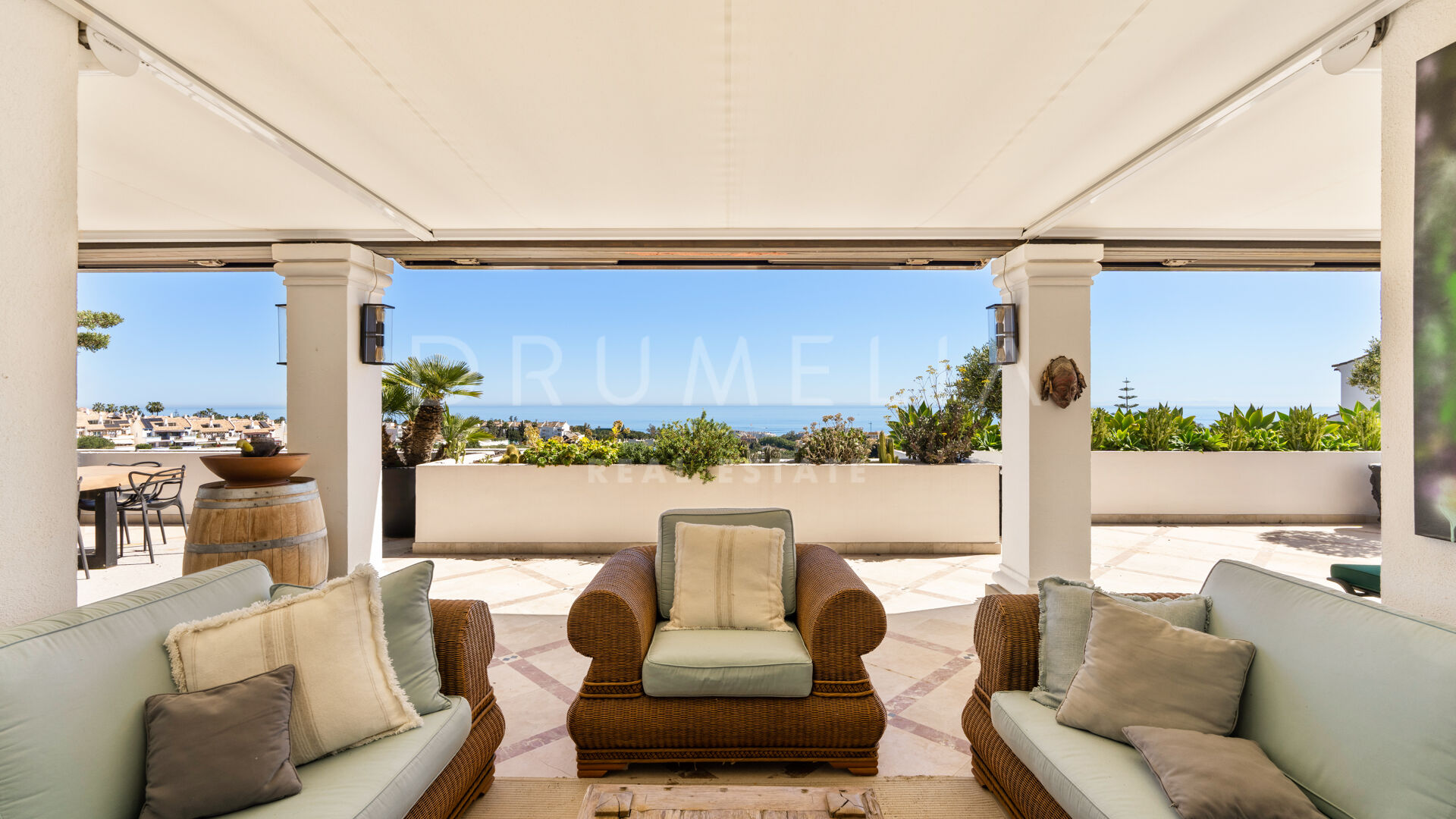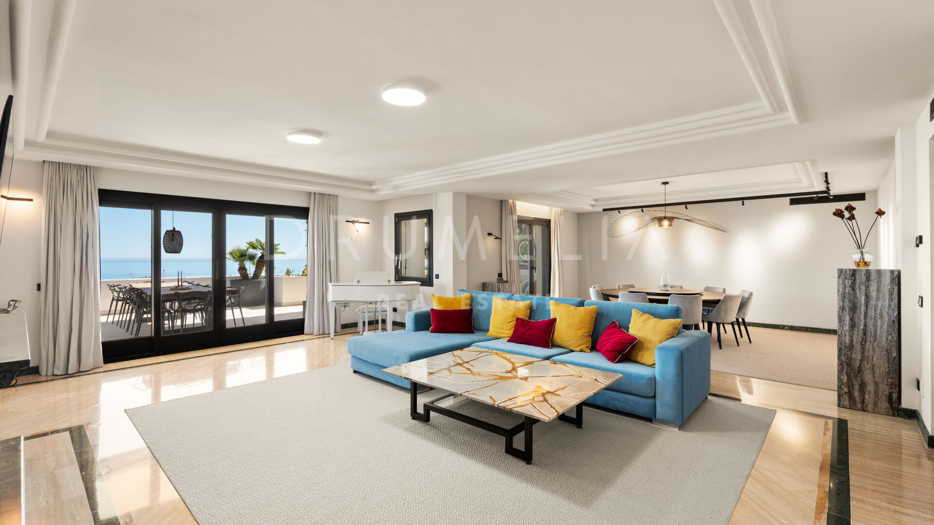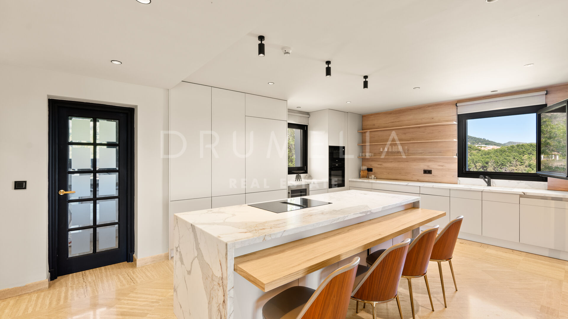 Объект предлагает 376 м² внутреннего пространства с светлыми и просторными жилыми зонами, которые плавно переходят в современную кухню и частный винный погреб.Интерьеры гармонично продолжаются на террасы площадью 191 м², откуда открываются панорамные виды на Средиземное море, побережье Марбельи и гору Ла Конча. Несколько открытых зон для обедов и отдыха создают идеальные условия для расслабления и приёма гостей.