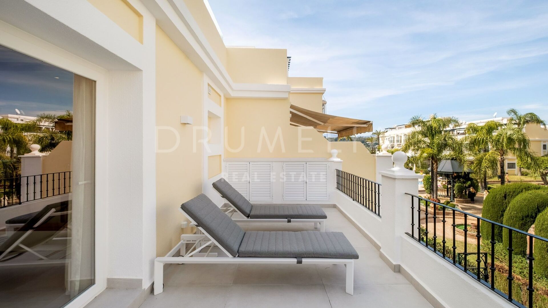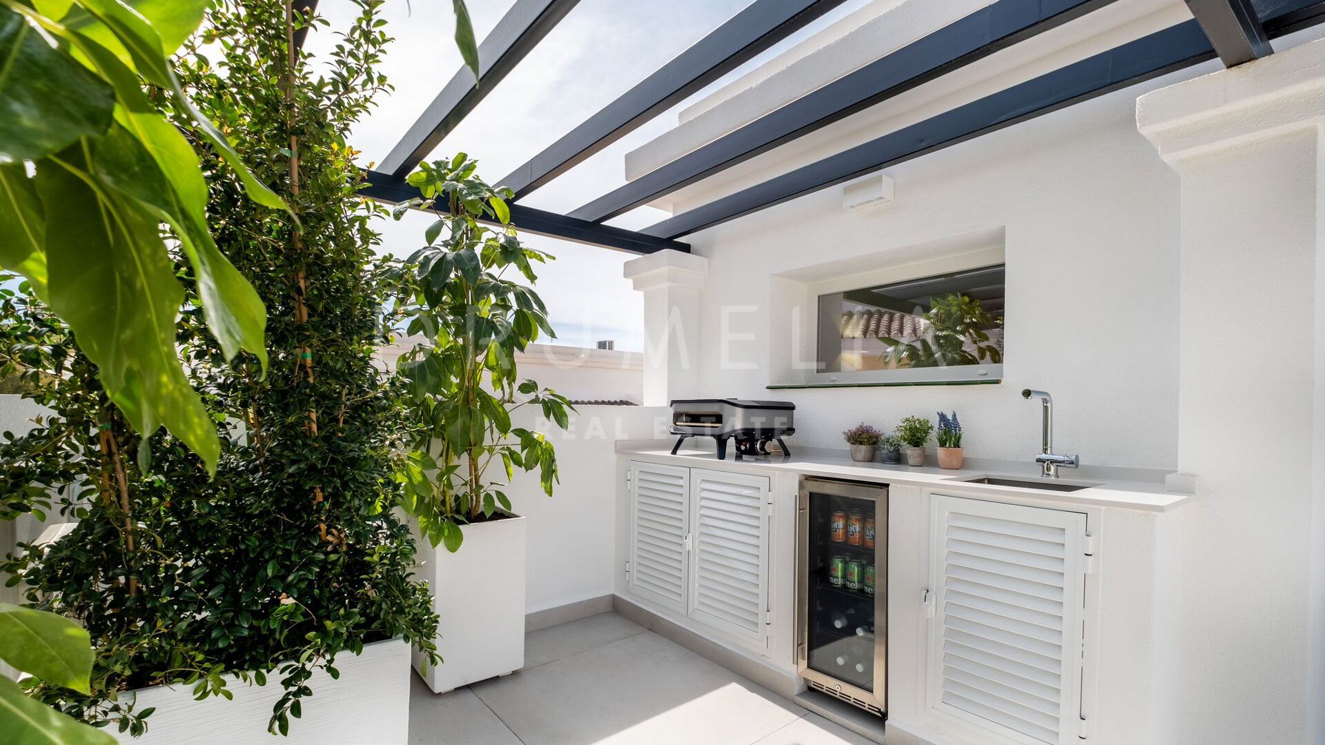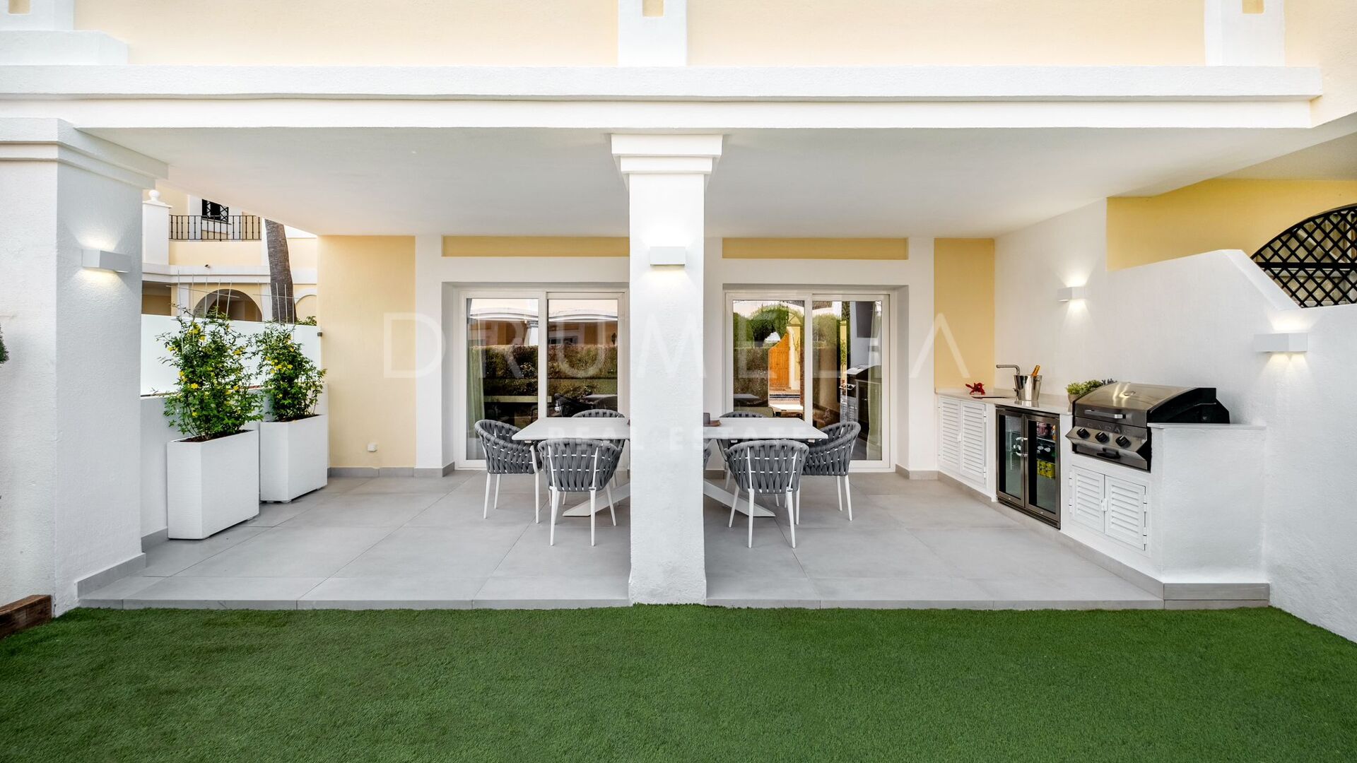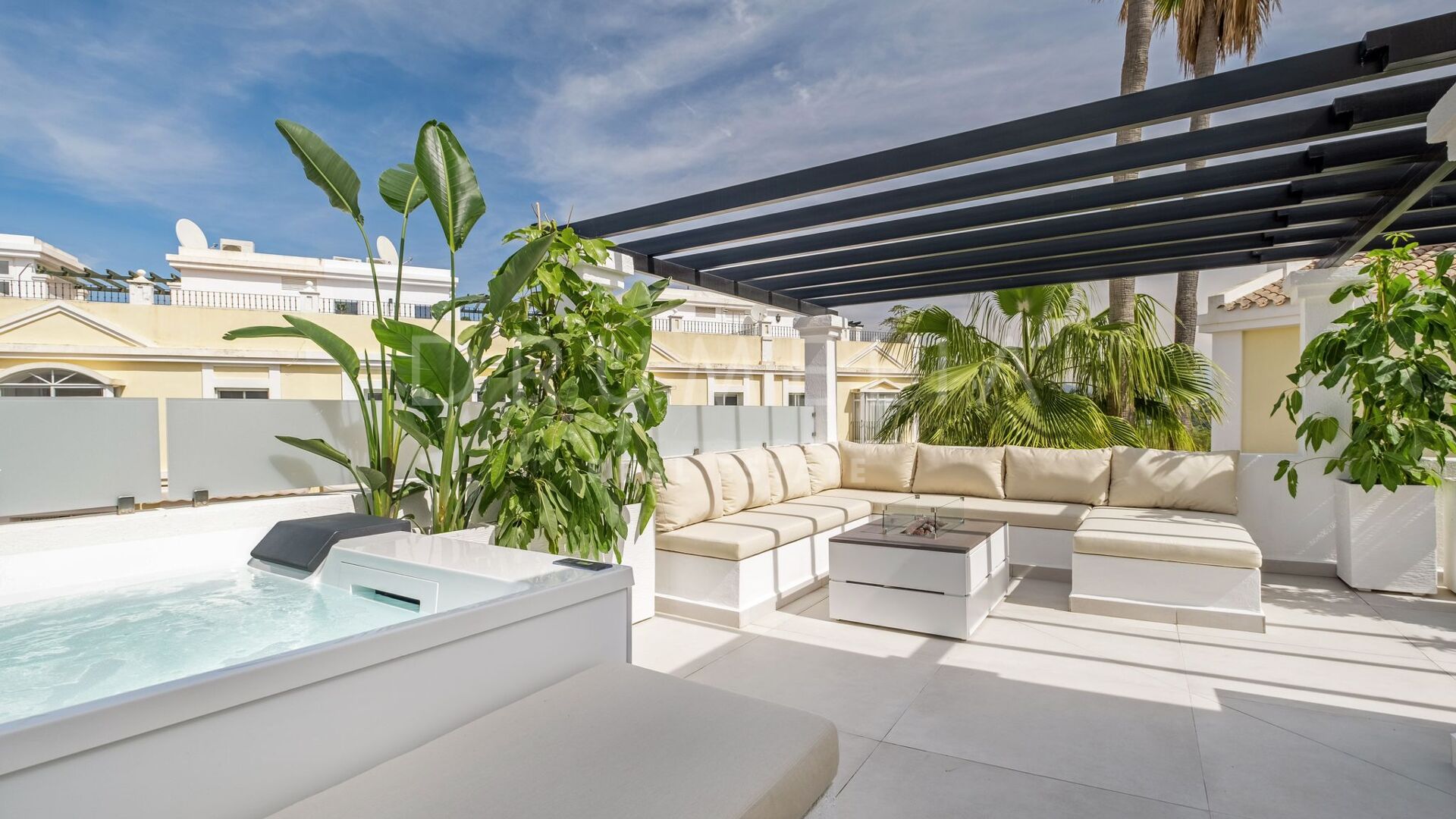 Inbäddat i Aloha Gardens, ett privat och säkert gated community i hjärtat av Nueva Andalucía, ligger detta utsökta radhus som omdefinierar konsten att leva ett raffinerat liv. Detta hus med 4 sovrum är omsorgsfullt renoverat och strategiskt placerat för oöverträffad tillgång till viktiga bekvämligheter, och är ett exempel på en enastående levnadsstandard.