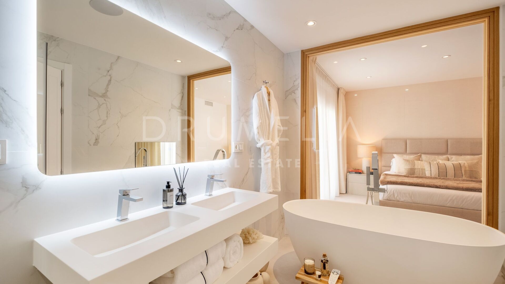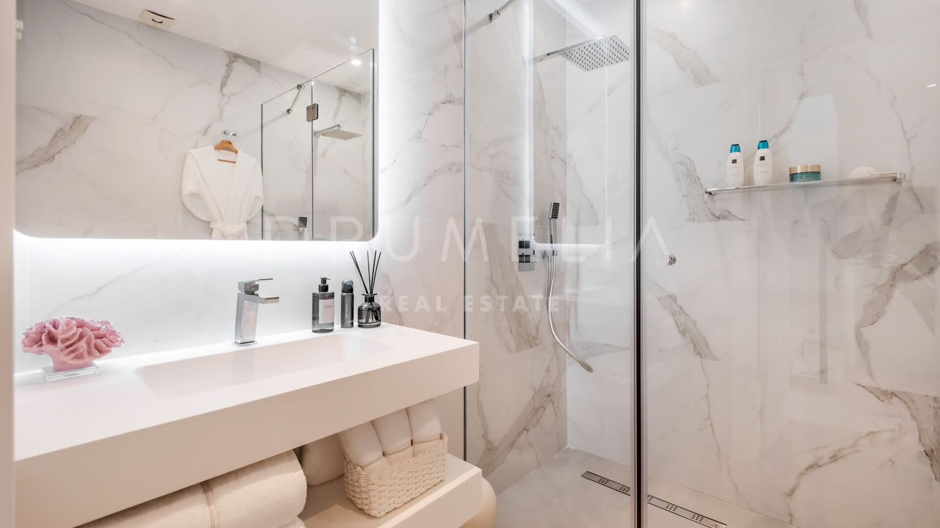 Fyra generöst tilltagna sovrum tillgodoser behoven hos en kräsen familj, medan en rad terrasser och ett överdådigt solarium erbjuder idylliska tillflyktsorter där man kan koppla av och njuta av panoramautsikten. Solariet, som är utsmyckat med bastu och jacuzzi, förvandlas till en privat oas, en exklusiv tillflyktsort för avkoppling och underhållning.