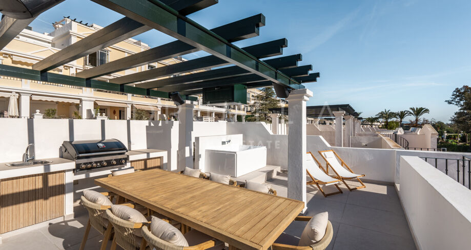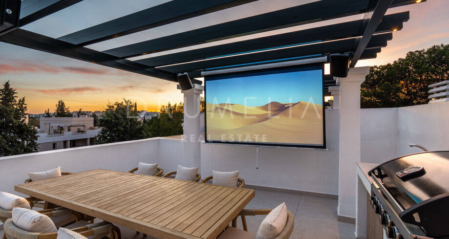 Fullständigt renoverad takvåning i två plan med tre sovrum och solarium i Aloha Gardens, Nueva Andalucía