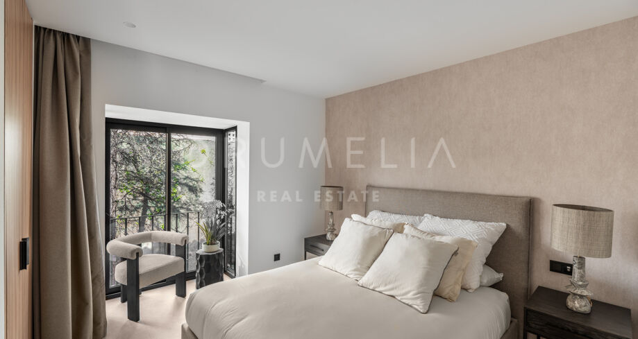Belägen i det prestigefyllda och inhägnade området Aloha Gardens, mitt i hjärtat av Nueva Andalucía, erbjuder denna eleganta takvåning i två plan en sällsynt möjlighet att förvärva ett fullständigt renoverat hem i ett av Marbellas mest eftertraktade områden. Med färdigställande planerat till första kvartalet 2026 genomgår fastigheten en noggrann förvandling för att leverera samtida lyx, tidlös design och sömlös integration mellan inomhus- och utomhusliv.