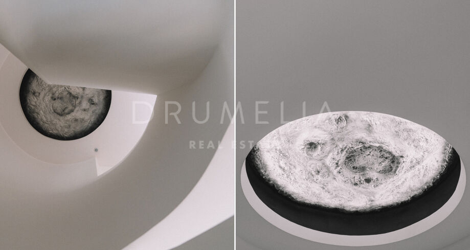 På övre plan finns de privata utrymmena med tre rymliga sovrum, noggrant utformade för komfort och avskildhet. Mastersviten har en stor walk-in-garderob, ett lyxigt badrum en suite samt direkt tillgång till en privat terrass. Härifrån leder en trappa upp till ett taksolarium – en fridfull oas med panoramautsikt och oändliga möjligheter till utomhusliv. Två ytterligare sovrum delar på ett smakfullt inrett badrum, perfekt för familj eller gäster.