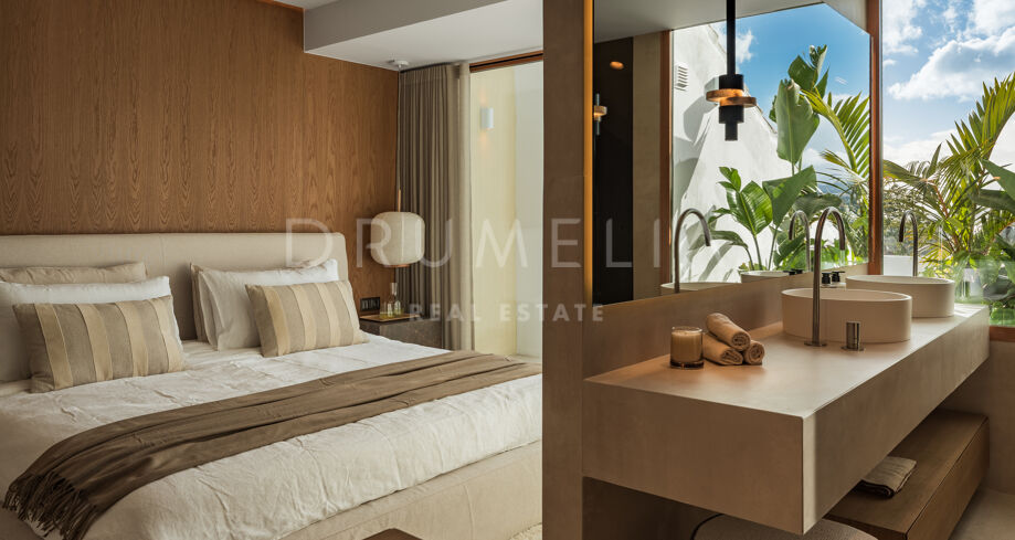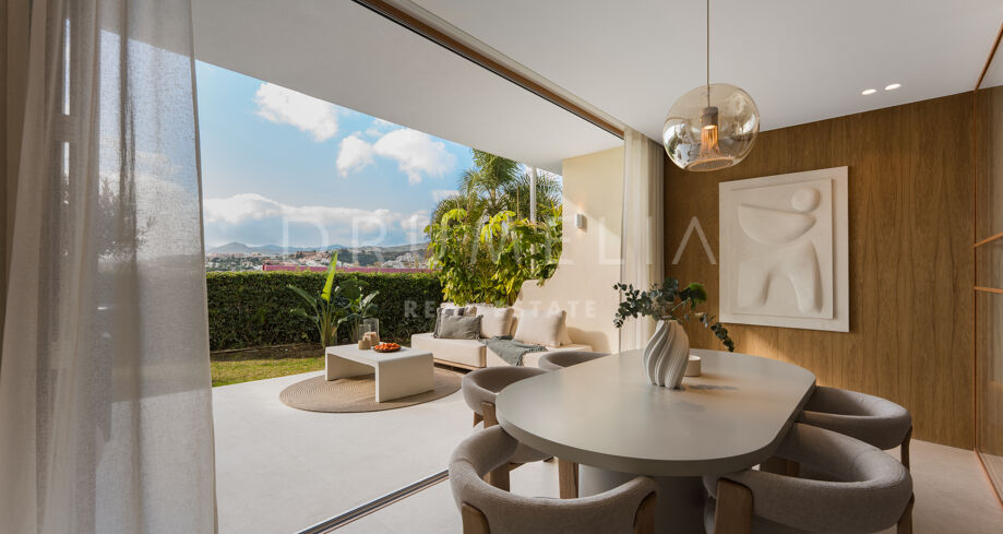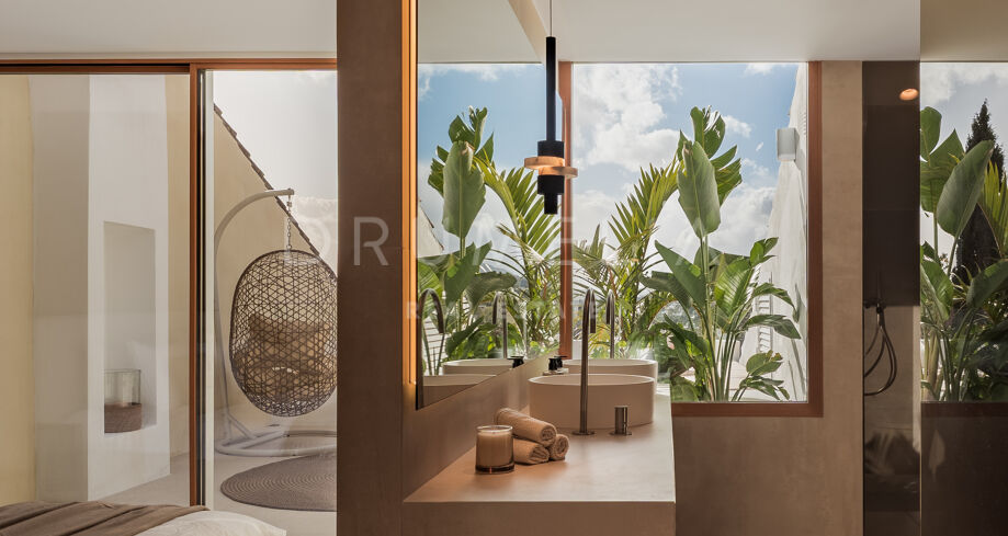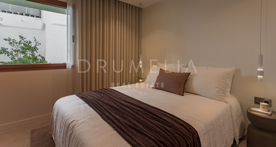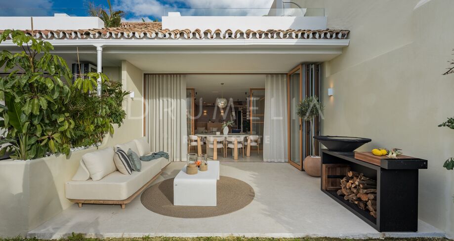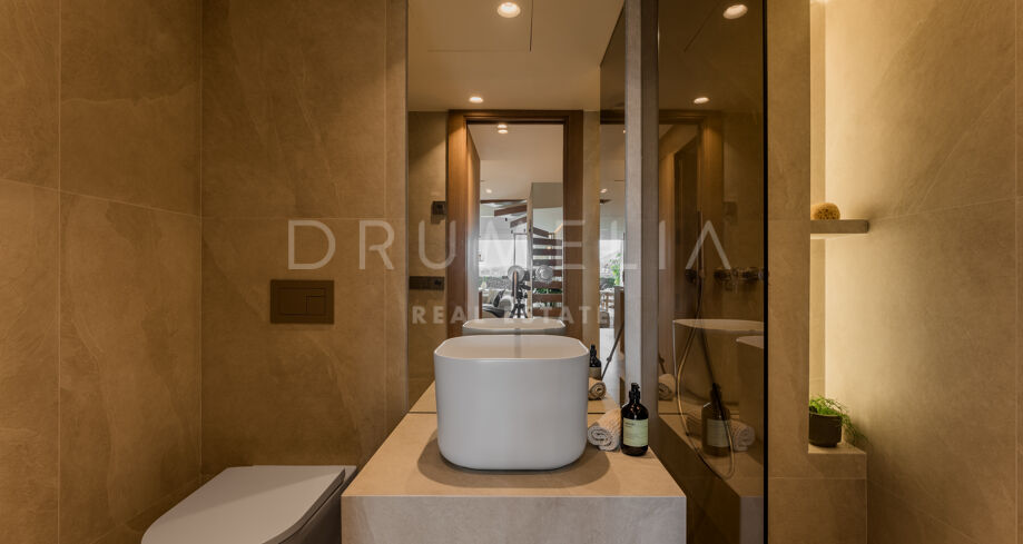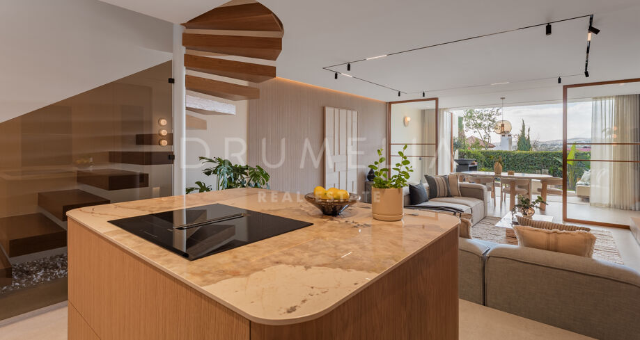 De privata terrasserna förlänger bostadsytorna och skapar idealiska miljöer för avkoppling, utomhusaktiviteter och måltider i en lugn omgivning. Högkvalitativa materialval och hantverksmässig snickeri förstärker bostadens exklusiva karaktär, vilket gör den attraktiv både som permanentbostad och som fritidsboende i ett av de mest etablerade områdena i Nueva Andalucía.