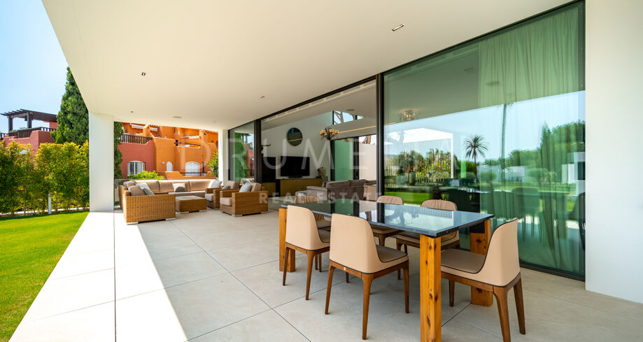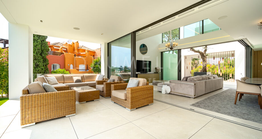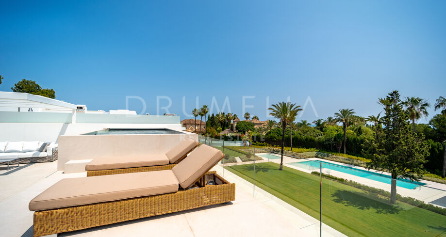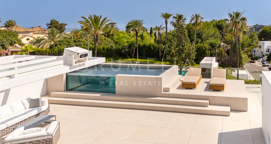 Parhusvilla med panoramisk takterrass i Nueva Andalucía