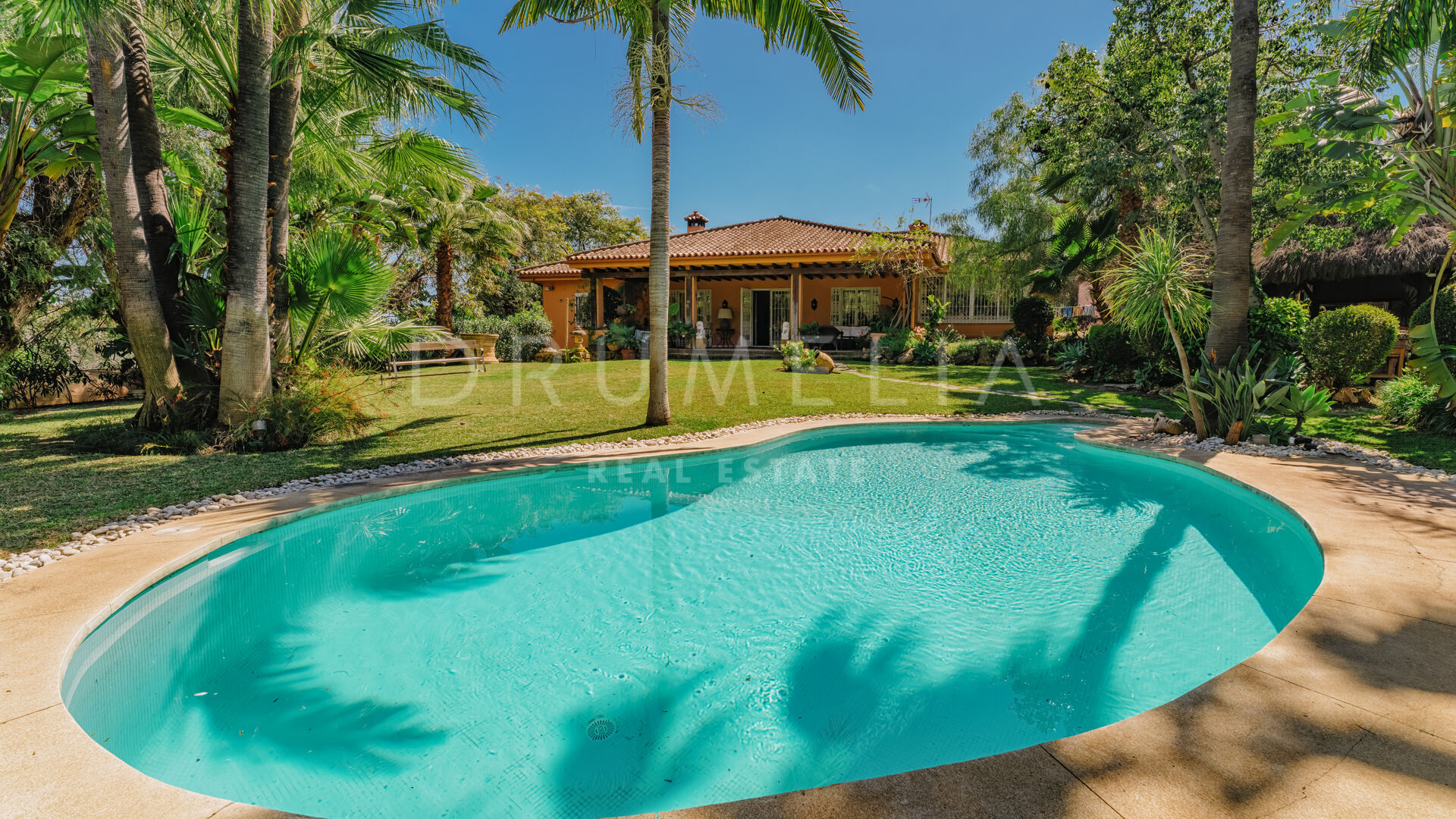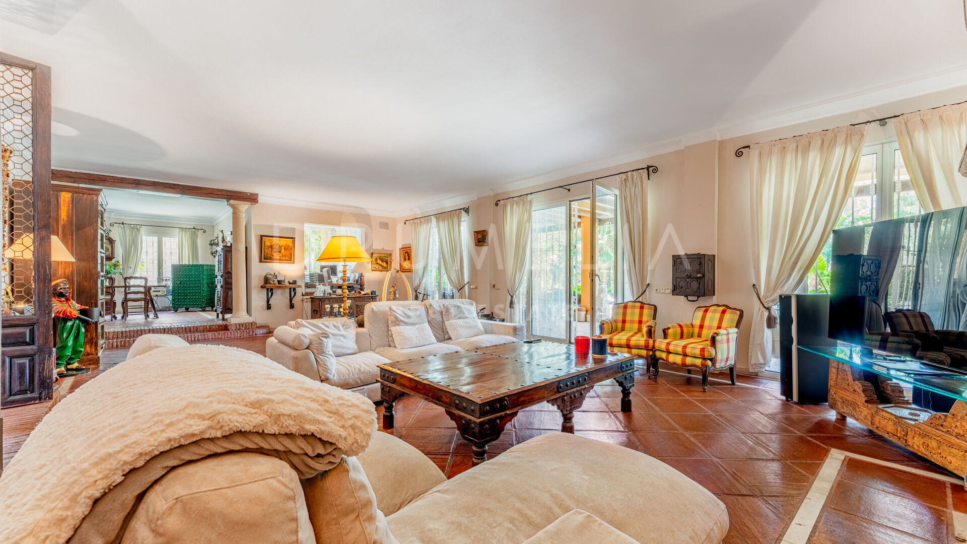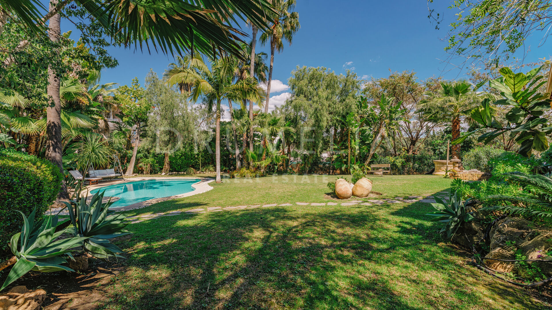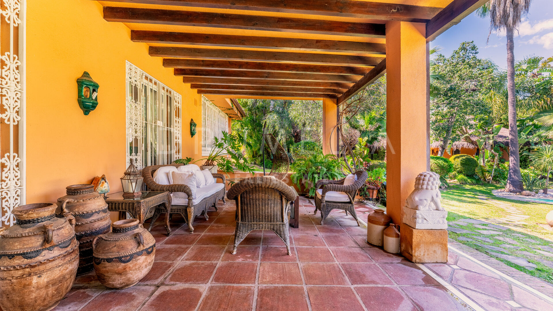 Denna autentiska andalusiska villa ligger i den exklusiva enklaven atalaya de río verde och är en tidlös tillflyktsort som blandar traditionell medelhavsarkitektur med modern komfort. på en frodig, privat tomt och omgiven av moget tropiskt landskap erbjuder hemmet en exceptionell livsstil bara några minuter från puerto banús och de gyllene stränderna i marbella.