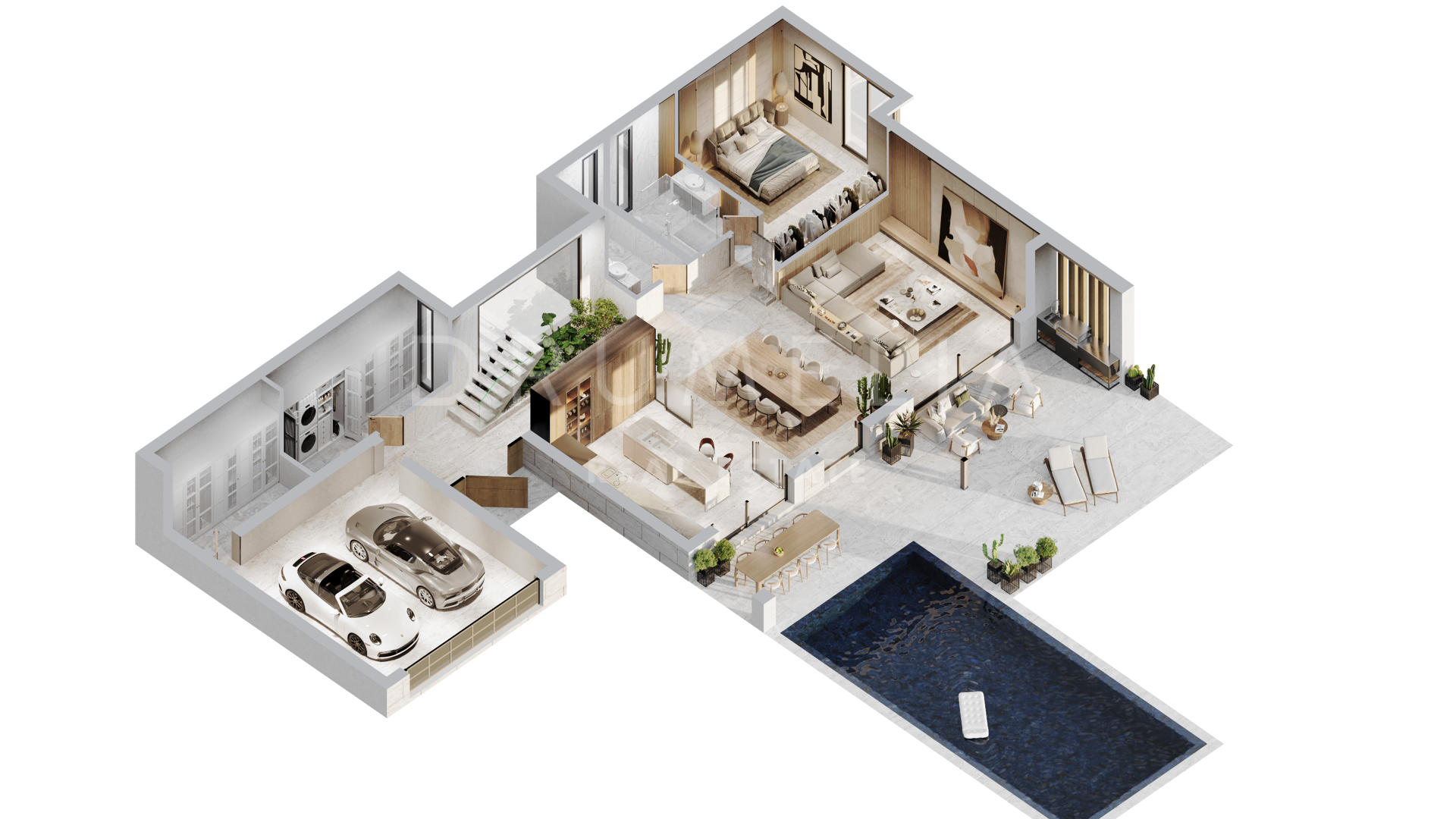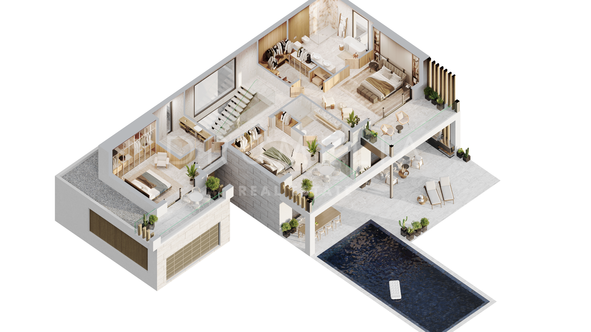 Med en byggd yta på 428 m² på en tomt på 1.047 m² har denna villa 122 m² terrasser, vilket ger en perfekt livsstil inomhus och utomhus. Villan ligger i den södra delen av området och har en fantastisk havsutsikt från markplan och bottenvåning. Den öppna planlösningen med fönster från golv till tak gör att det naturliga ljuset flödar in i de inre utrymmena. Dessutom finns en privat pool och omsorgsfullt anlagda trädgårdar som skapar en idealisk oas för avkoppling och underhållning.