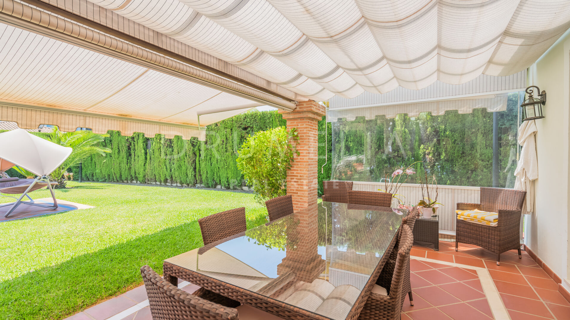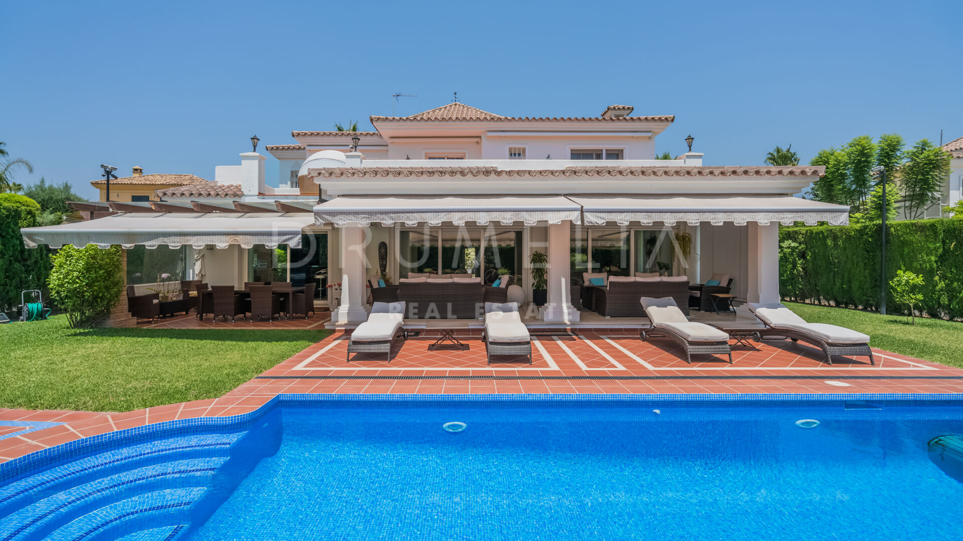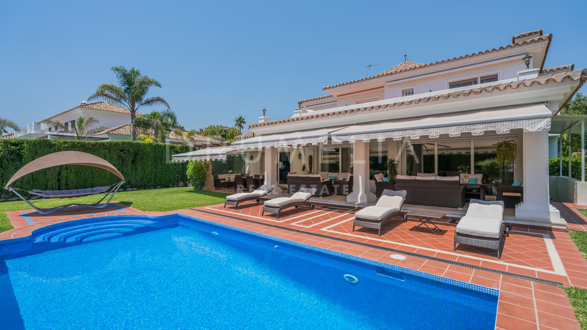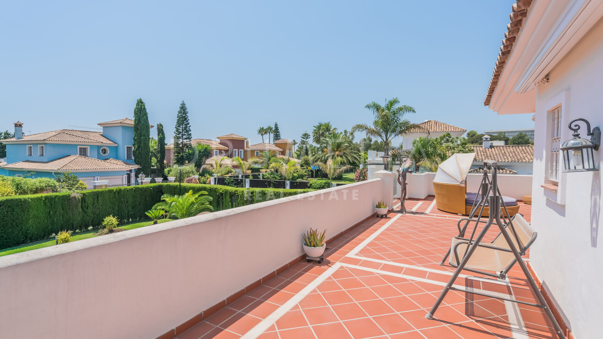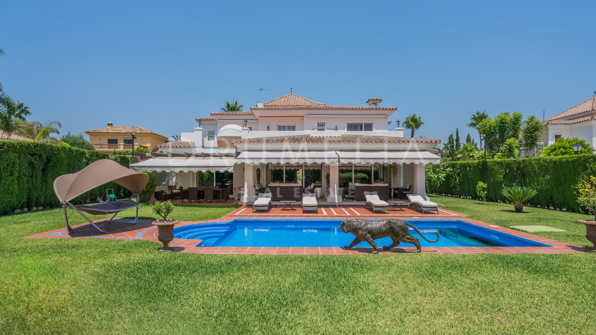 Den sydorienterade villan har gott om sol och ljus som bjuder in till den övre terrassen- solarium, pool med utmärkta solbadplatser, täckta terrasser/allrum på 127 m² med al fresco-matplatser och kaffehörnor, perfekt för avkoppling eller underhållning utomhus. Tomten på 1 109 m² har en välskött trädgård med gröna gräsmattor och rabatter, uppvuxna träd och utomhusstatyer som är i total harmoni med den övergripande stilen.