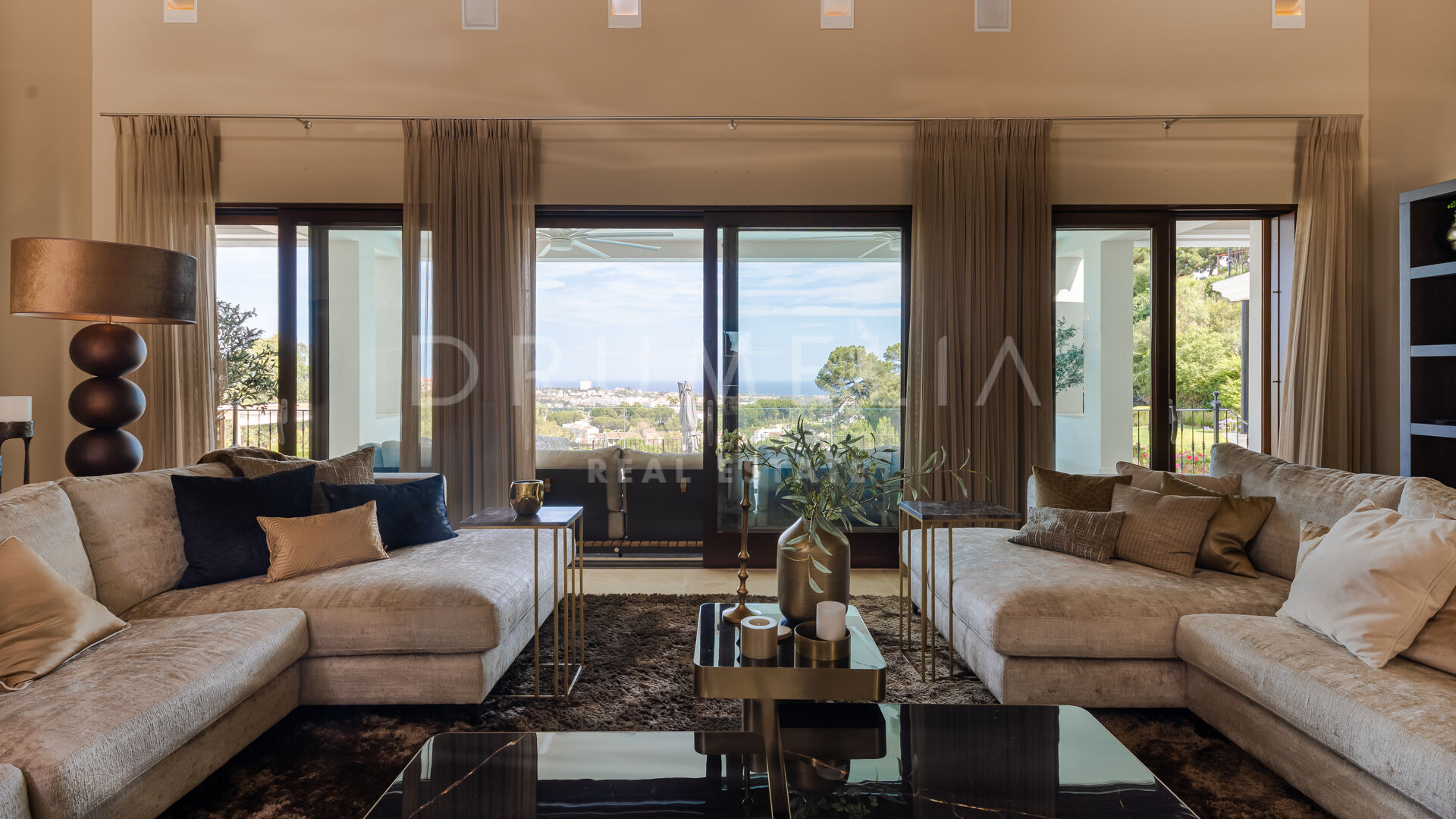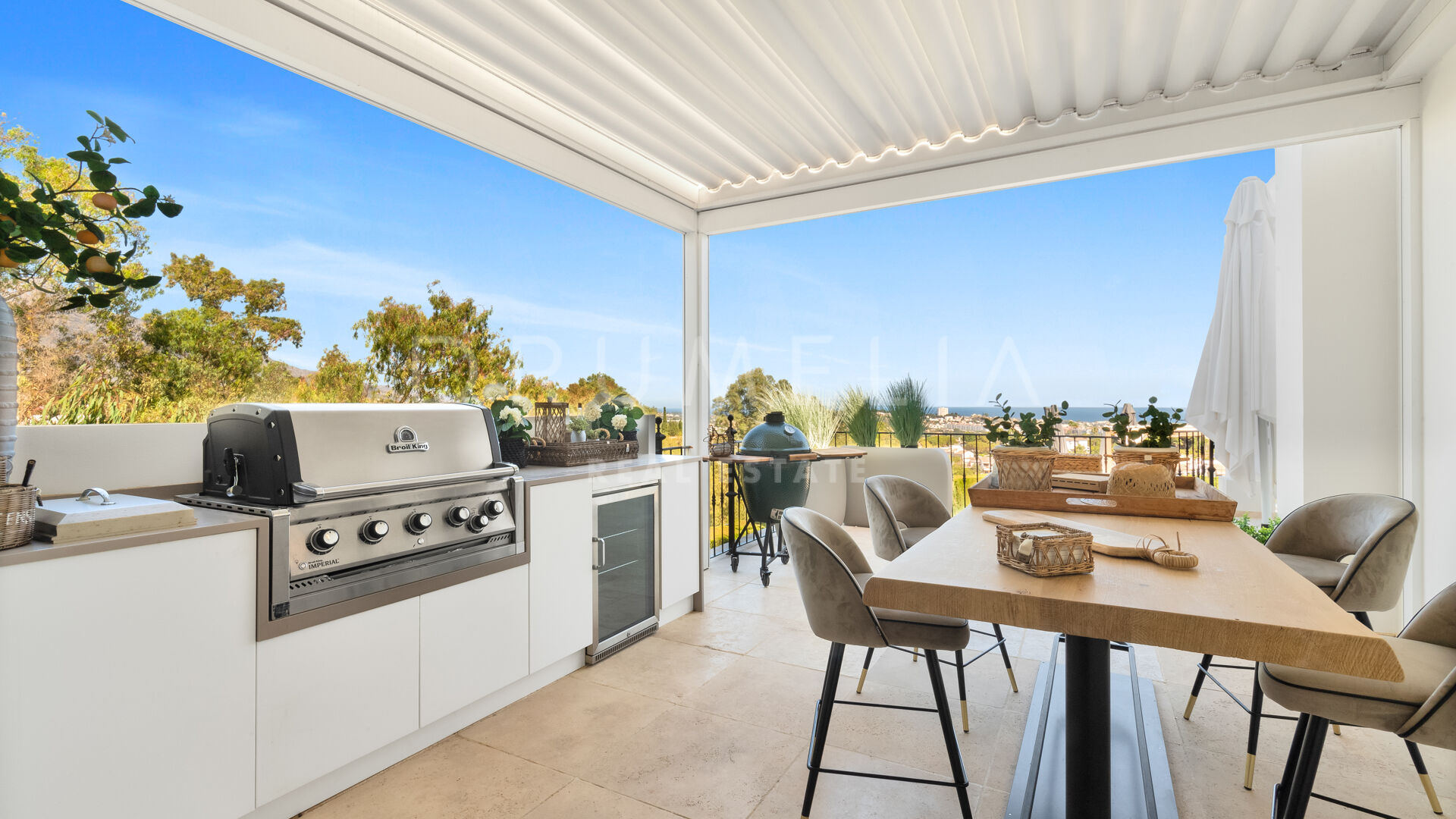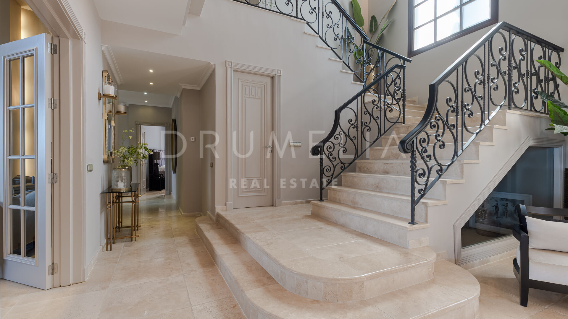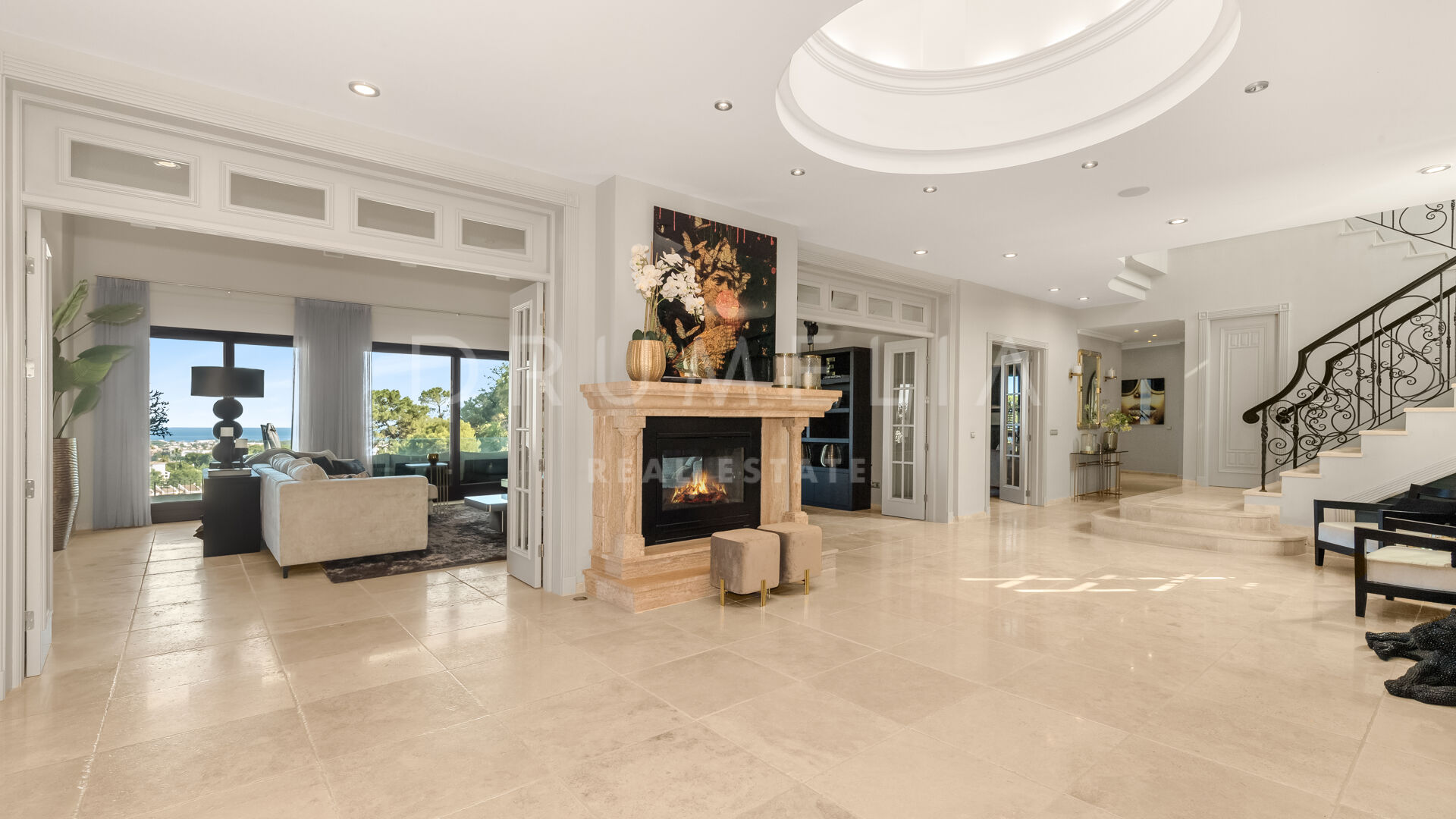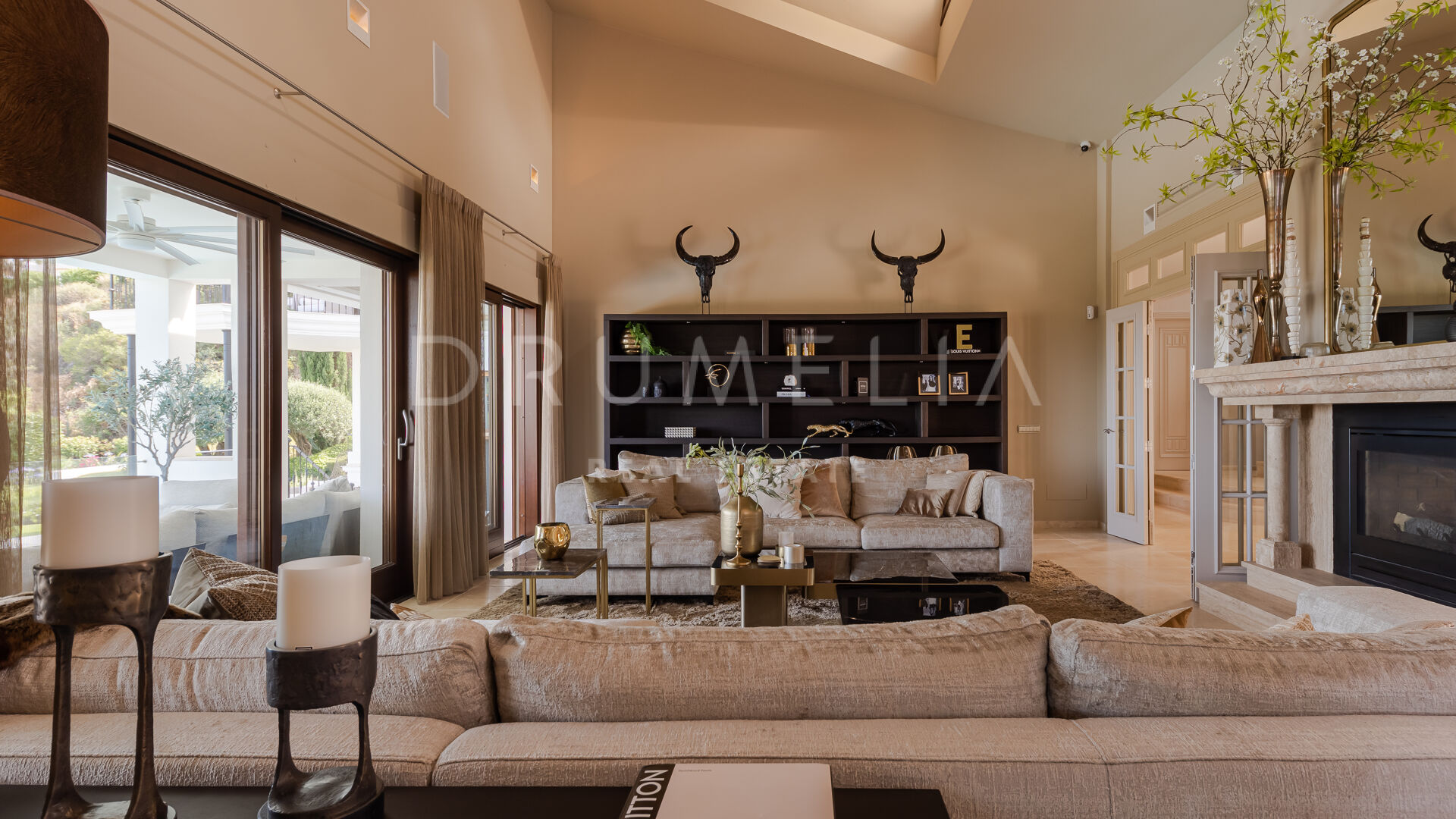 Den renoverade och omsorgsfullt designade bostaden på 1 014 m² med 211 m² terrasser ligger på en tomt på 10 100 m², omgiven av naturen och de exklusiva fastigheterna i La Quinta. Detta är ett verkligt arkitektoniskt mästerverk i modern klassisk stil… aka tidlöst! Det sätter en ny standard för raffinerat boende och kombinerar utan ansträngning modernitet och tradition. När du kliver in i huset blir du fängslad av den storslagenhet och elegans som breder ut sig framför dig. Uppmärksamheten på detaljer är uppenbar i varje hörn, från de noggrant utformade ytorna till de tankeväckande kuraterade designelementen. De stora fönstren och de vidsträckta terrasserna på den söderläge fastigheten erbjuder vidsträckt utsikt över det blå Medelhavet och de majestätiska bergen som ramar in landskapet. 2 rymliga lounger med plyschmöbler och magnifika konstverk inbjuder din familj och gäster att koppla av i oöverträffad komfort och stil. Det utsökta huset har 7 överdådigt inredda sovrumssviter, alla med eget badrum, inbyggda garderober eller omklädningsrum. 8 lyxiga badrum ger största möjliga bekvämlighet och funktionalitet för de kräsna invånarna i denna villa. Ett fantastiskt modernt kök är utrustat med hushållsapparater av högsta kvalitet, en ö och en frukostplats, och ansluten till en grillterrass. Ett förråd är bekvämt beläget för att tillgodose dina organisatoriska behov.