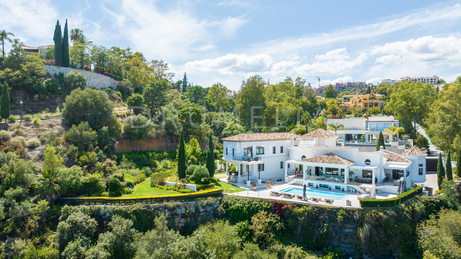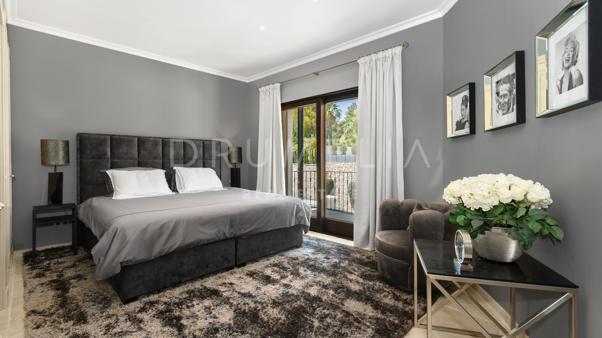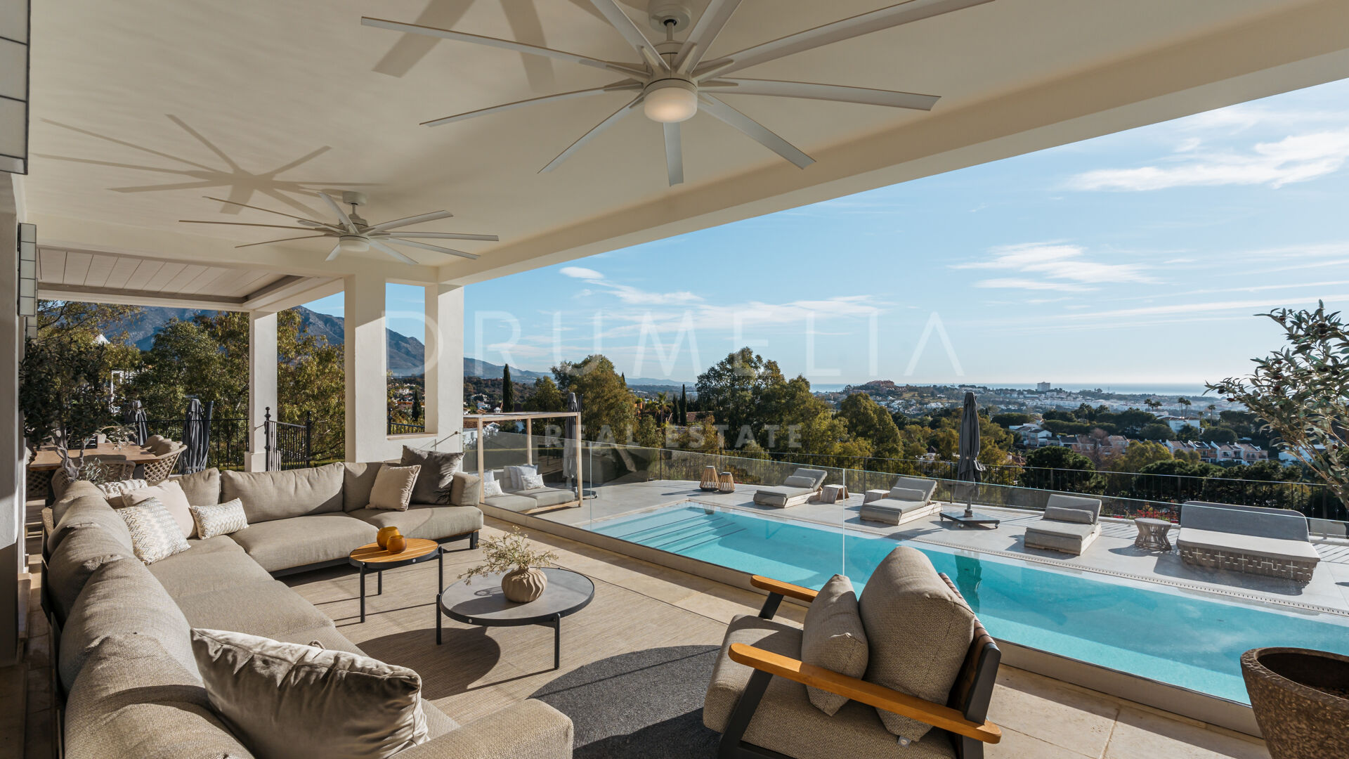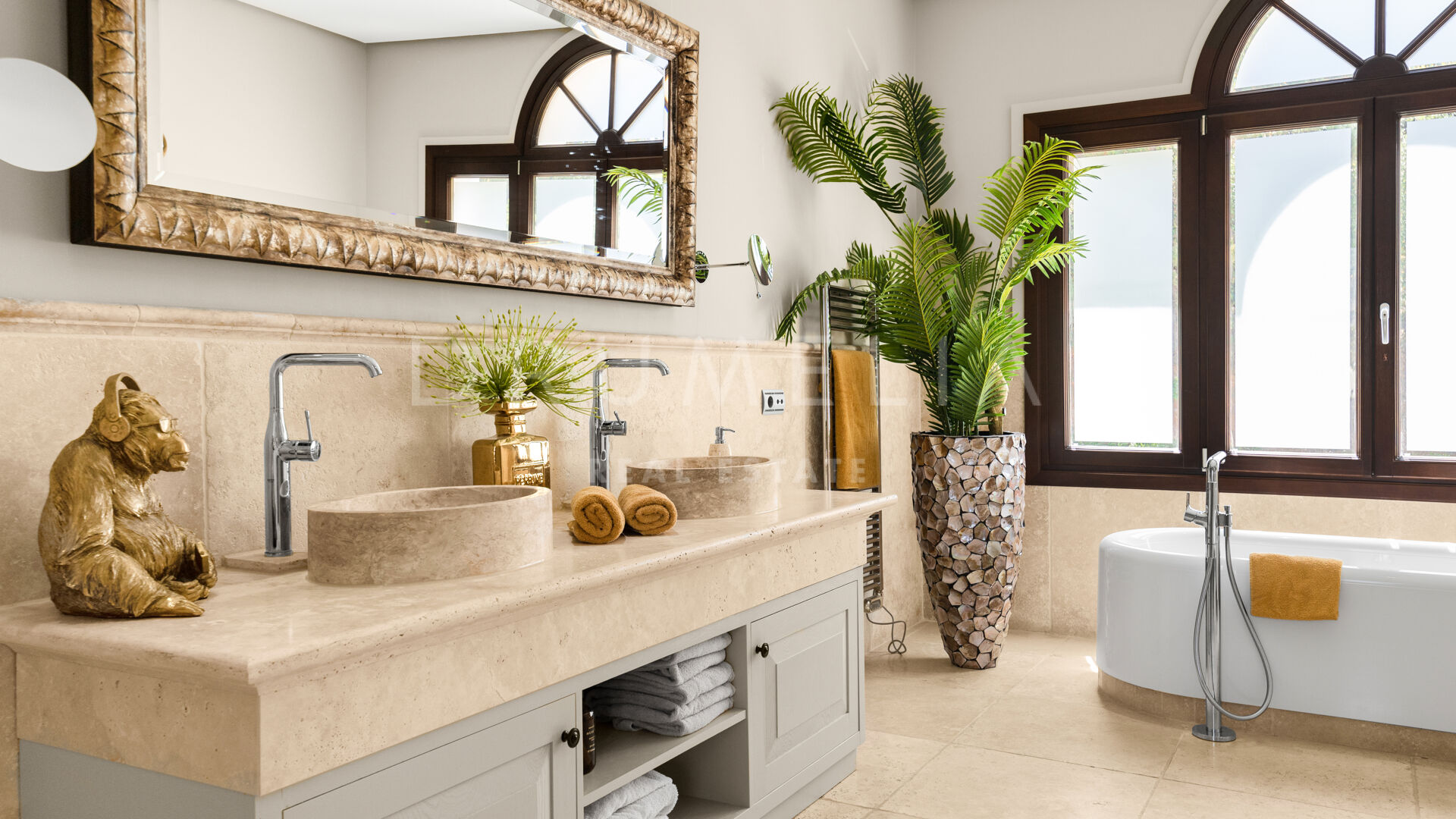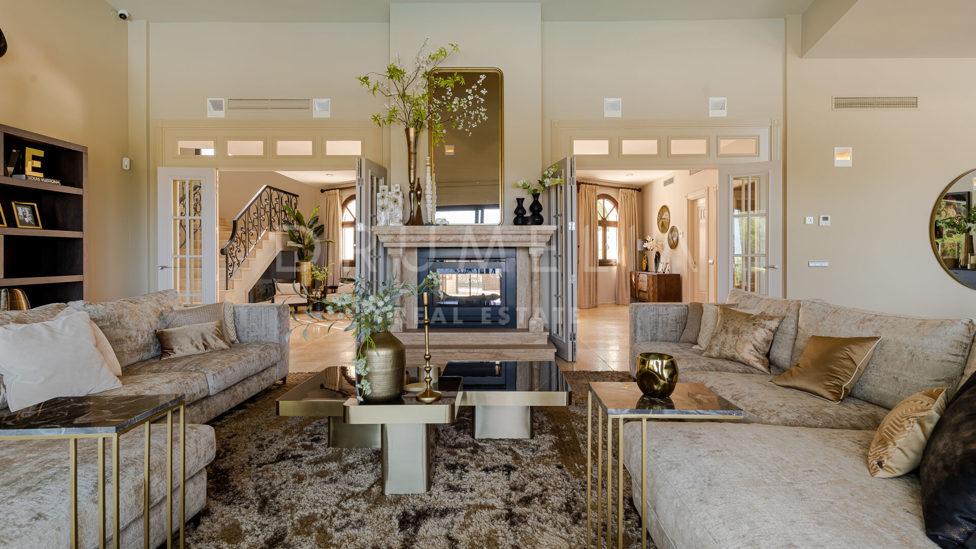 Den renoverade och omsorgsfullt designade bostaden på 1 014 m² med 211 m² terrasser ligger på en tomt på 10 100 m², omgiven av naturen och de exklusiva fastigheterna i La Quinta. Detta är ett verkligt arkitektoniskt mästerverk i modern klassisk stil… aka tidlöst! Det sätter en ny standard för raffinerat boende och kombinerar utan ansträngning modernitet och tradition. När du kliver in i huset blir du fängslad av den storslagenhet och elegans som breder ut sig framför dig. Uppmärksamheten på detaljer är uppenbar i varje hörn, från de noggrant utformade ytorna till de tankeväckande kuraterade designelementen. De stora fönstren och de vidsträckta terrasserna på den söderläge fastigheten erbjuder vidsträckt utsikt över det blå Medelhavet och de majestätiska bergen som ramar in landskapet. 2 rymliga lounger med plyschmöbler och magnifika konstverk inbjuder din familj och gäster att koppla av i oöverträffad komfort och stil. Det utsökta huset har 7 överdådigt inredda sovrumssviter, alla med eget badrum, inbyggda garderober eller omklädningsrum. 8 lyxiga badrum ger största möjliga bekvämlighet och funktionalitet för de kräsna invånarna i denna villa. Ett fantastiskt modernt kök är utrustat med hushållsapparater av högsta kvalitet, en ö och en frukostplats, och ansluten till en grillterrass. Ett förråd är bekvämt beläget för att tillgodose dina organisatoriska behov.