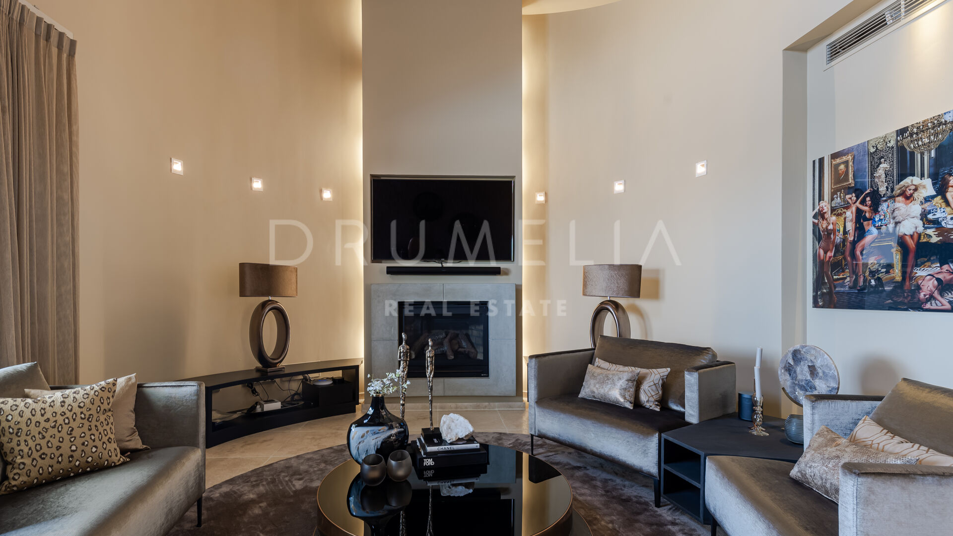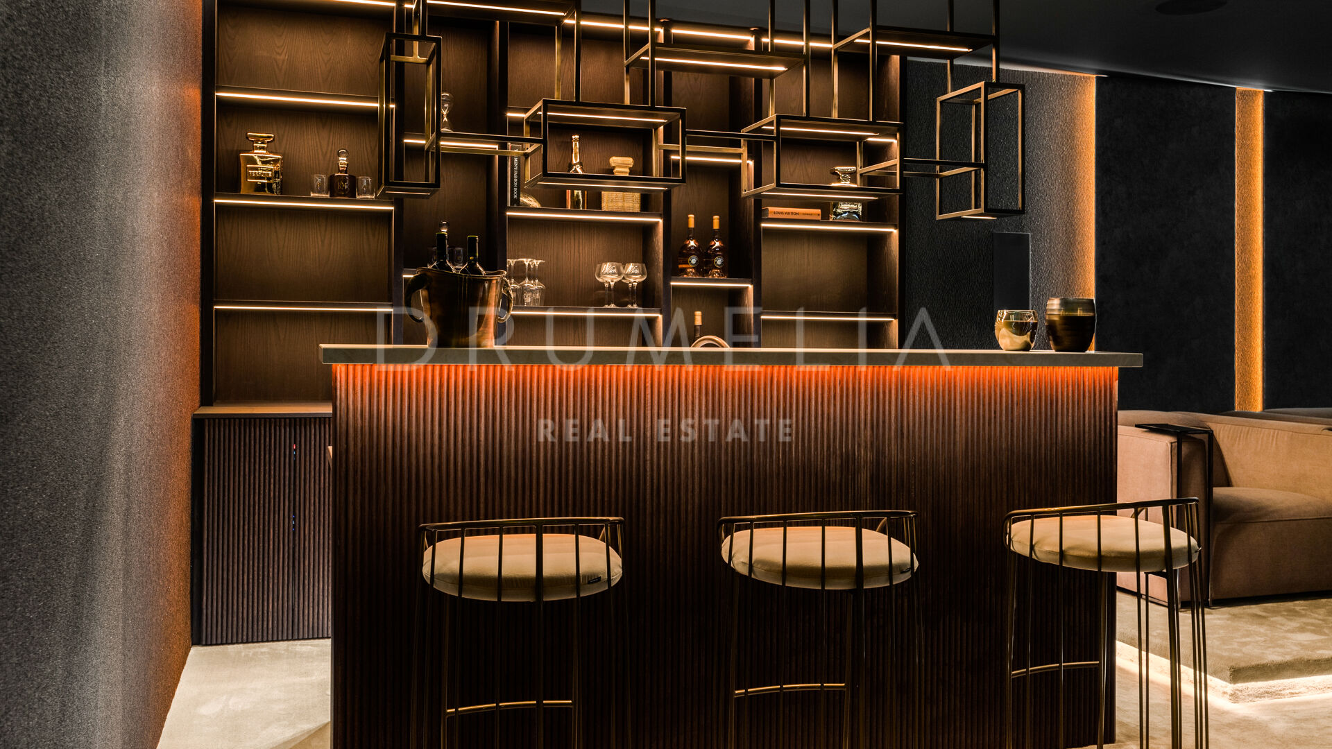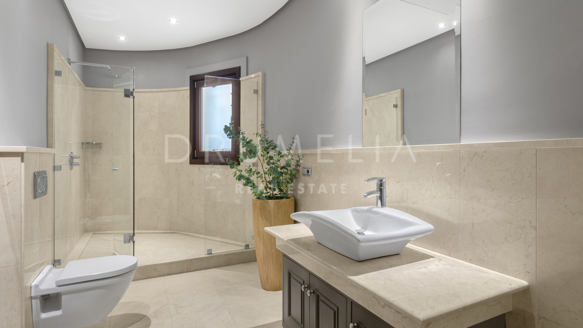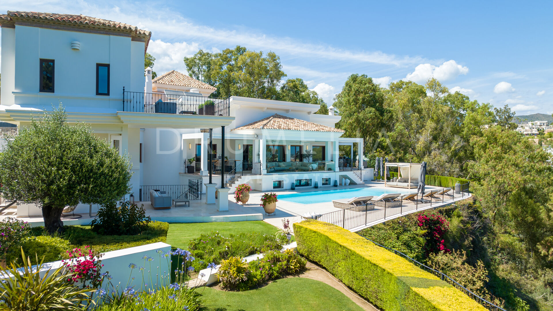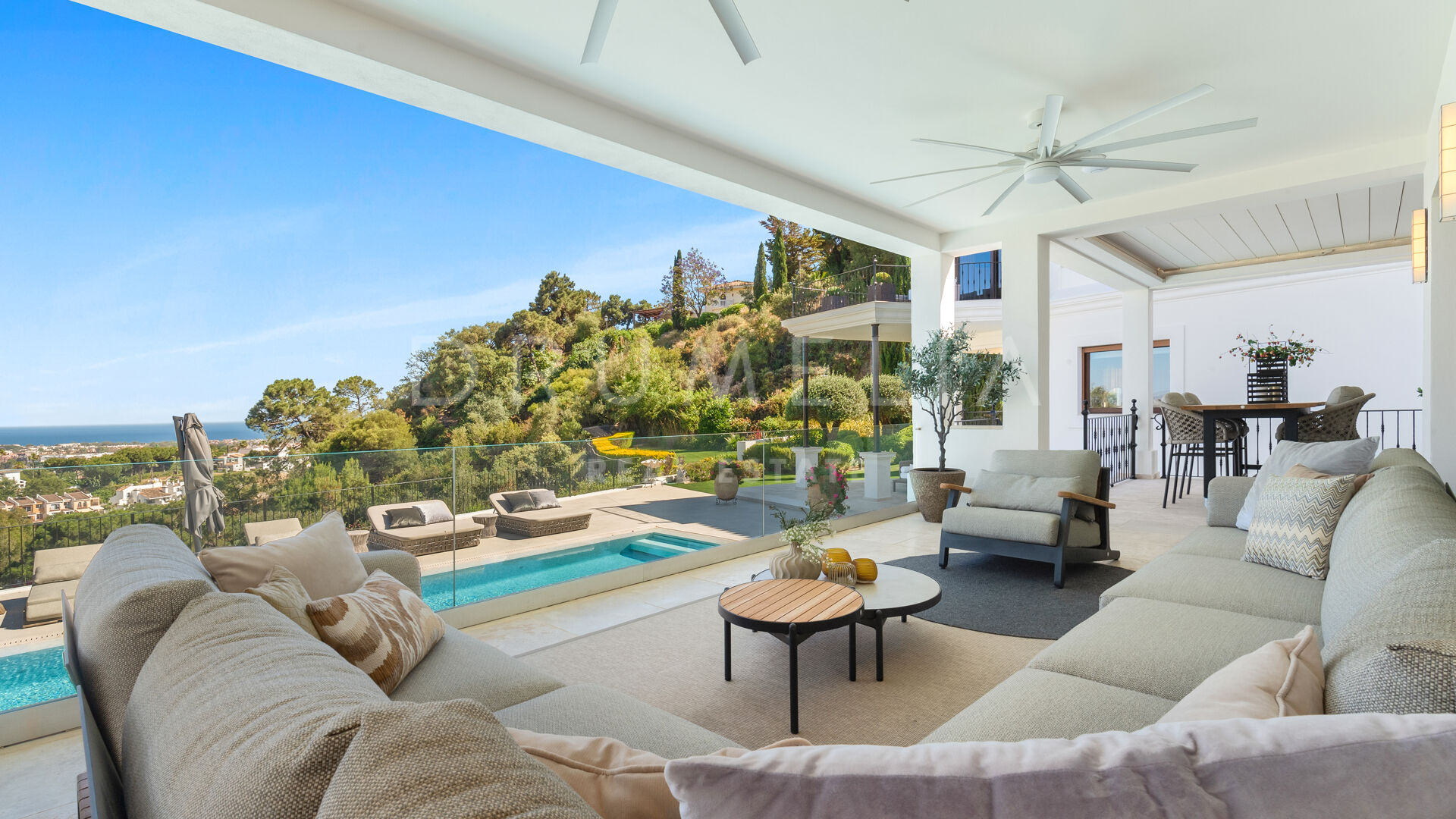 Den renoverade och omsorgsfullt designade bostaden på 1 014 m² med 211 m² terrasser ligger på en tomt på 10 100 m², omgiven av naturen och de exklusiva fastigheterna i La Quinta. Detta är ett verkligt arkitektoniskt mästerverk i modern klassisk stil… aka tidlöst! Det sätter en ny standard för raffinerat boende och kombinerar utan ansträngning modernitet och tradition. När du kliver in i huset blir du fängslad av den storslagenhet och elegans som breder ut sig framför dig. Uppmärksamheten på detaljer är uppenbar i varje hörn, från de noggrant utformade ytorna till de tankeväckande kuraterade designelementen. De stora fönstren och de vidsträckta terrasserna på den söderläge fastigheten erbjuder vidsträckt utsikt över det blå Medelhavet och de majestätiska bergen som ramar in landskapet. 2 rymliga lounger med plyschmöbler och magnifika konstverk inbjuder din familj och gäster att koppla av i oöverträffad komfort och stil. Det utsökta huset har 7 överdådigt inredda sovrumssviter, alla med eget badrum, inbyggda garderober eller omklädningsrum. 8 lyxiga badrum ger största möjliga bekvämlighet och funktionalitet för de kräsna invånarna i denna villa. Ett fantastiskt modernt kök är utrustat med hushållsapparater av högsta kvalitet, en ö och en frukostplats, och ansluten till en grillterrass. Ett förråd är bekvämt beläget för att tillgodose dina organisatoriska behov.