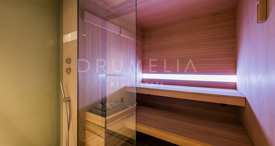 Villan har toppmoderna bekvämligheter som gör den ännu mer tilltalande, t.ex. luftkonditionering, gym och en föryngrande bastu. Fastigheten ligger i ett säkert gated community med 24-timmarsövervakning och har också avancerade säkerhetssystem, inklusive videoinspelning och övervakningskameror, vilket garanterar sinnesfrid. Ett privat garage med plats för upp till fyra fordon och en bekväm hiss som förbinder alla nivåer bidrar ytterligare till dess praktiska och komfortabla egenskaper.
