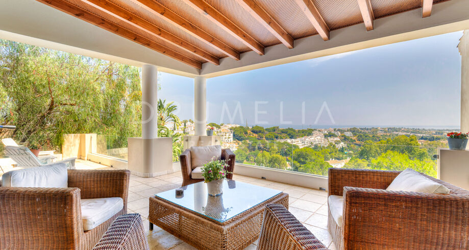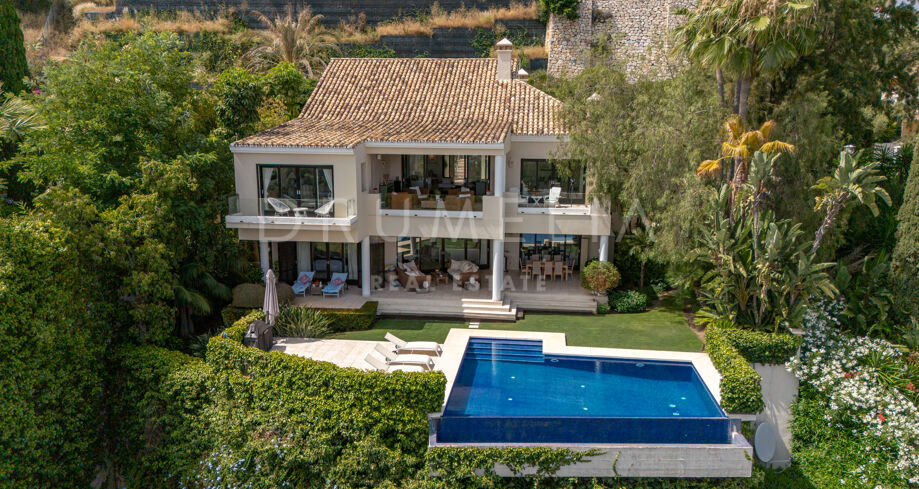 Flera havsvända terrasser, täckt utomhuslounge, automatiserad bevattning och dygnet runt-bevakad säkerhet fulländar ett hem som verkligen har allt. Endast tio minuter från stränderna och butikerna i Puerto Banús, omgiven av ledande internationella skolor, golfbanor och förstklassiga restauranger, är läget lika attraktivt som fastigheten själv.