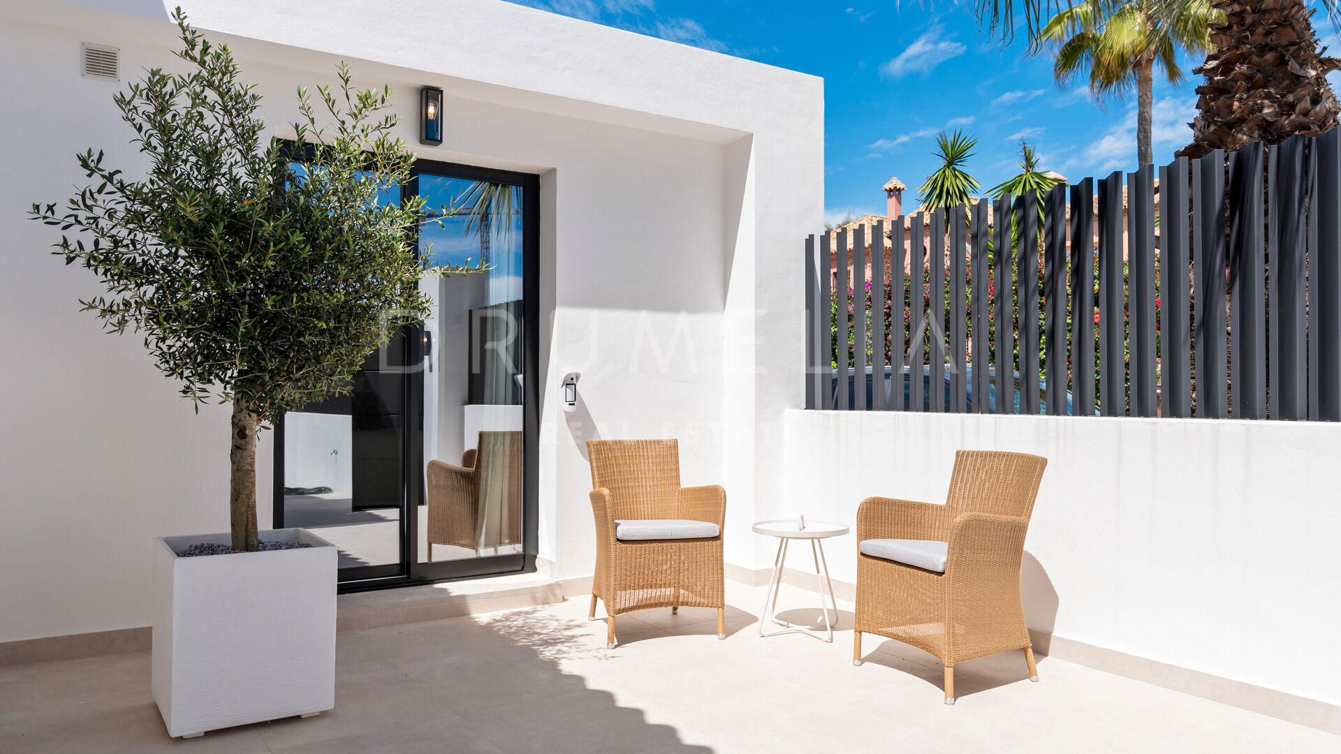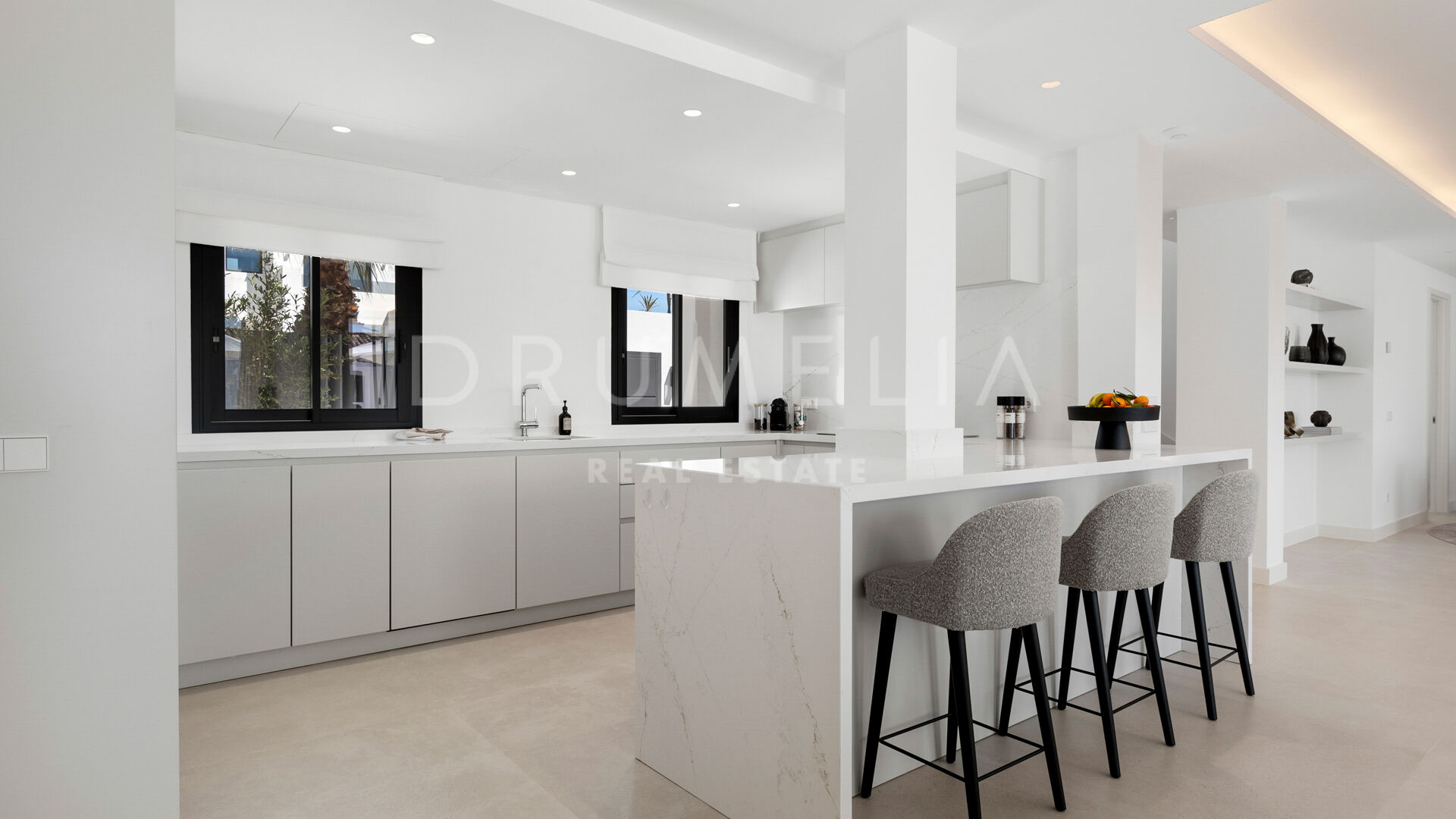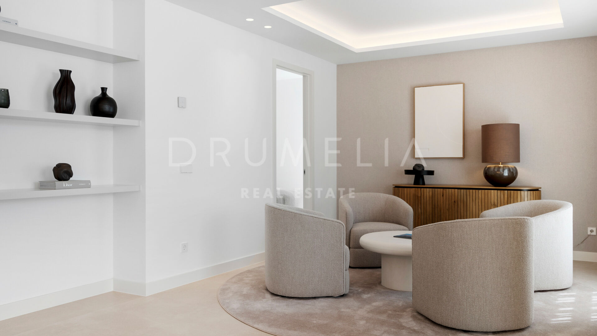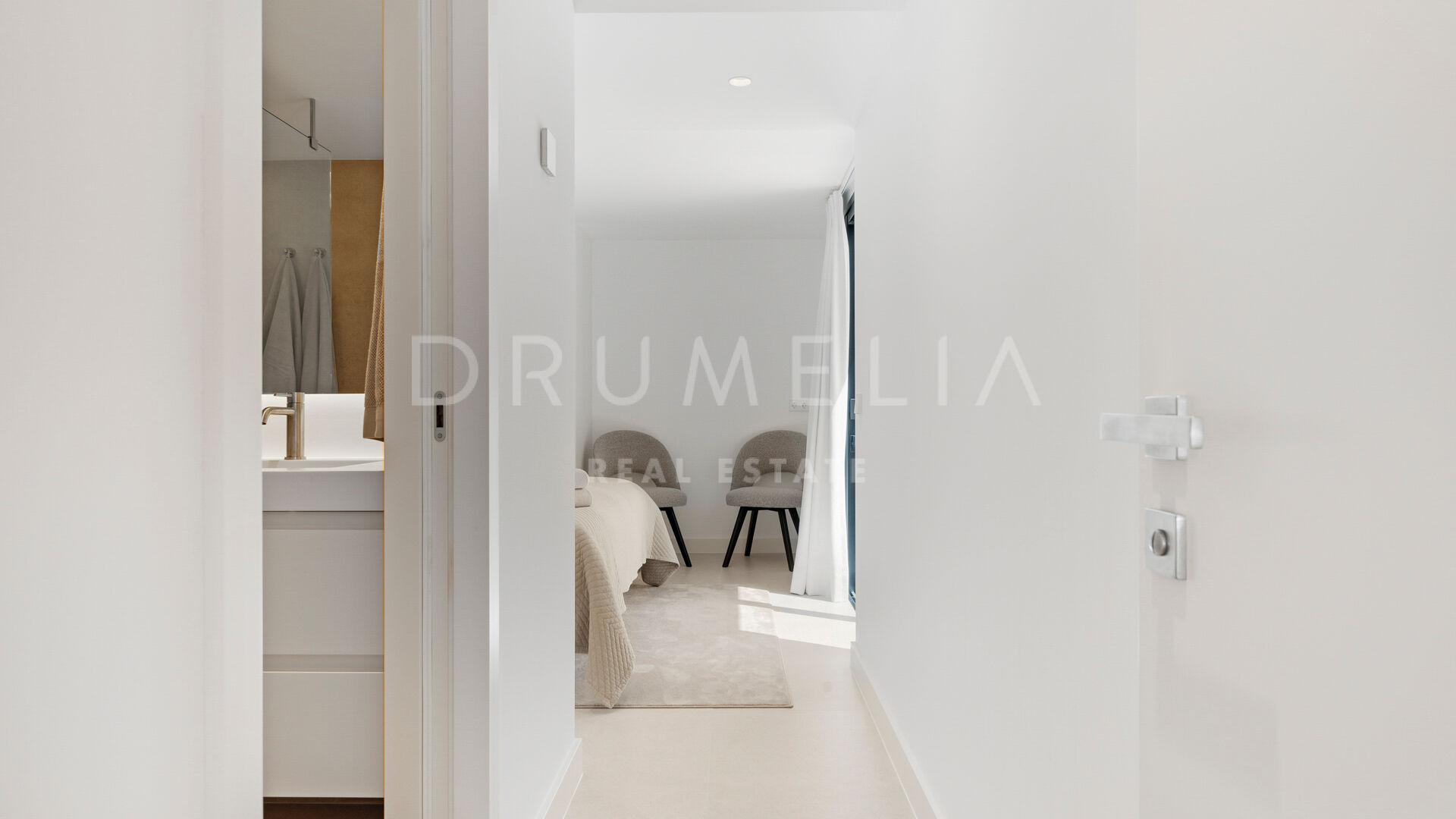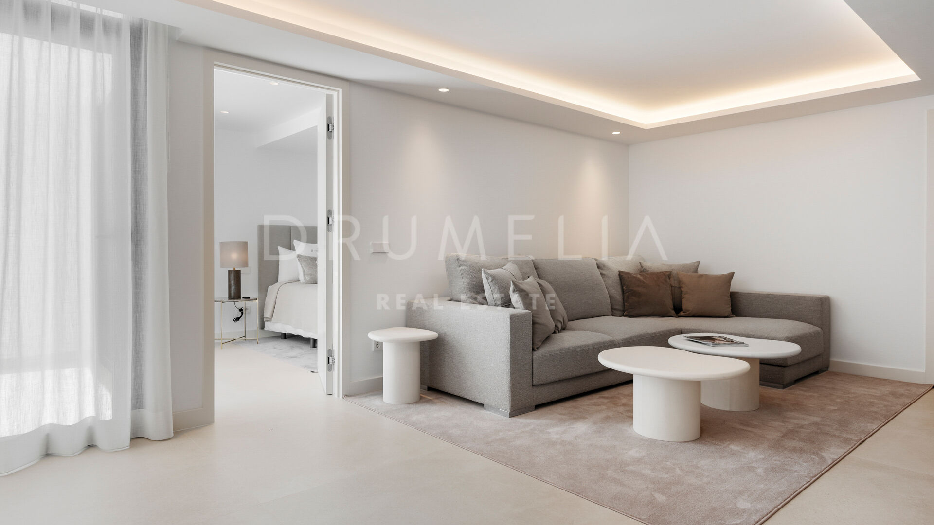 Denna helrenoverade lyxvilla med 5 sovrum ligger i det prestigefyllda Las Chapas Playa, Marbella East, bara några steg från Marbellas finaste sandstränder. Denna exceptionella fastighet kombinerar modern design med kustens lugn och erbjuder en lugn tillflyktsort omgiven av exklusiva bekvämligheter, inklusive berömda strandklubbar som NOSSO och Bono Beach, topprankade restauranger och viktiga bekvämligheter som stormarknader och apotek. Dess utmärkta läge garanterar också enkel tillgång till Marbellas centrum, Puerto Banús och natursköna kustvägar, vilket gör det till det perfekta hemmet för både avkoppling och utforskning.