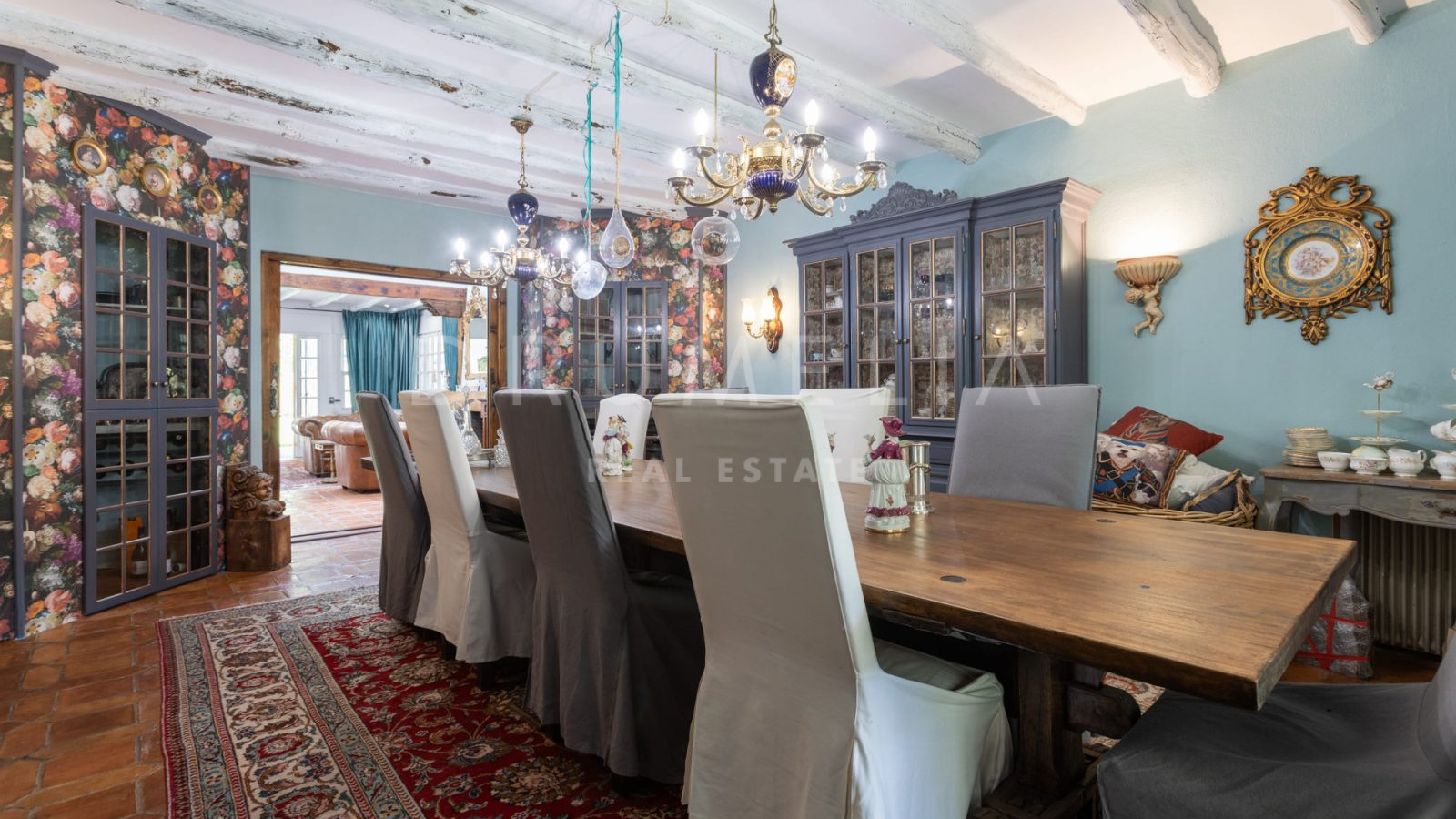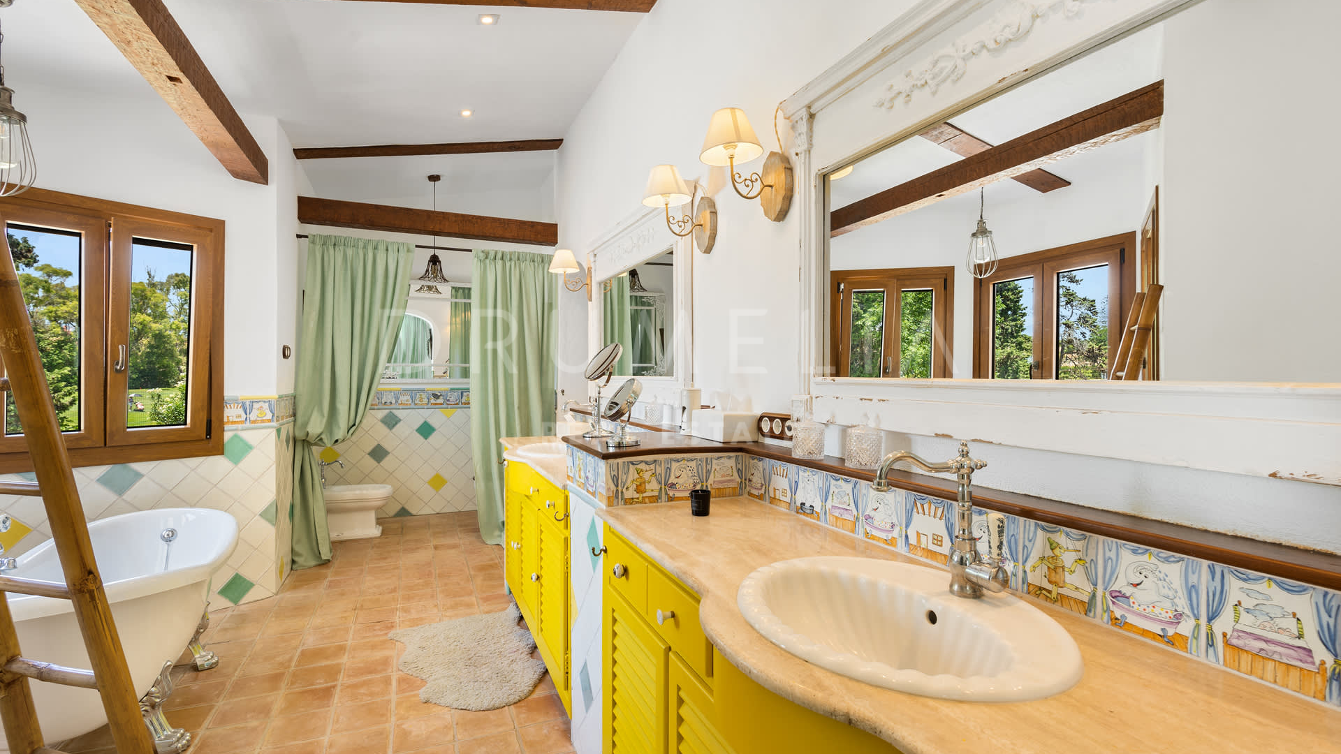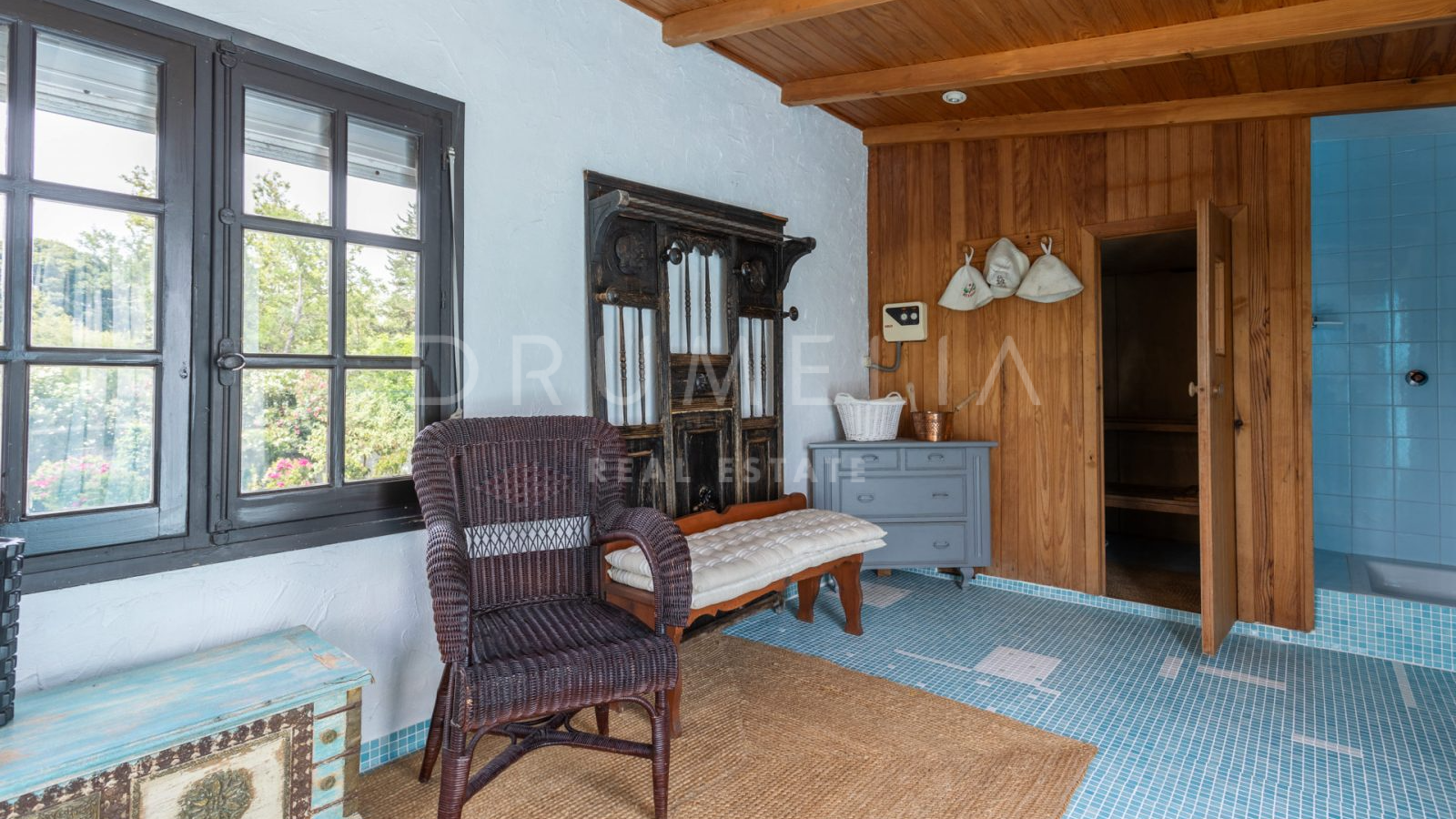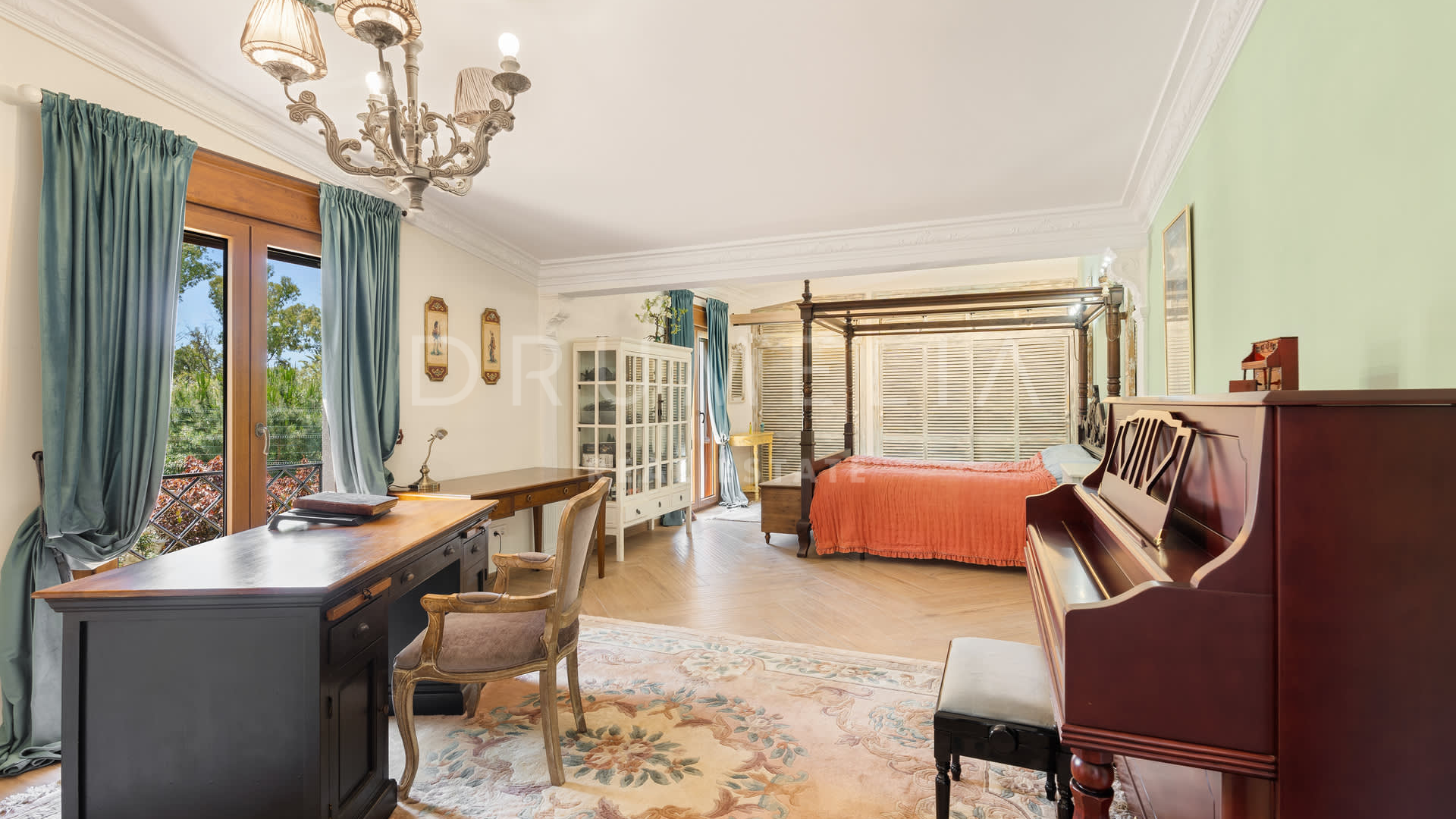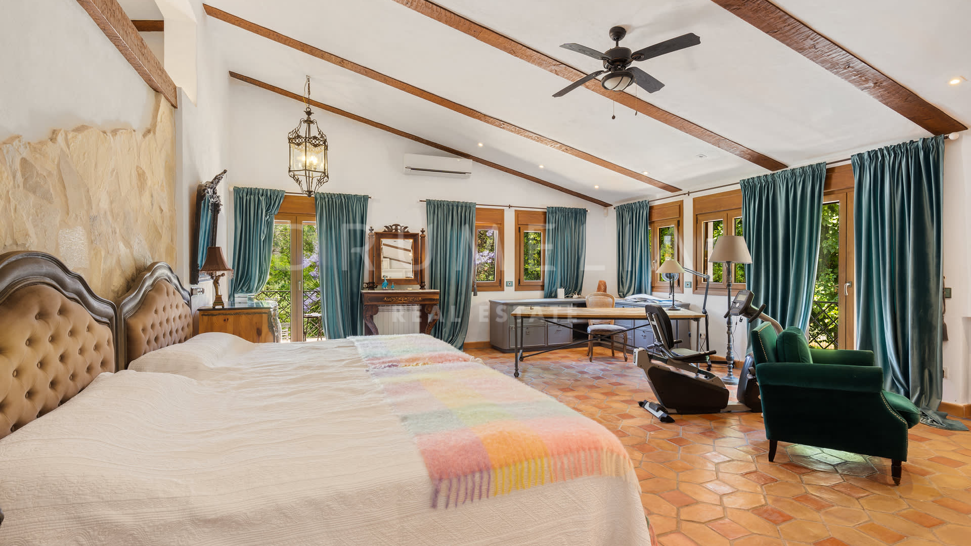 Charmig och elegant villa i Guadalmina Baja, bara 200 meter från det blå havet. Denna exceptionella bostad är perfekt integrerad i omgivningen och gränsar till den gröna ytan av en prestigefylld golfbana och det lugna flödet av Guadalmina River, vilket erbjuder en oas av oöverträffad avskildhet och lugn.
