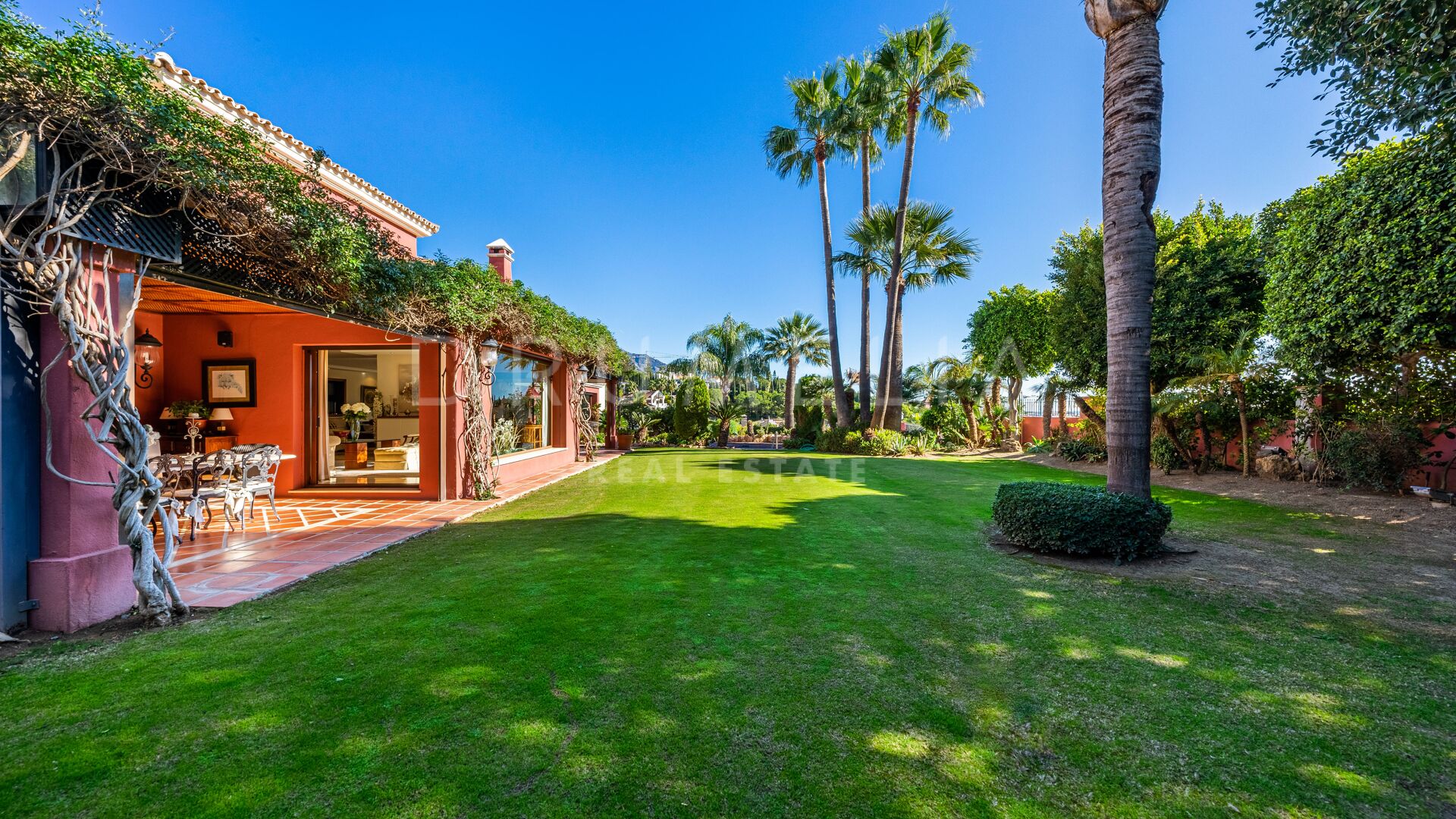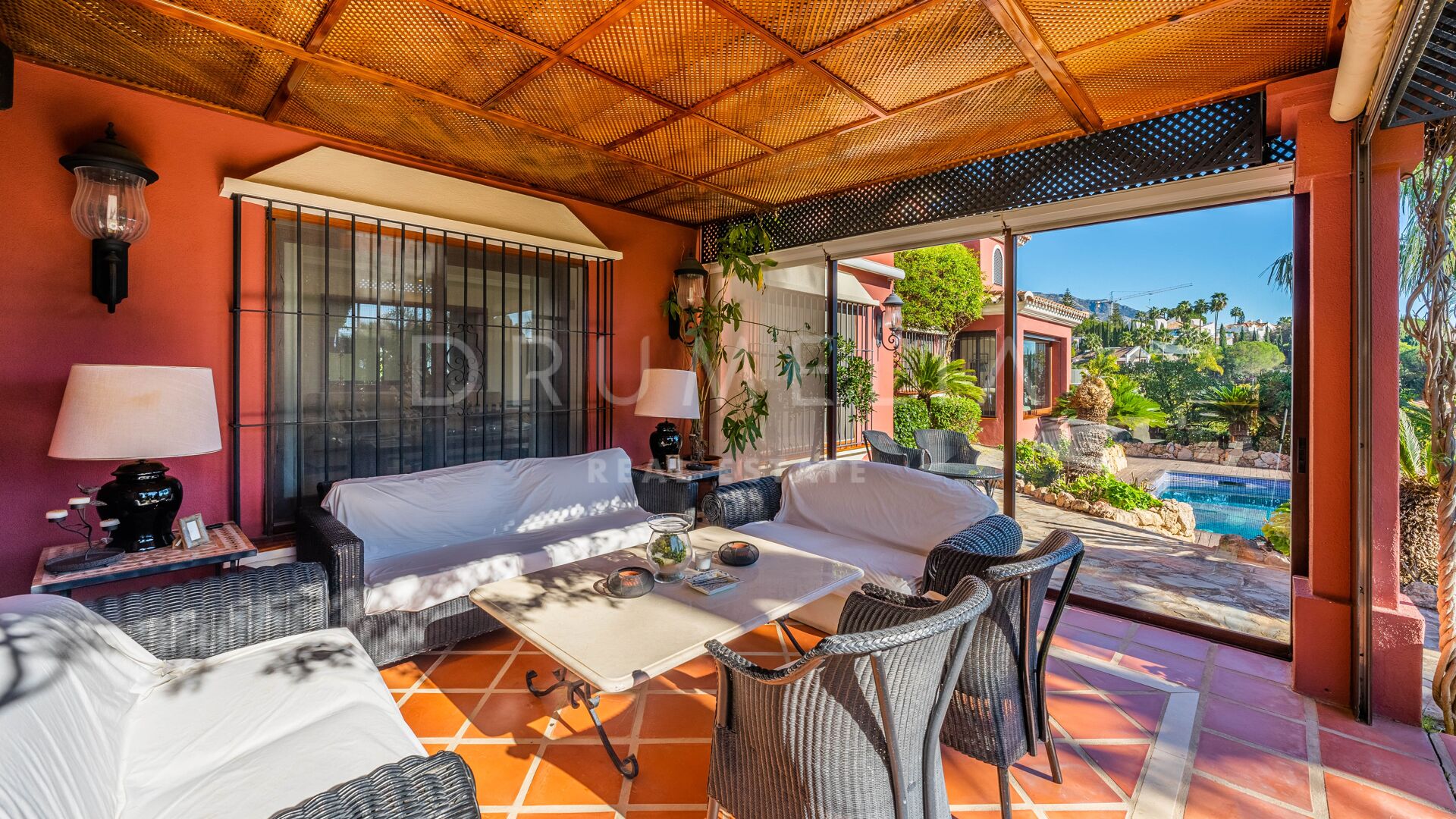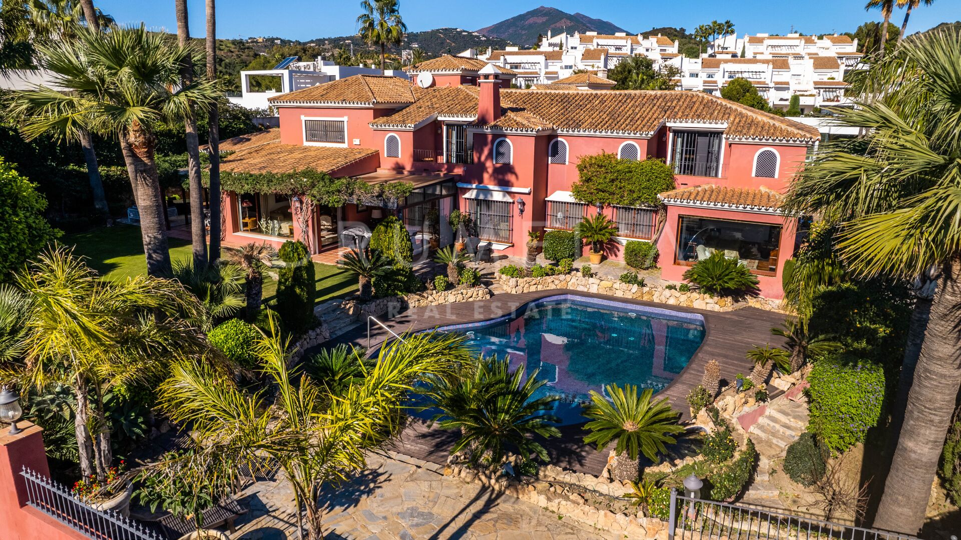 Denna vackra villa till salu ligger i ett av de mest populära områdena på Costa del Sol, Nueva Andalucía, som är den största och väletablerade delen av Marbella med alla bekvämligheter du behöver. Omgiven av liknande lyxfastigheter och prestigefyllda golfbanor som Los Naranjos, Las Brisas och Aloha, renoverades huset i medelhavsstil 2015, med andalusisk stil i exteriören och med en modern touch och högkvalitativa specifikationer i interiören. Du kommer att bli imponerad av dess marmor, irokoträ, Technal-fönster med climalit och andra lyxiga funktioner.