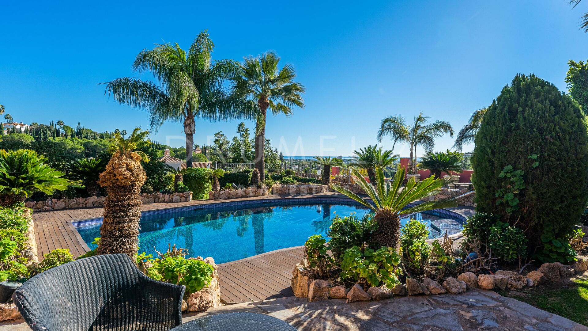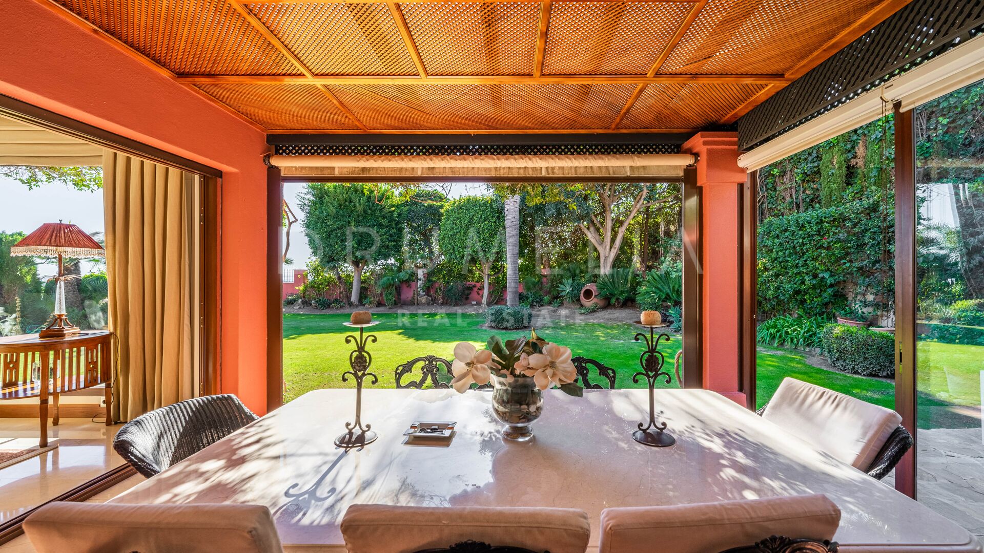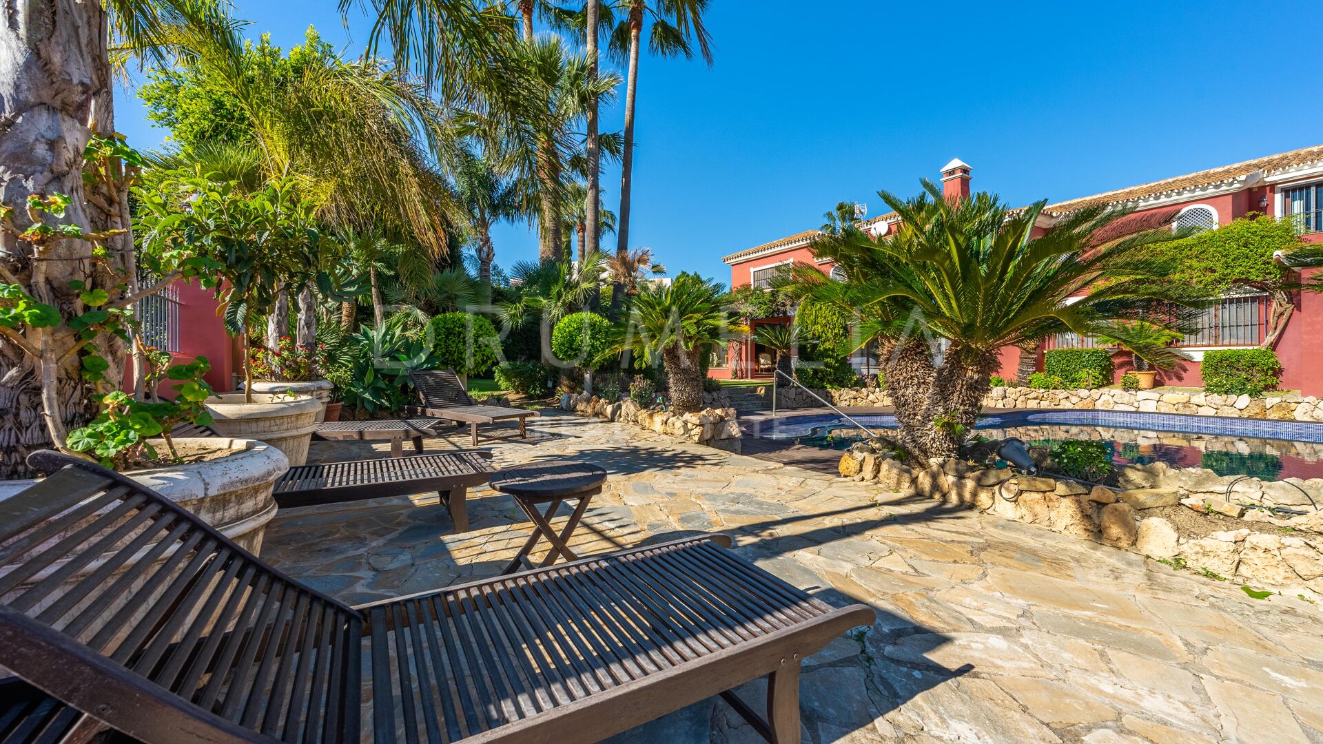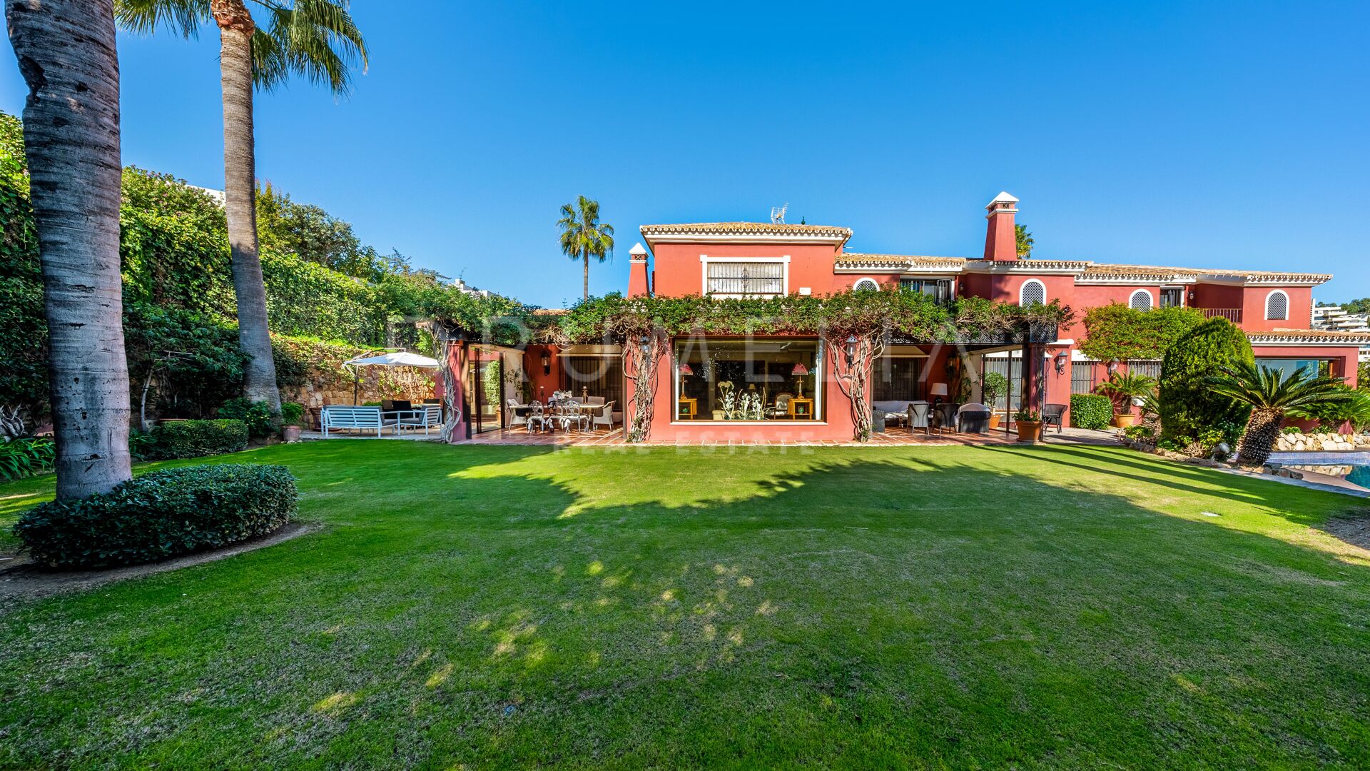 Denna vackra villa till salu ligger i ett av de mest populära områdena på Costa del Sol, Nueva Andalucía, som är den största och väletablerade delen av Marbella med alla bekvämligheter du behöver. Omgiven av liknande lyxfastigheter och prestigefyllda golfbanor som Los Naranjos, Las Brisas och Aloha, renoverades huset i medelhavsstil 2015, med andalusisk stil i exteriören och med en modern touch och högkvalitativa specifikationer i interiören. Du kommer att bli imponerad av dess marmor, irokoträ, Technal-fönster med climalit och andra lyxiga funktioner.