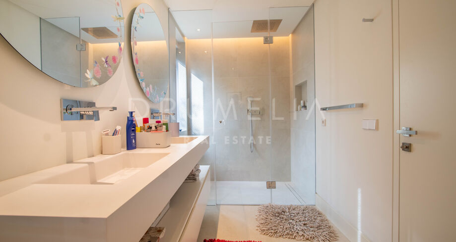Detta hem är skapat för den mest exklusiva moderna livsstilen och kommer till försäljning i ett utmärkt skick och med många lyxiga funktioner. Du kommer att njuta av att bo i en av de mest dynamiska nya hot spots i Marbellaområdet. La Alqueria är en vacker förort som ligger i naturens sköte och följer konturerna av de mjukt stigande kullarna. Du kan njuta av det bästa av Costa del Sol, med chic och glamour i Puerto Banús bara några minuter bort, men när du väl är hemma är du omgiven av lugn, avskildhet och idylliska landskap runt omkring.