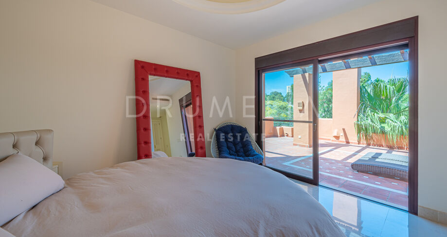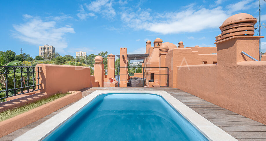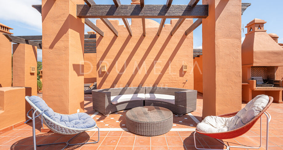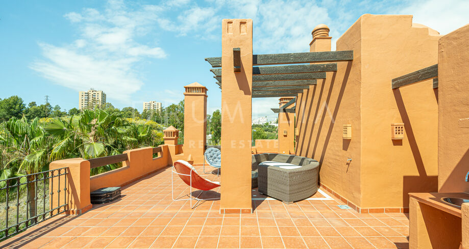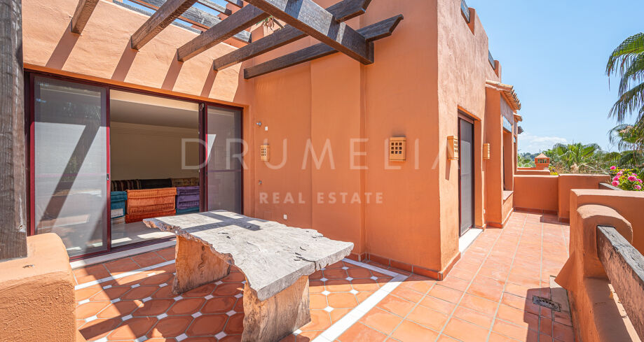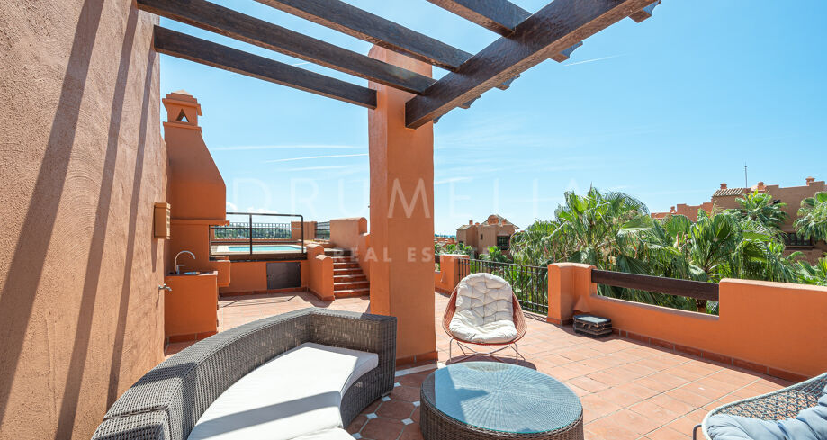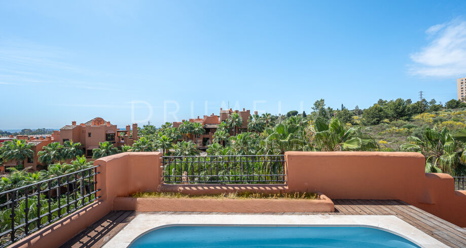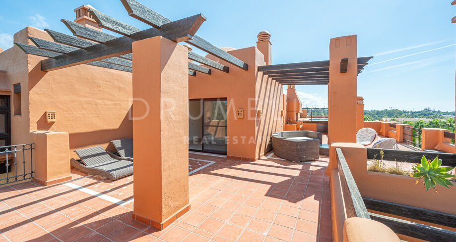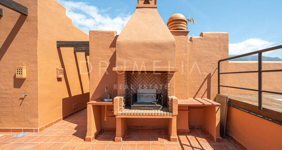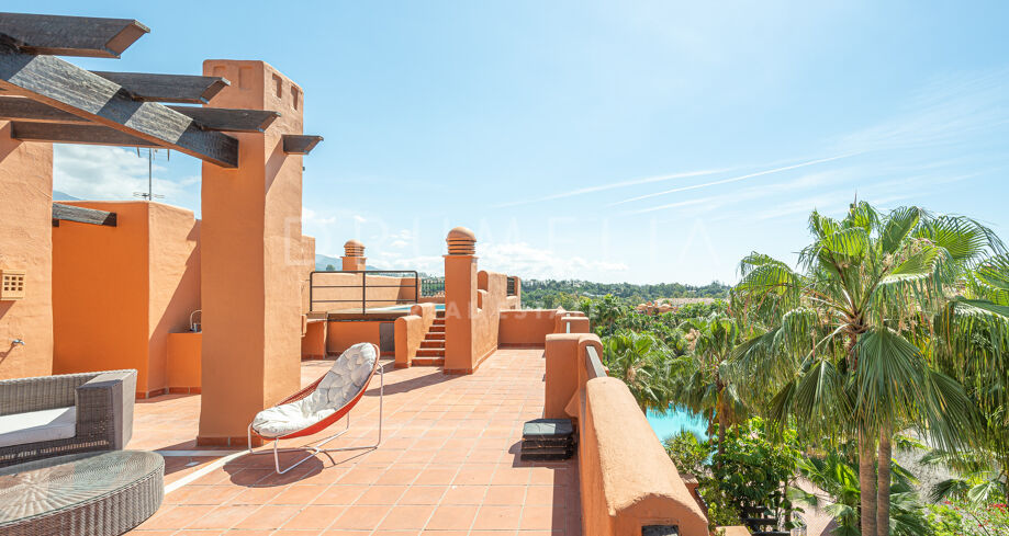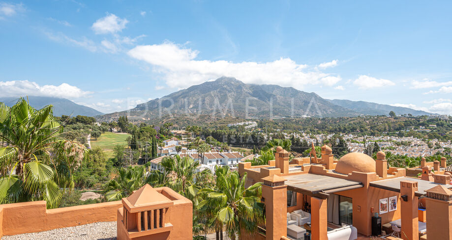 Charmigt duplextak med utsikt över bergen i La Alzambra Hill Club, Nuev Andalucia, Marbella
