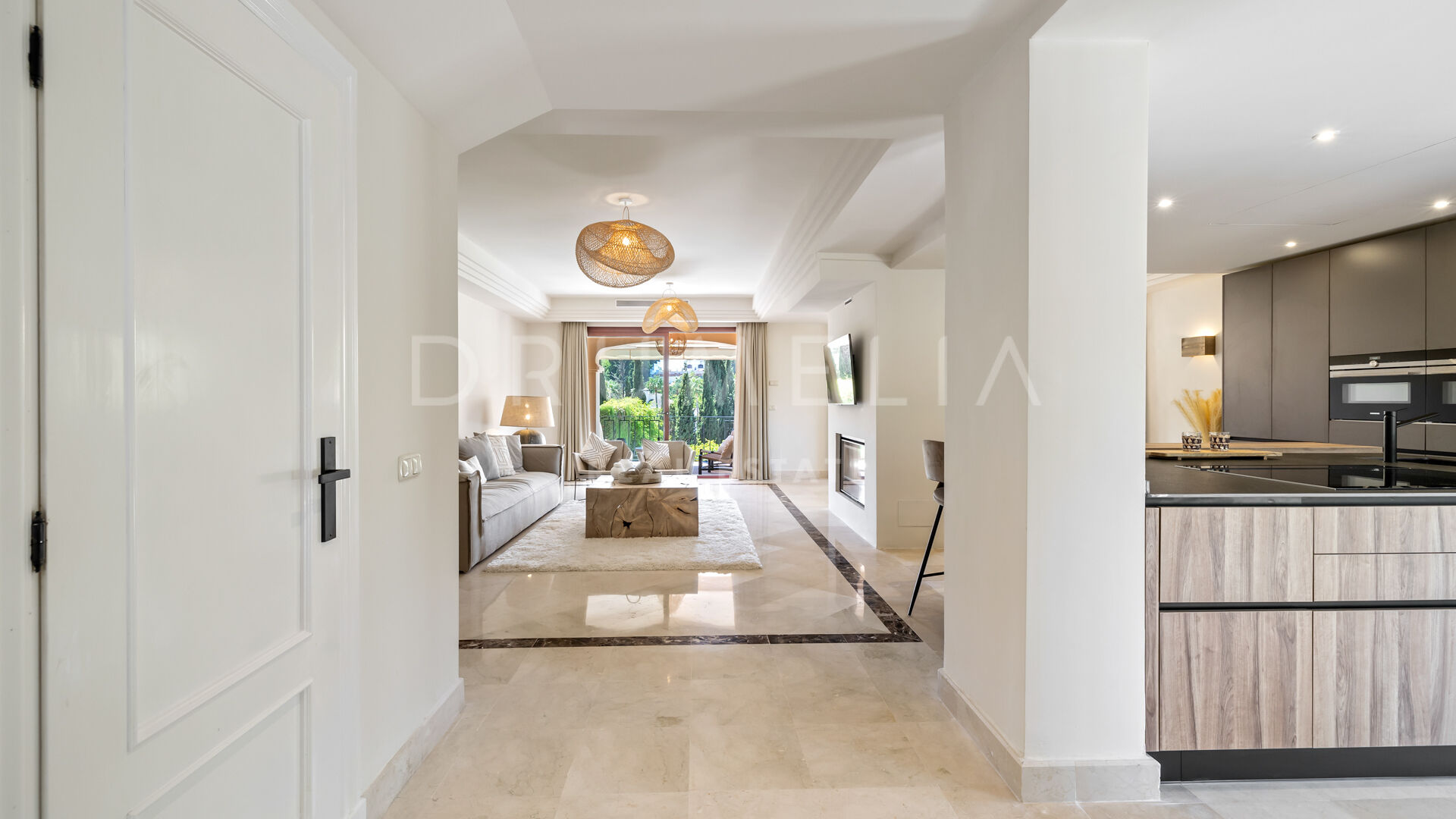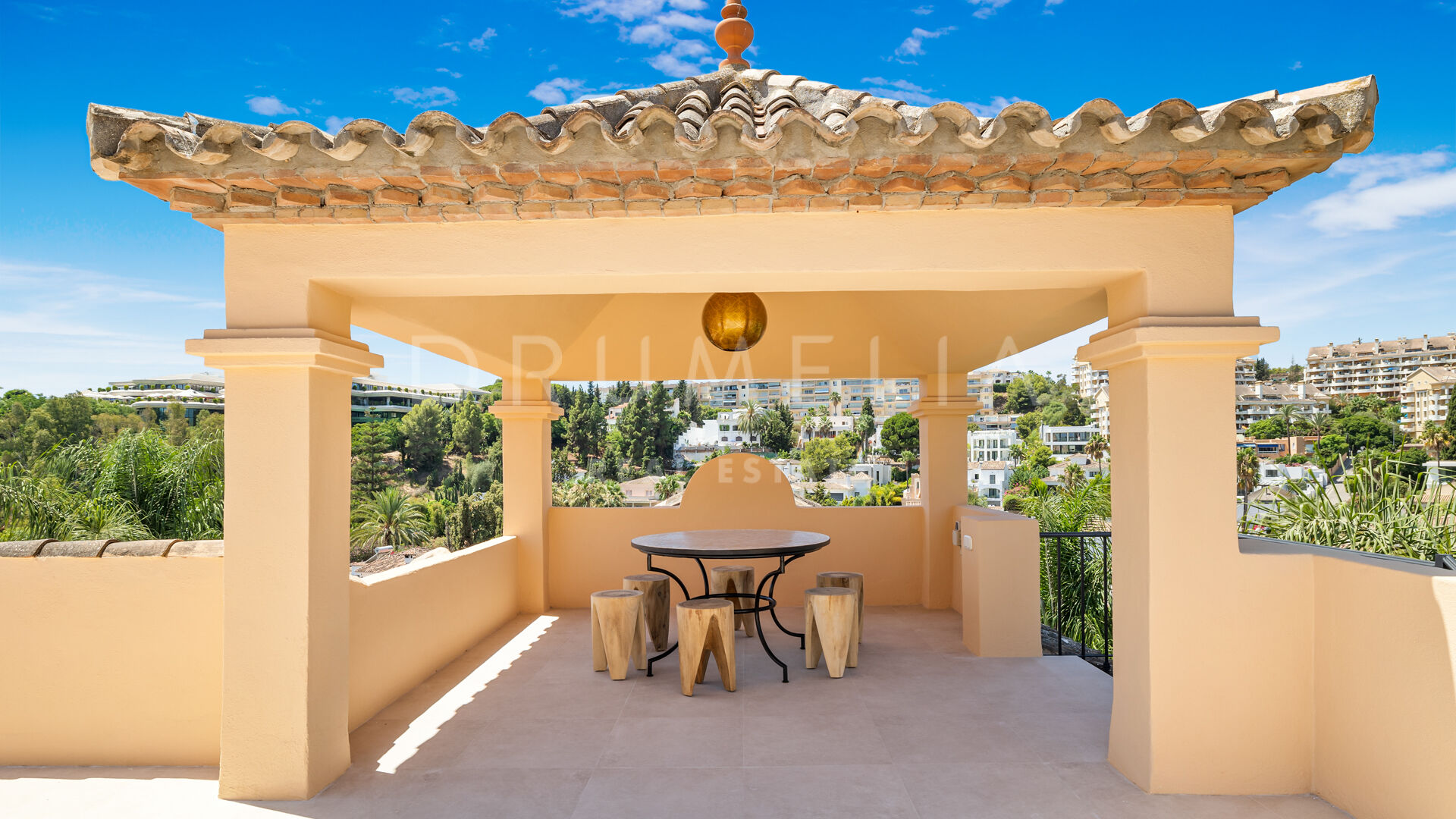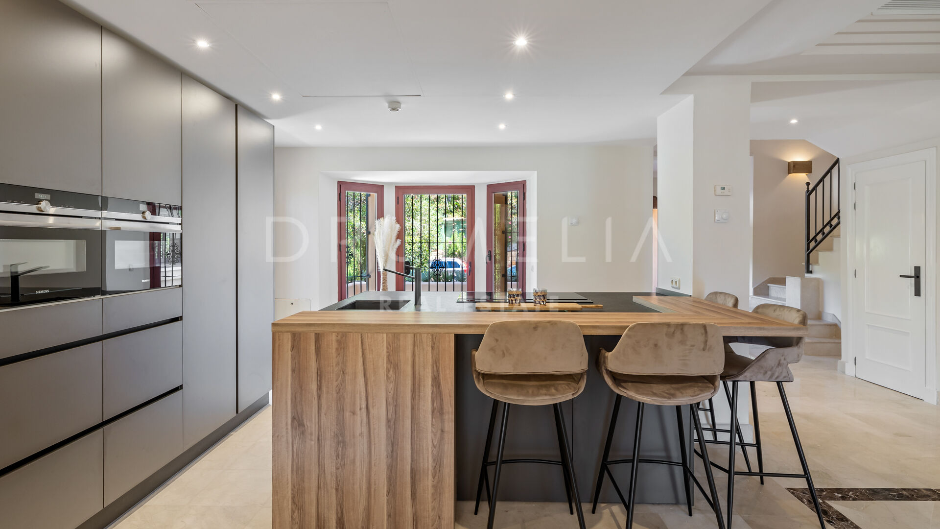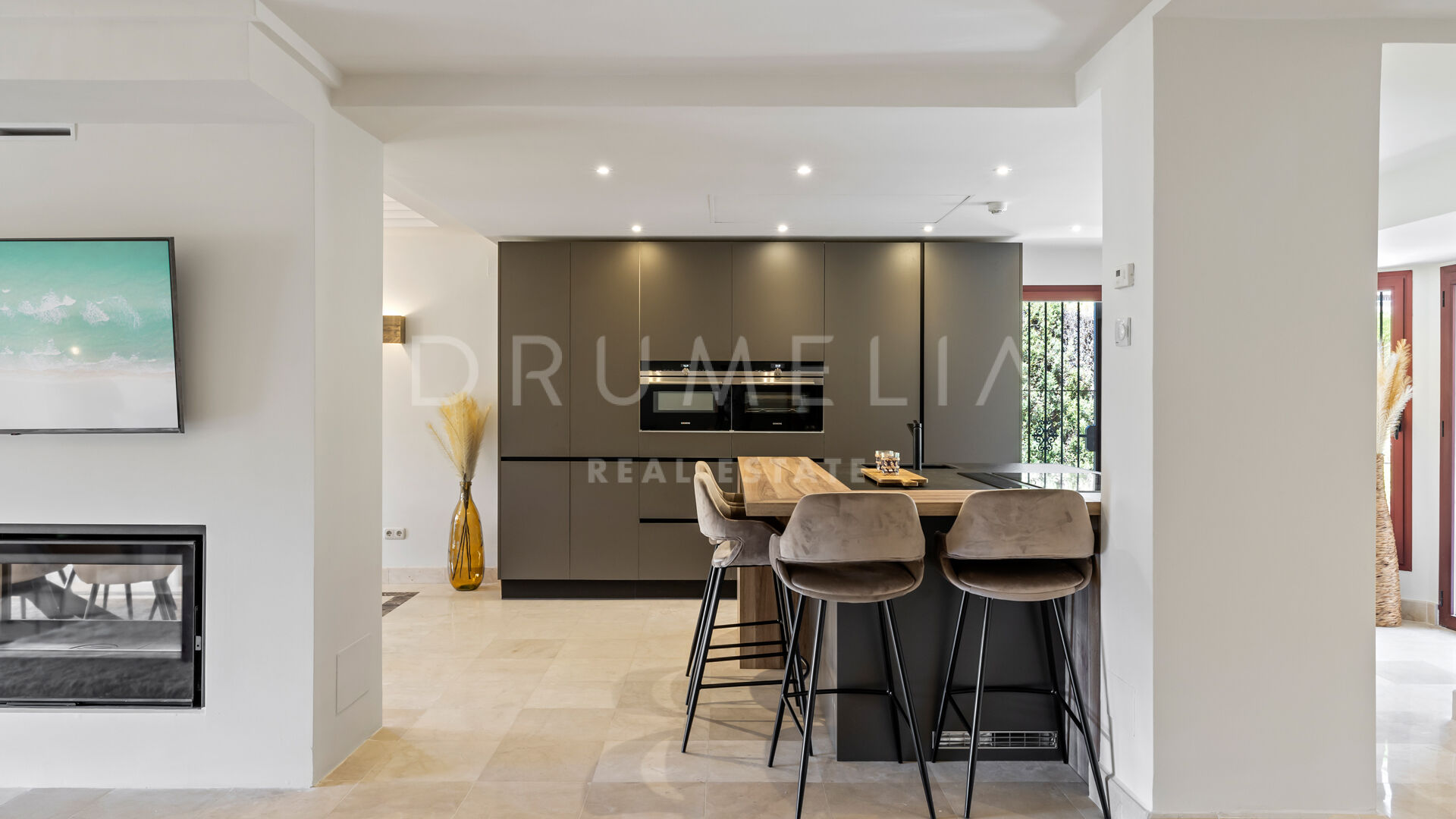 Denna vackert renoverade villa med 5 sovrum erbjuds till försäljning i den välkända 24-timmars bevakade urbanisationen Alzambra, en av de mest exklusiva byggnaderna i Nueva Andalucia, med gångavstånd till Puerto Banus, sandstränder, restauranger och barer, lyxhotell, stormarknader och alla bekvämligheter för det mest bekväma livet. Det är bara en minut från flera internationella skolor och prestigefyllda golfbanor. Att vara så nära alla bekvämligheter och livliga inrättningar i den berömda badorten ger ändå en känsla av lugn och ro.