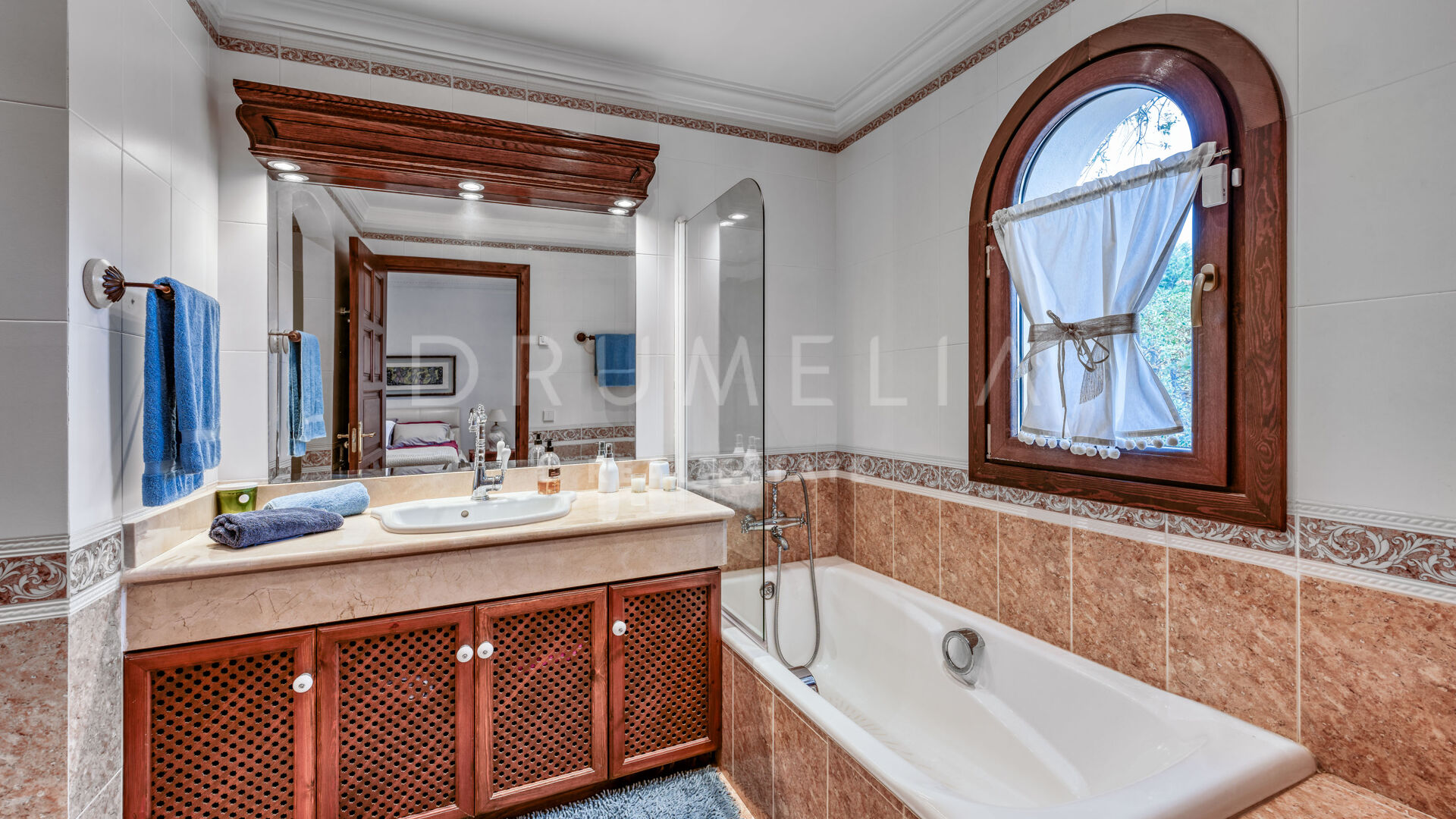 I de omsorgsfullt anlagda trädgårdarna finns fruktträd, fontäner, dammar, skulpturer och ett charmigt hobbyhus med 360-graders utsikt, perfekt för målning eller avkoppling. Denna egendom är en sällsynt blandning av lyx, naturlig skönhet och lugn integritet, perfekt för dem som söker en exklusiv tillflyktsort nära Marbella.