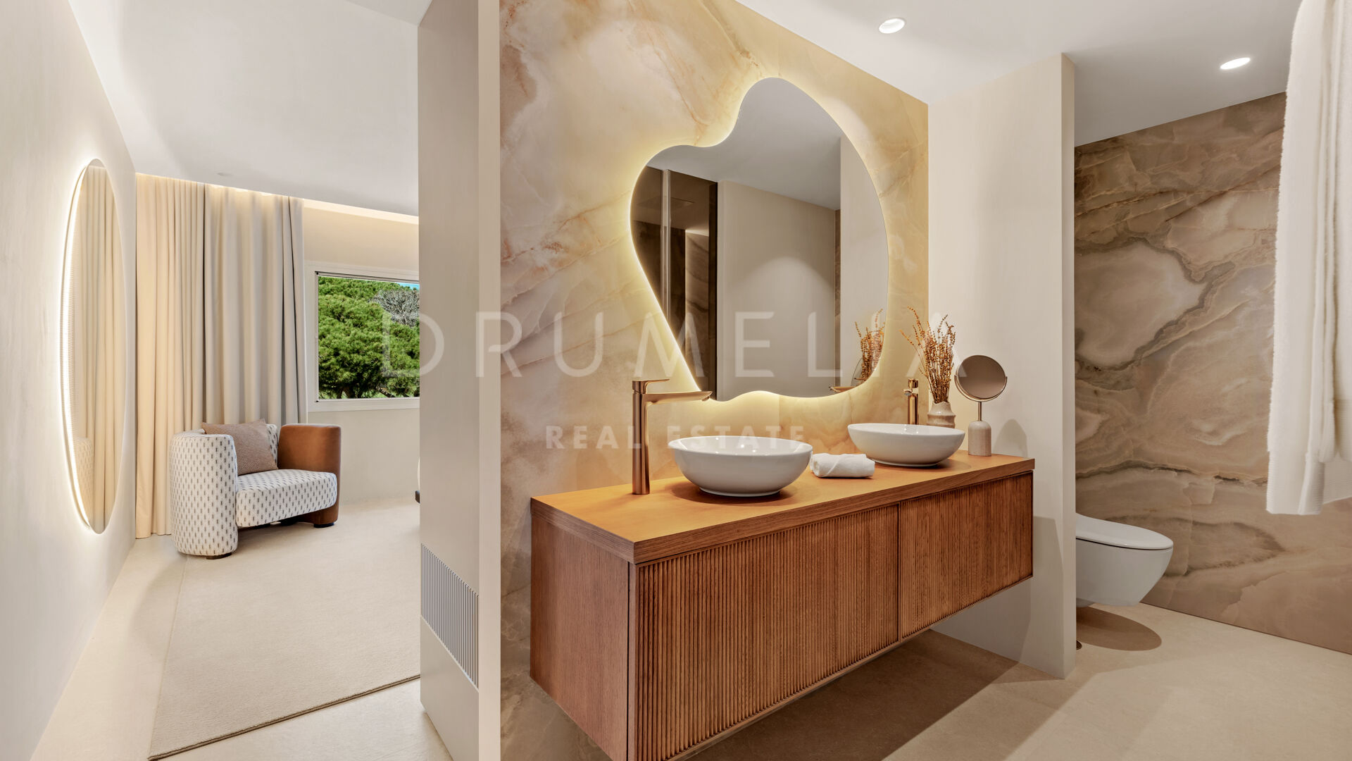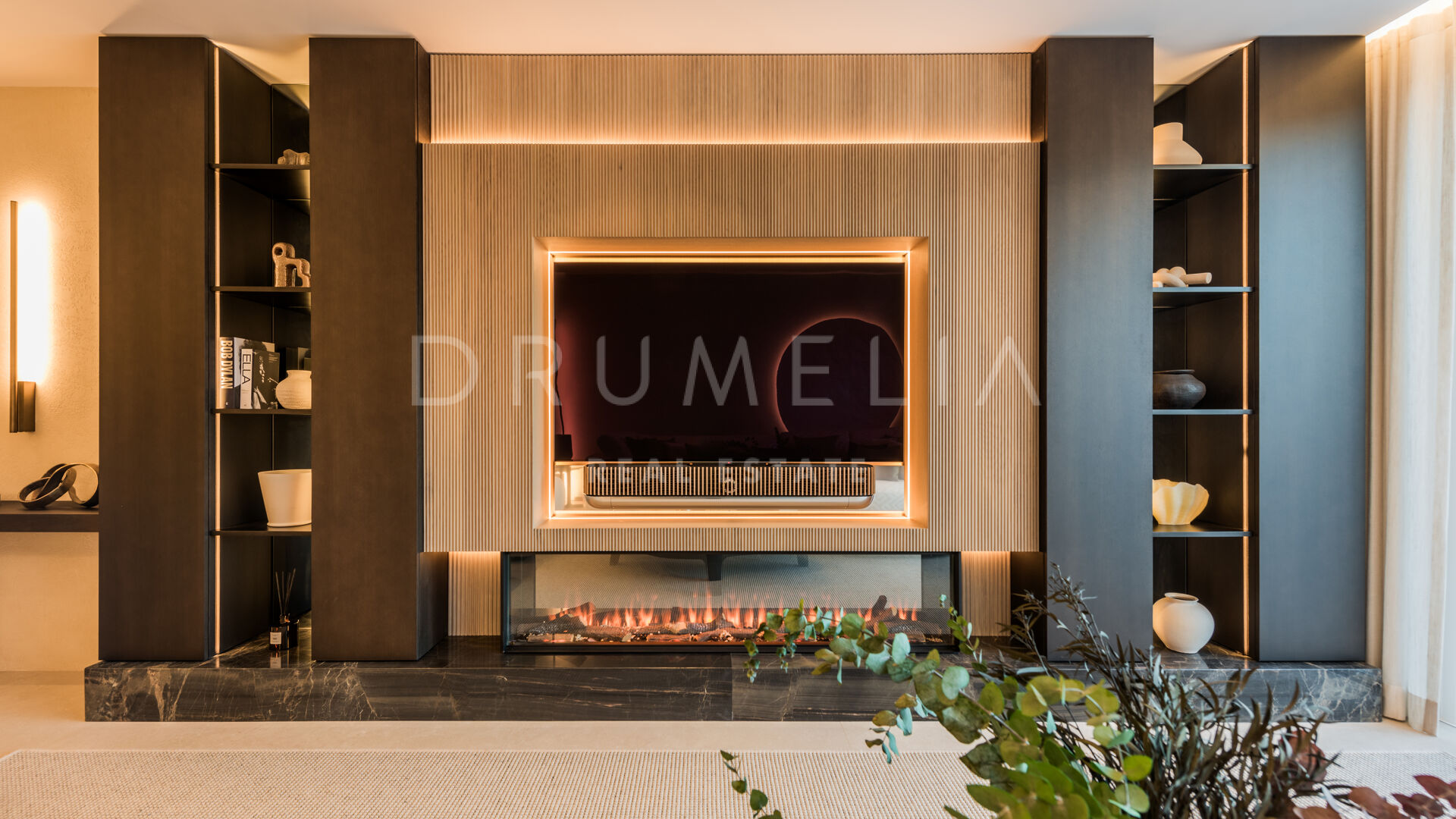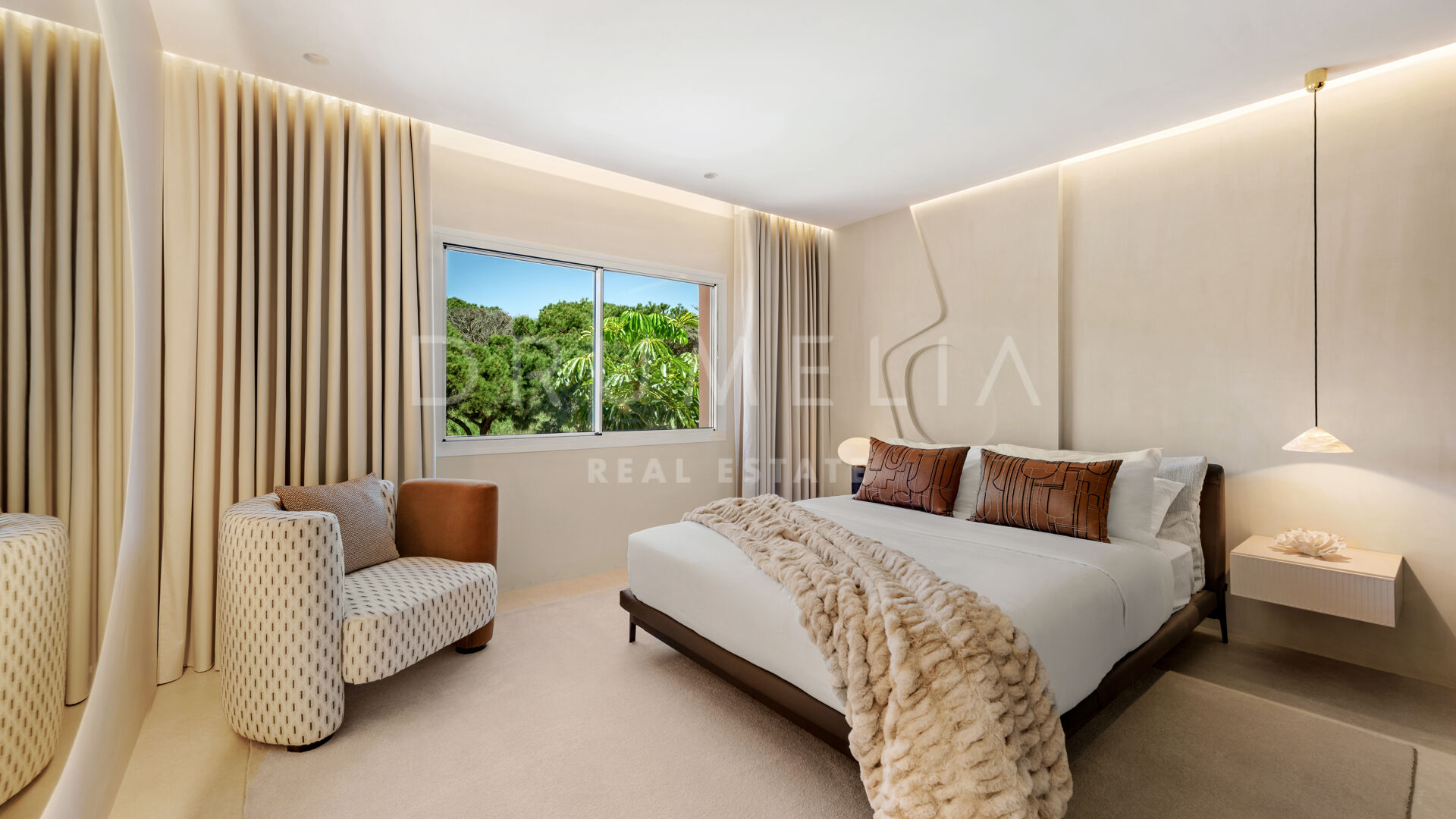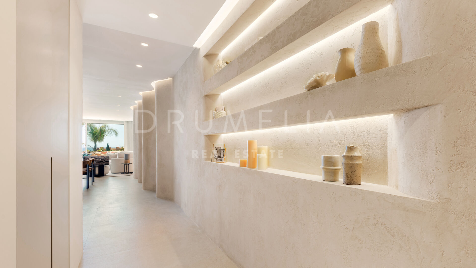 Omgiven av subtropisk grönska och lyxfastigheter i Marbella East, erbjuder den exceptionella lägenheten på 2 plan med 256 m² plus 203 m² terrasser utrymme som normalt bara finns i radhus och hus. Den sydvästliga orienteringen ger den gott om dagsljus och underbar utsikt direkt till havet. Läget, den rymliga öppna planlösningen, storleken och den spektakulära havs- och trädgårdsutsikten gör det till en mycket attraktiv möjlighet på dagens marknad. Fastigheten har 4 sovrum och 5 badrum, ett Siematic designkök med Miele-apparater, rymliga vardagsrum och matplatser som leder till terrasserna, och 2 underjordiska parkeringsplatser och ett förråd. Lägenheten är vackert renoverad till en mycket hög standard och säljs med eleganta golv och tak, en elektrisk öppen spis, skräddarsydda garderober, ett Bang & Olufsen ljudsystem, larm, exklusiva Kettal utemöbler, luftkonditionering och golvvärme. Den högkvalitativa inredningen och de eleganta möblerna har noggrant valts ut av en välkänd inredningsarkitekt.