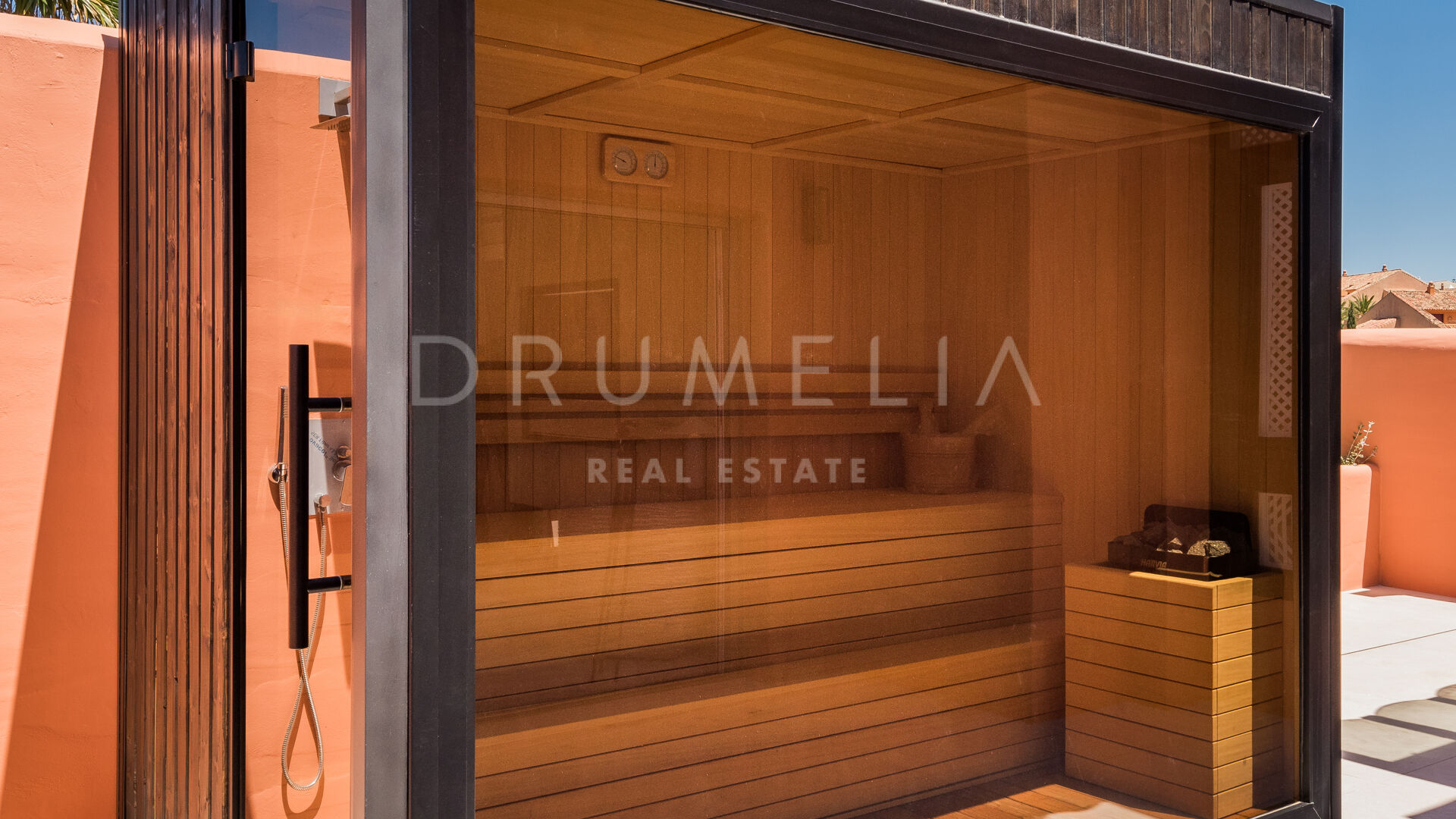 Fantastisk modern lyxig duplex takvåning med havsutsikt i strandpromenaden La Morera, Marbella East