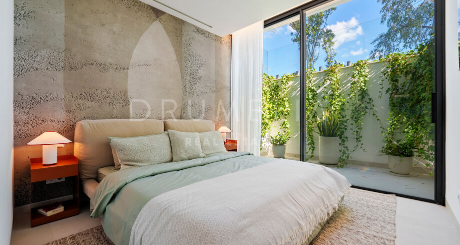 Denna moderna villa ligger i ett exklusivt privat samhälle i La Quinta, Marbella. Designad av Cogitari Homes kombinerar den arkitektonisk elegans, modern komfort och en lugn naturlig miljö. Belägen mellan Medelhavet och berget La Concha erbjuder den panoramautsikt över kusten och dalen.