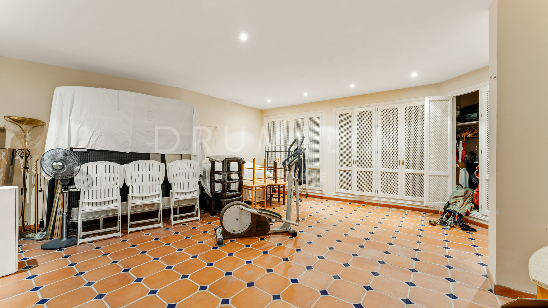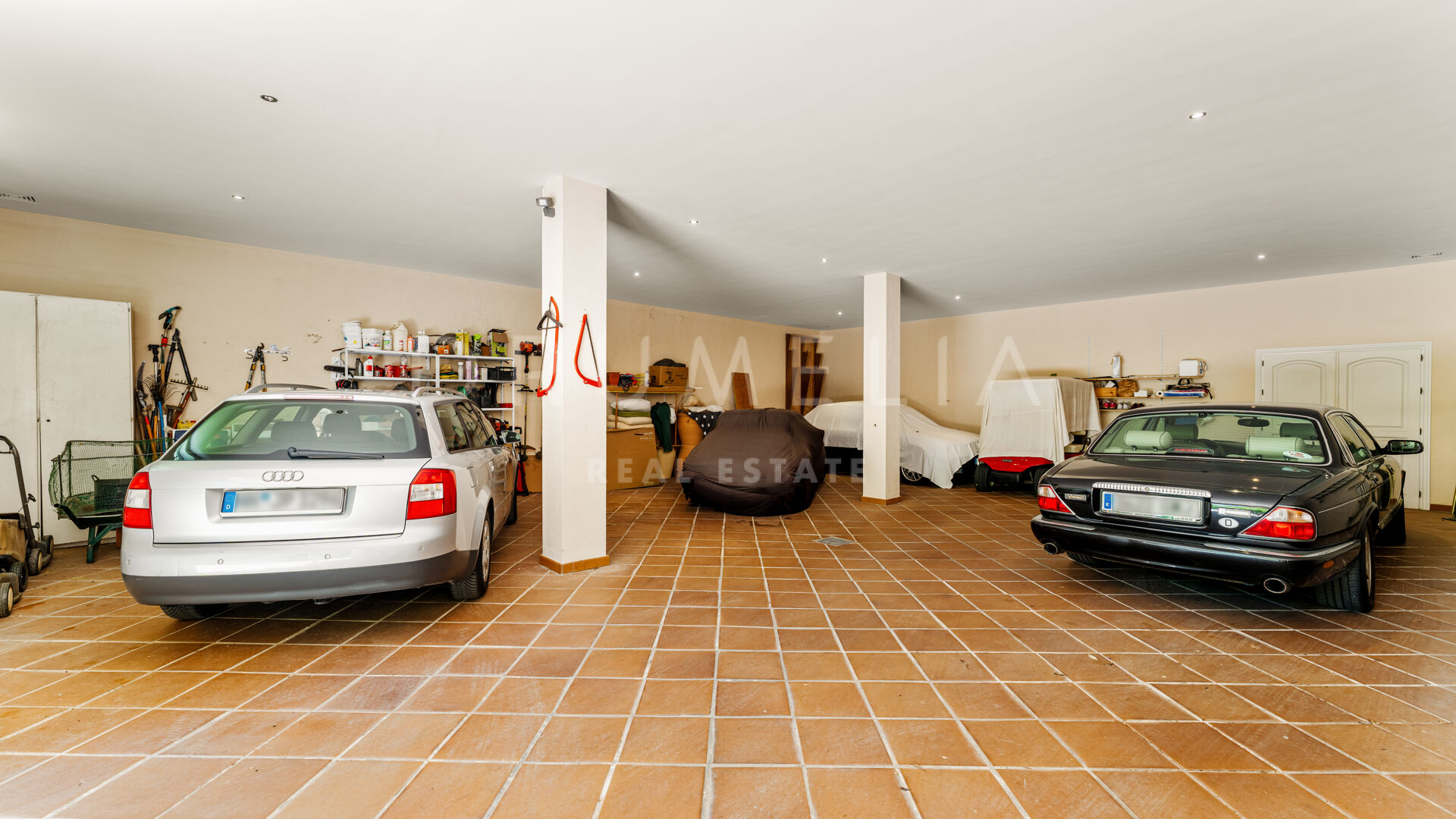 På suterrängplanet finns ytterligare två sovrum, varav det ena har ett privat vardagsrum och ett pentry – idealiskt för gäster eller personal. Här finns också ett rymligt garage med plats för fem större fordon. En del av detta plan är ännu inte färdigbyggt, vilket ger nya ägaren möjlighet att skapa ett personligt utrymme som hemmabio, gym, spa eller en extra gästlägenhet.