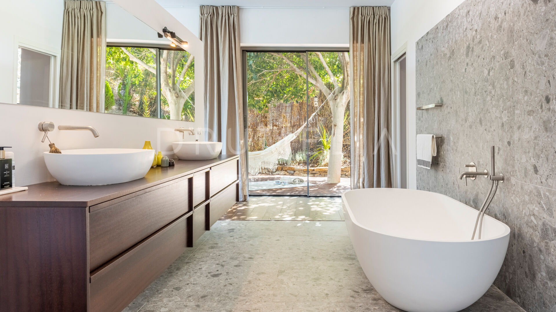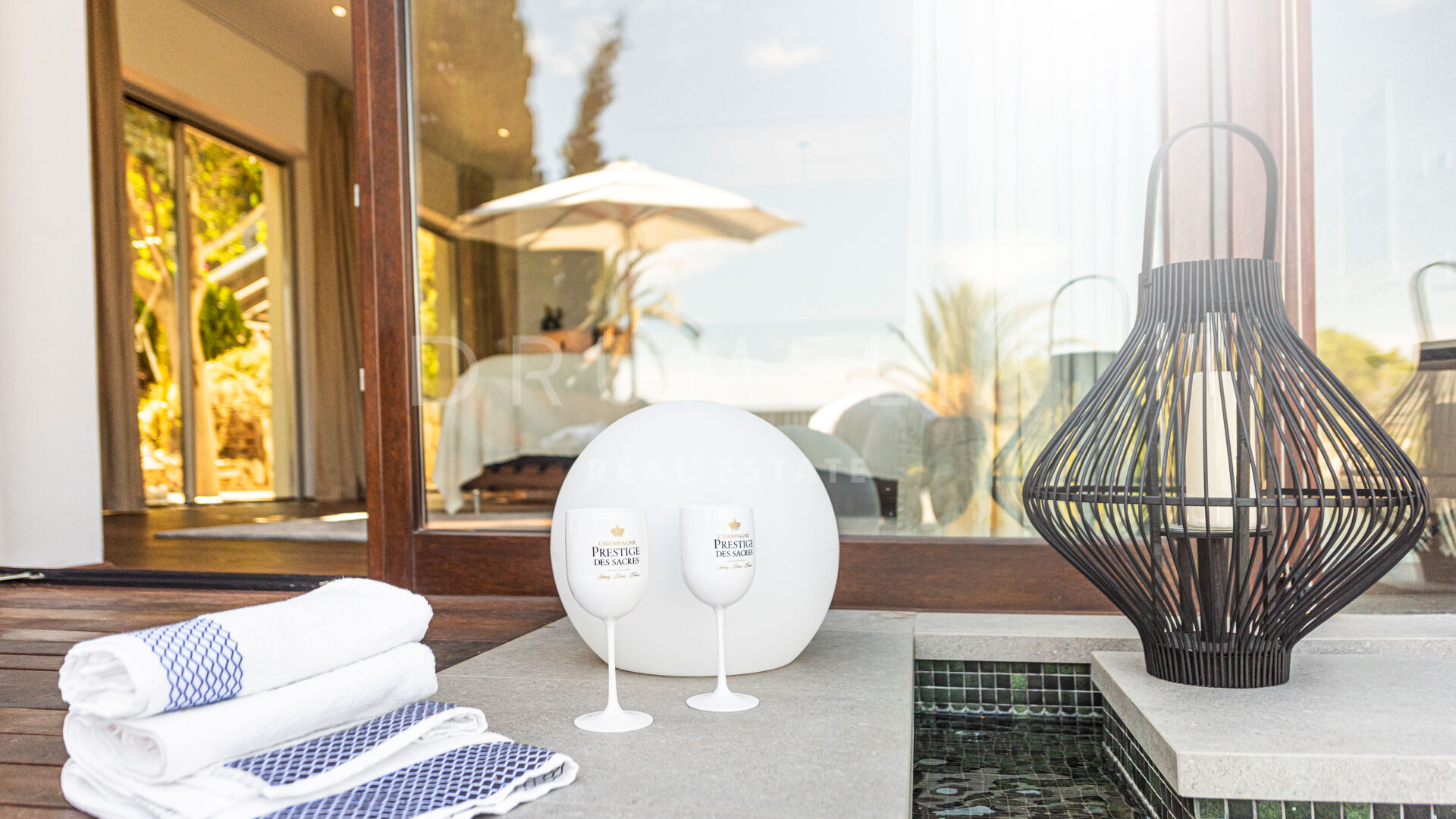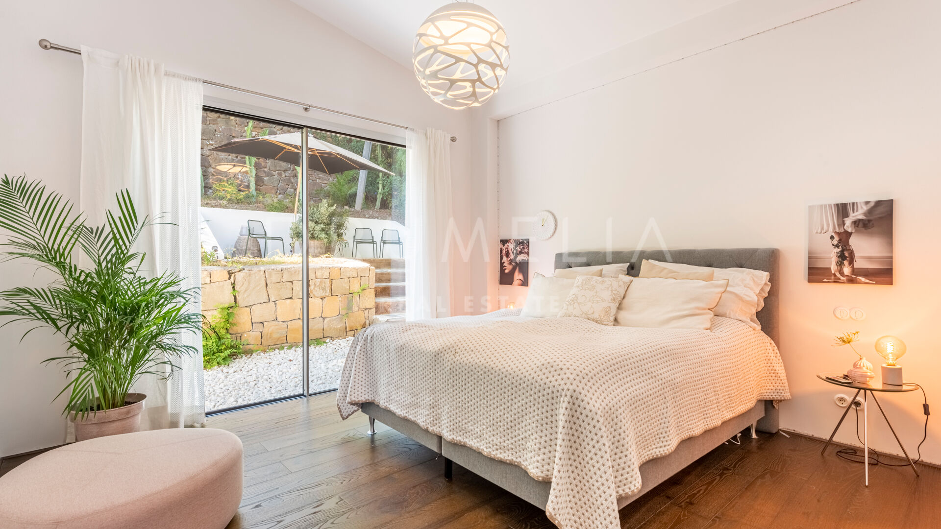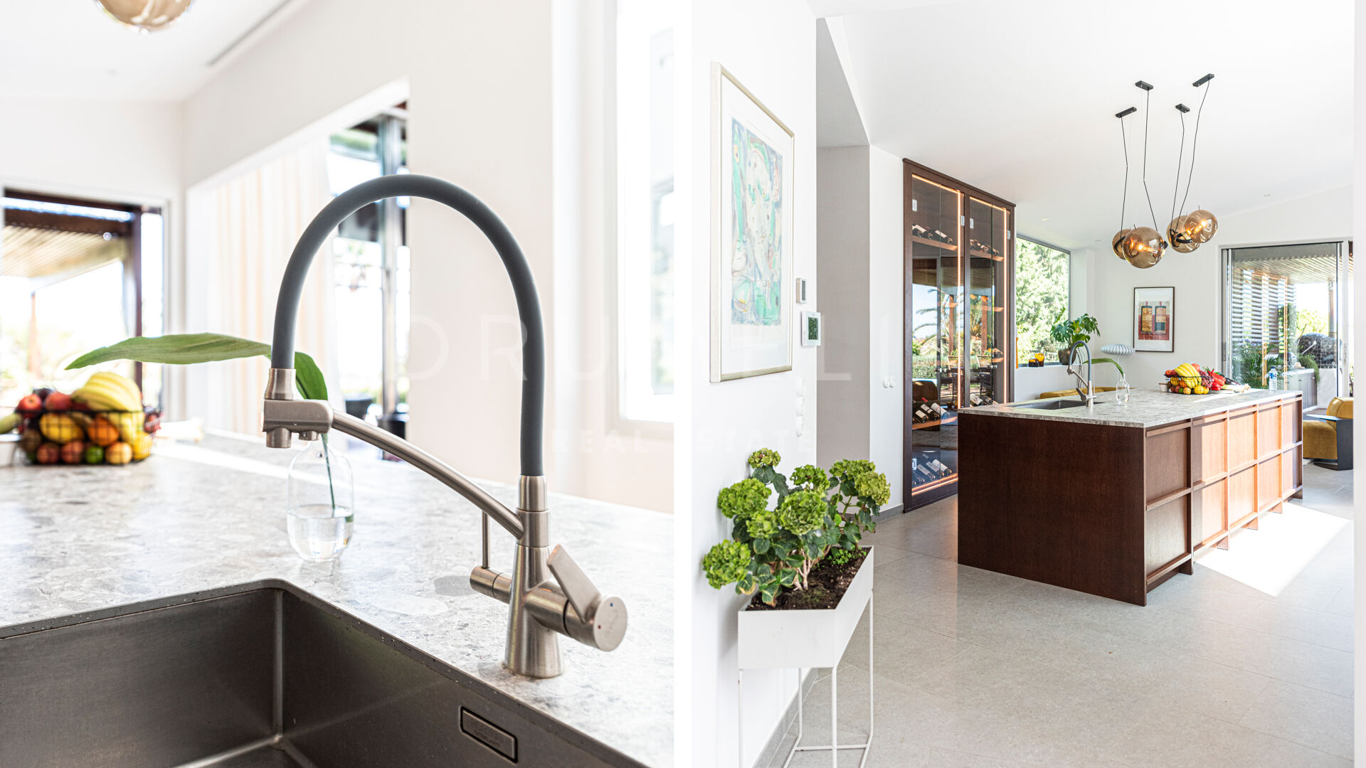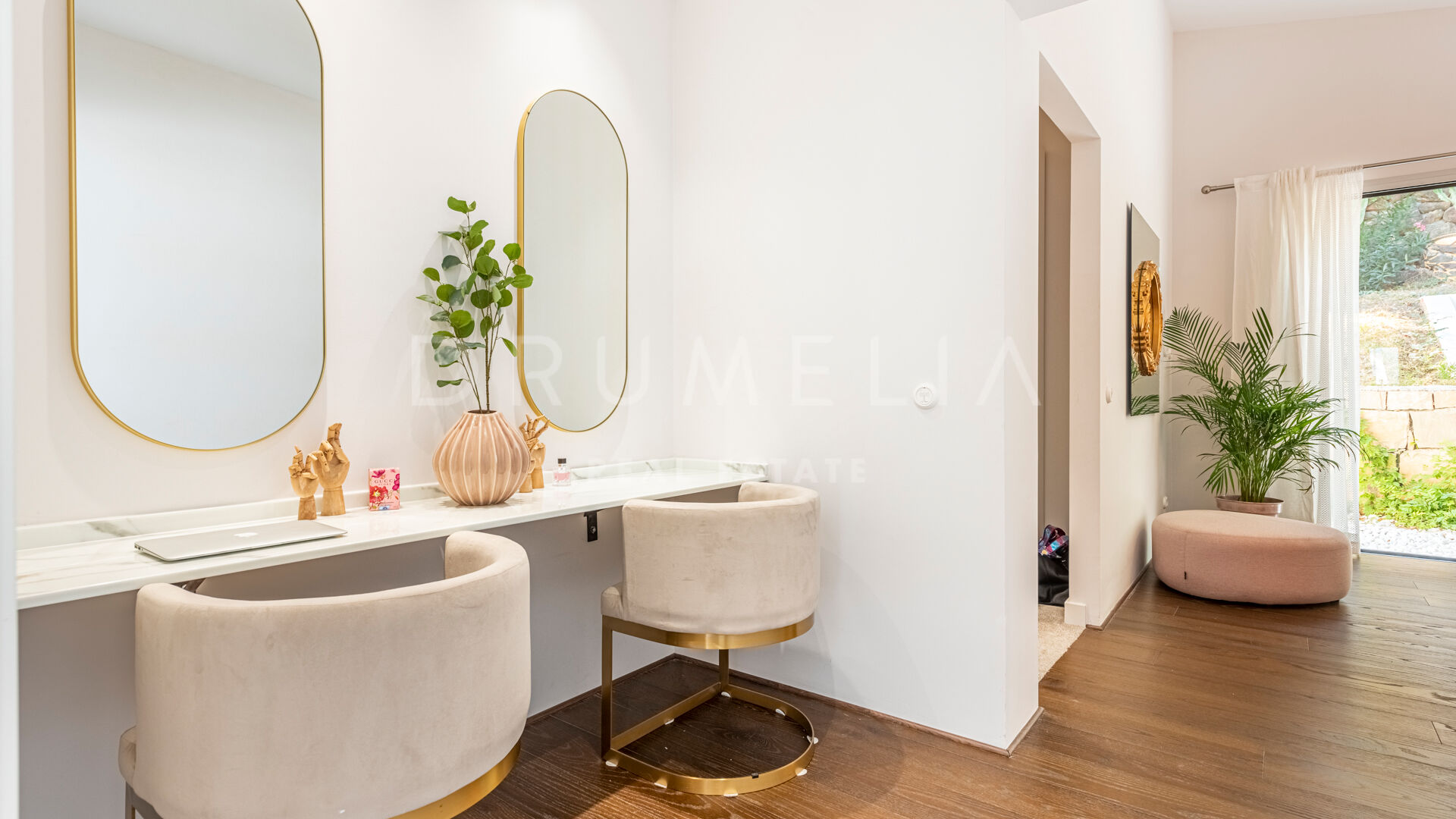 Utrustning av högsta kvalitet, luftkonditionering, golvvärme i hela huset, dubbla glasrutor, underbara högklassiga och miljövänliga möbler (tillval) och många andra funktioner kommer att göra det mycket bekvämt och trevligt att bo i denna fastighet. Överflöd av glas gör det möjligt att njuta av ljus och lugn fridfull utsikt från varje hörn av huset. På grund av det upphöjda läget och den sydliga orienteringen erbjuder det magiska vyer till de bildsköna omgivningarna, Medelhavet och bergen, inklusive det legendariska La Concha.