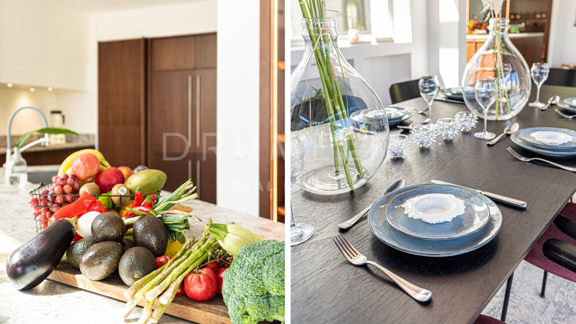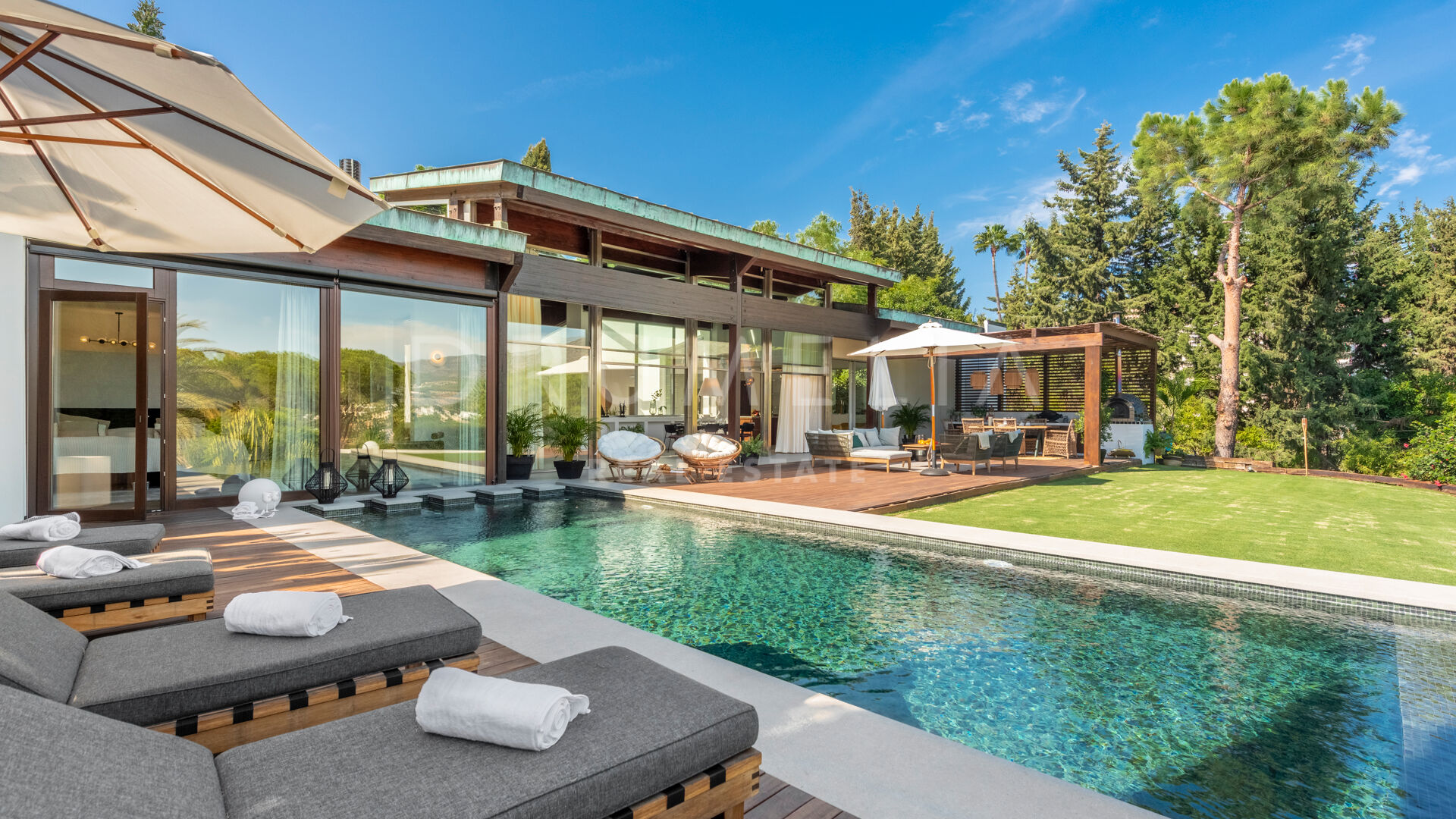 Den fantastiska villan kommer i utmärkt skick, med ett rymligt vardagsrum och matsal, Danespan/Puroforms specialdesignade kök, 6 sovrum, 4 badrum och 2 gästtoaletter, ett privat garage, 100 m² terrasser. En imponerande master suite har ett fristående lyxigt badkar. Den nedre nivån med 3 sovrum och tillgång till en förtrollande uteplats är värd för ett rymligt gym, underhållning och biorum. Poolområdet omges av de anlagda trädgårdarna och är en tropisk oas med en pool i SPA-stil, solbadplatser, chill-out- och al fresco-matplatser, ett utekök och en pizzaugn.