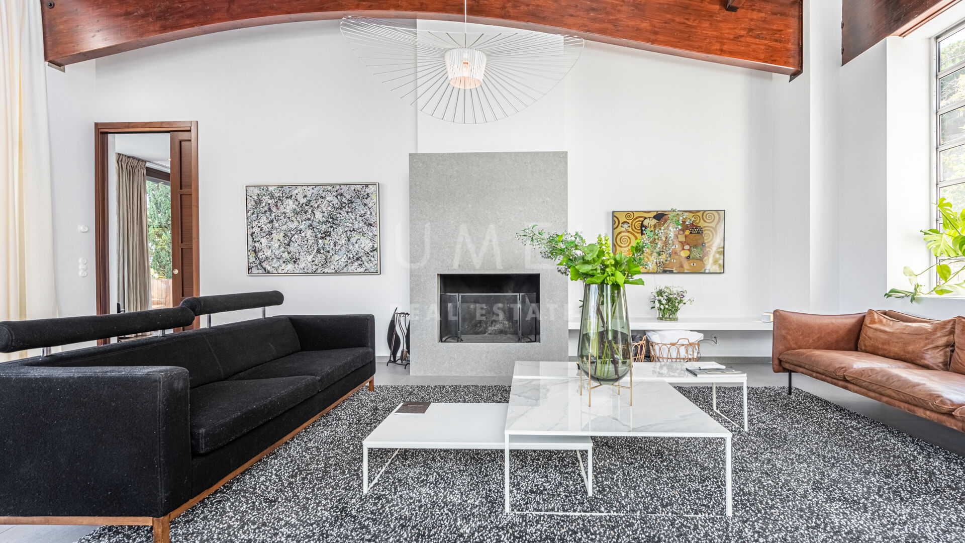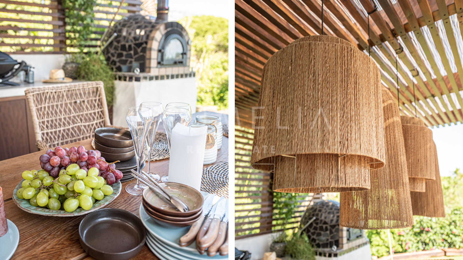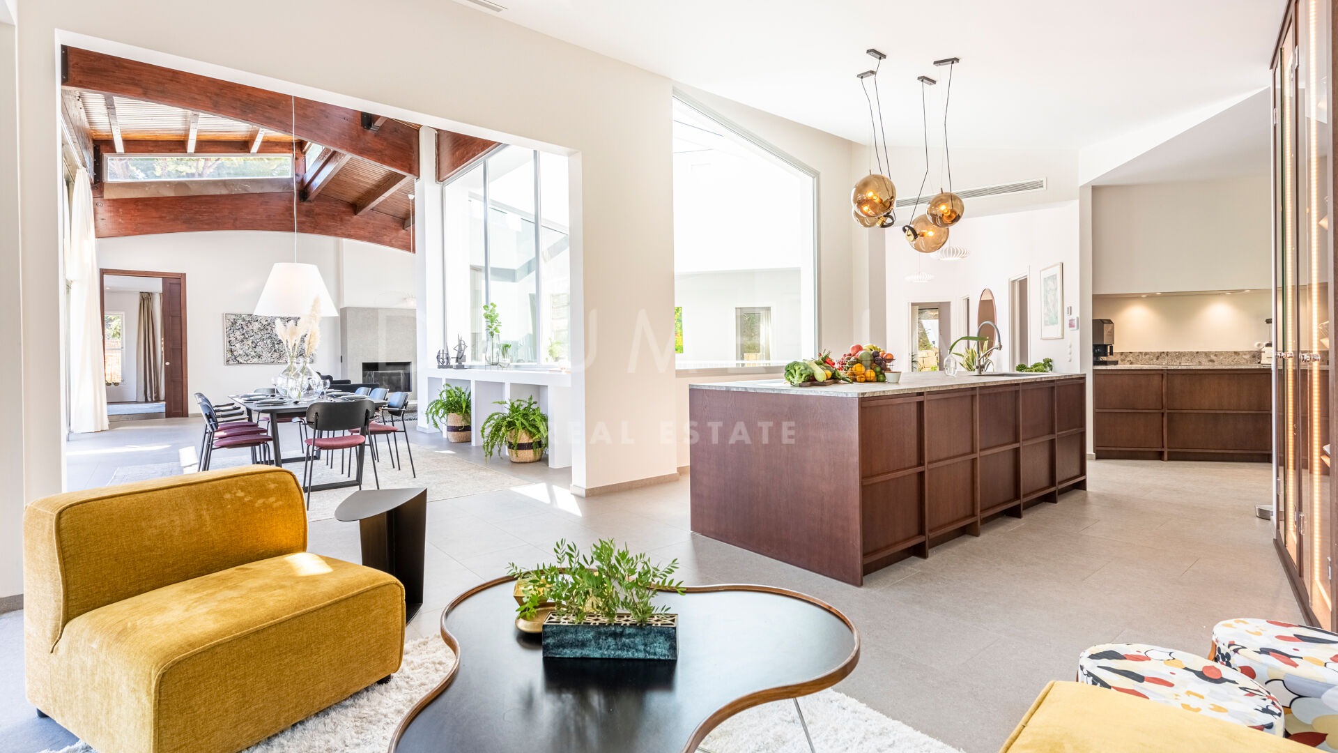 Den spektakulära fastigheten utstrålar chic och blandar sofistikerad elegans med ergonomi och raffinerad kolonial komfort. Den representerar aktuella trender mot en elegant progressiv design med de iögonfallande traditionella egenskaperna. Den är estetiskt fascinerande och kan beundras för den exotiska blandningen av stilar som skickligt anpassats till det varma klimatet. Den koloniala stilen blandas med modern komfort och moderna funktioner; det höga välvda taket i trä, en öppen spis, träelement, inkl. trägolv och trägolv, naturstensväggar, mysig och avkopplande inredning går hand i hand med moderna ramlösa panoramafönster och panoramadörrar, moderna trappor, viss lätthet i materialen, neutral färgpalett och sofistikerad belysning.
