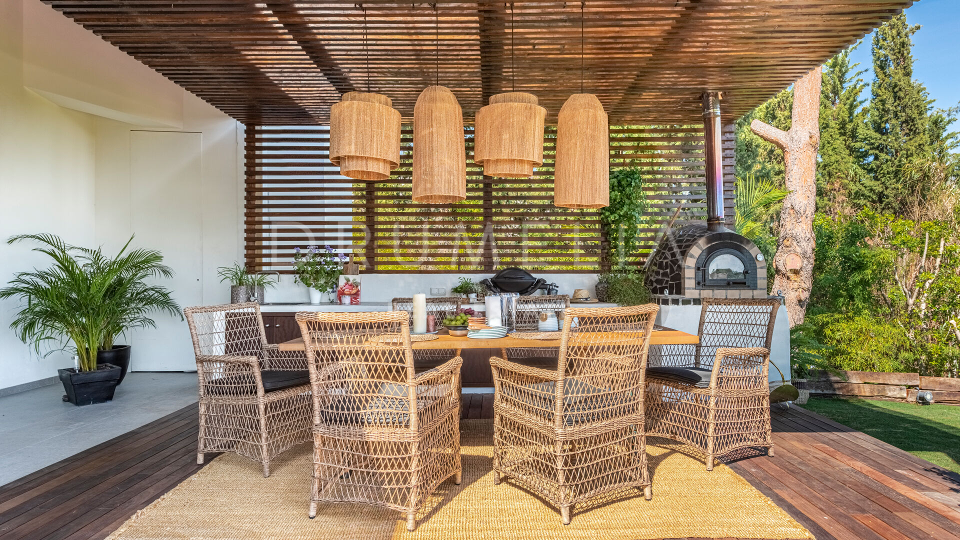 Ett utmärkt tillfälle att förvärva ett modernt residens i toppklass som verkligen är speciellt och ger sina invånare ett liv fullt av komfort och stil! Det lyxiga huset på 647 m² ligger på en tomt på 1 643 m² och är helt renoverat enligt de högsta specifikationerna, med en häpnadsväckande uppmärksamhet på detaljer, med material av högsta kvalitet och modern teknik. Den moderna villan i Bali-stil skiljer sig från alla andra fastigheter på marknaden och erbjuder en annorlunda känsla och atmosfär.