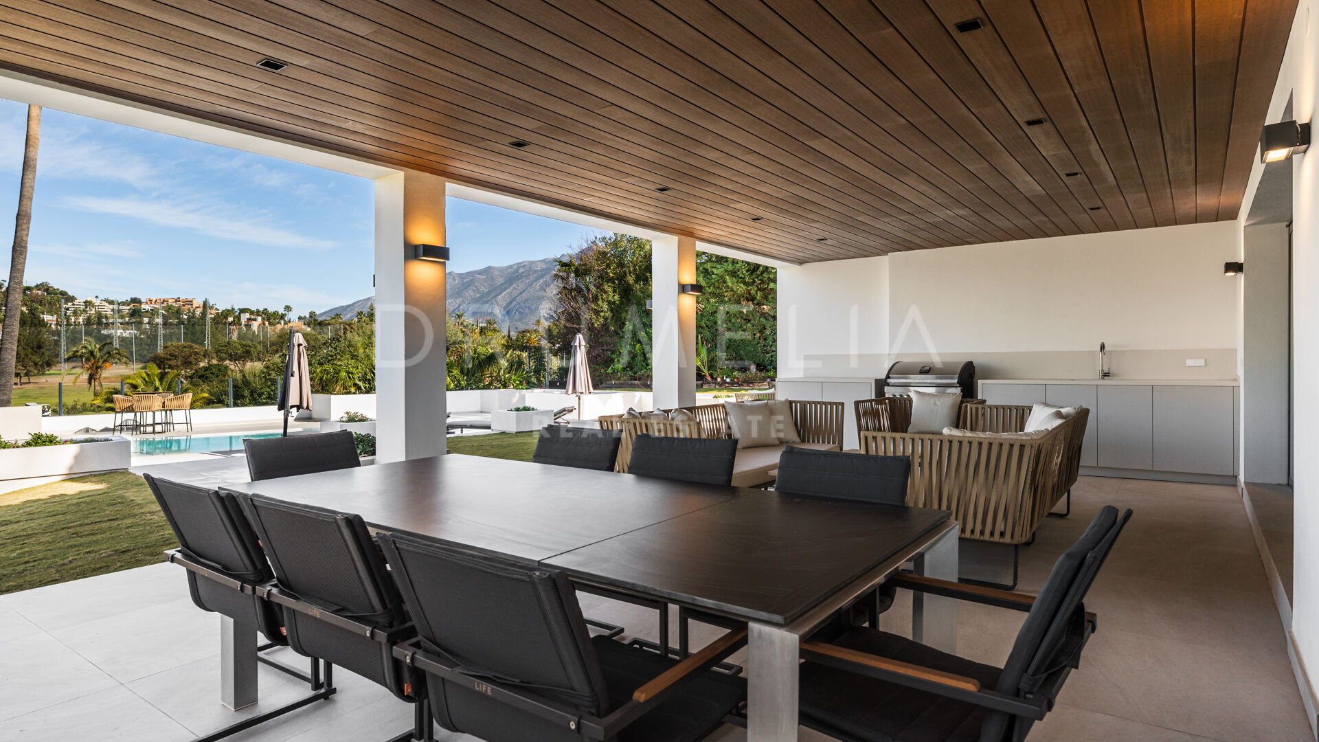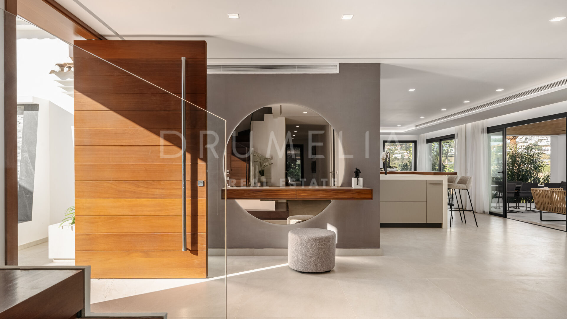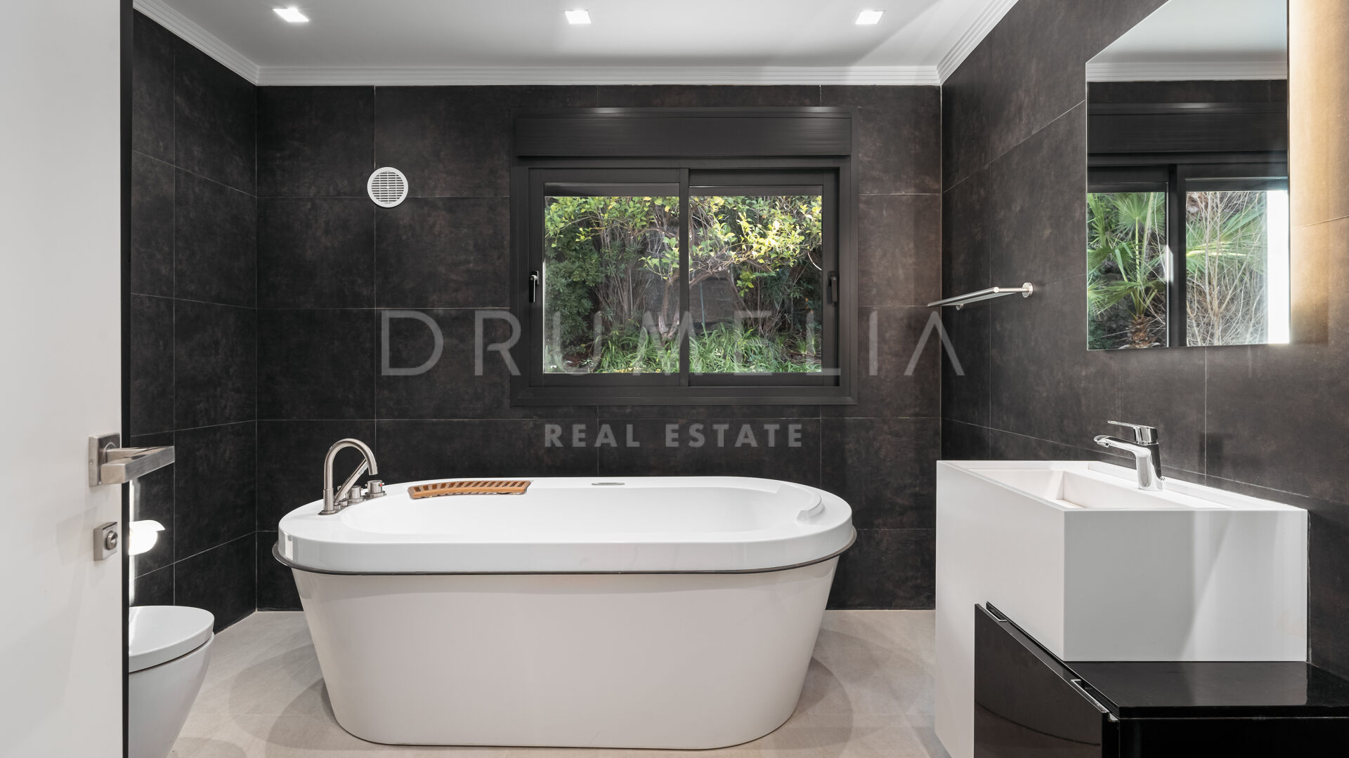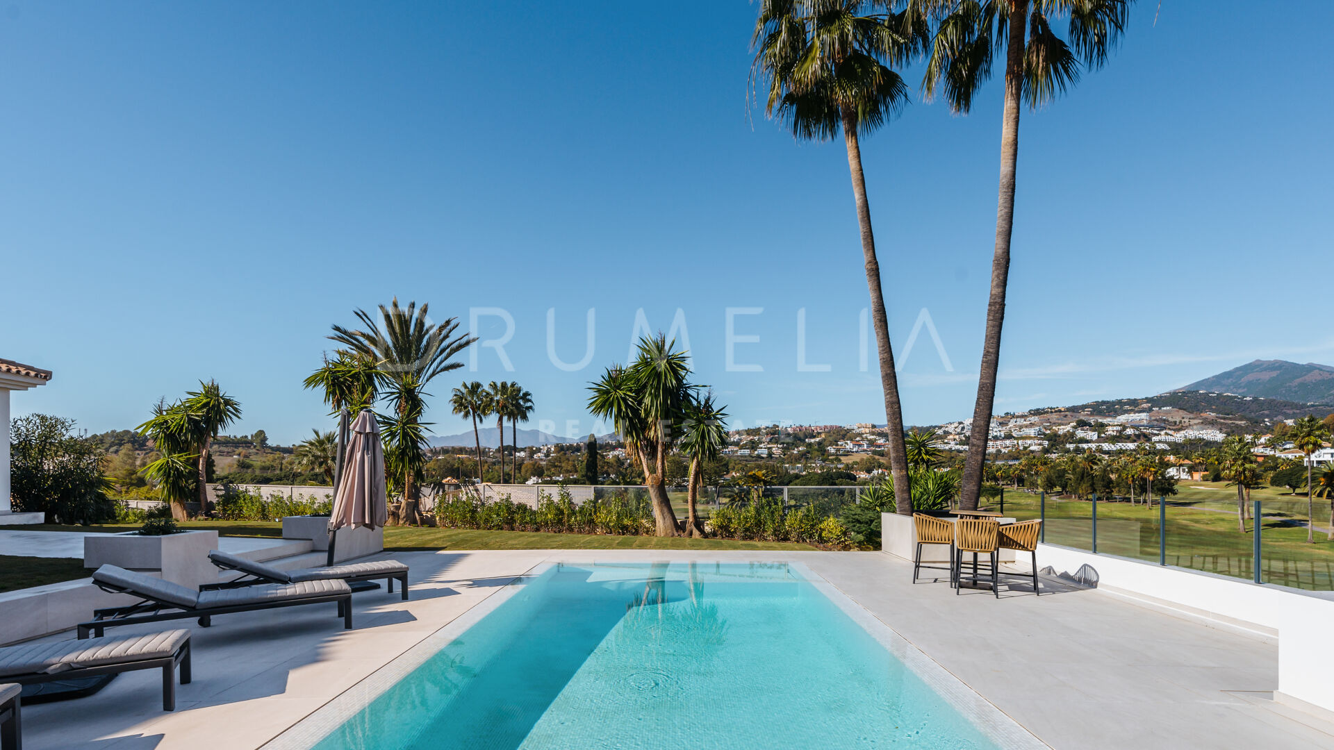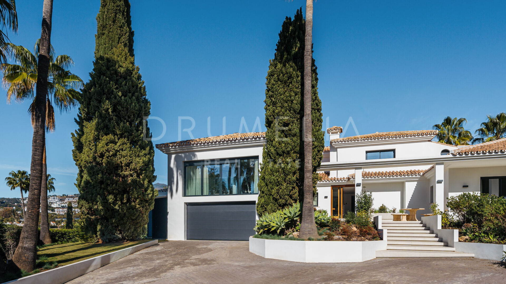 Denna nyligen reformerade fantastiska villa med 5 sovrum till salu i Los Naranjos Golf, Nueva Andalucia, i ett lungt och innhängnat område, vilket innebär ren luft och frånvaro av trafikbuller. Den exceptionella fastigheten erbjuder panoramautsikt över den prestigefyllda Los Naranjos golfbana, designad av Robert Trent Jones Sr. Säkerhet och lugn är av största vikt i detta exklusiva inhängnade bostadsområde, vilket ger en fristad för sina invånare.