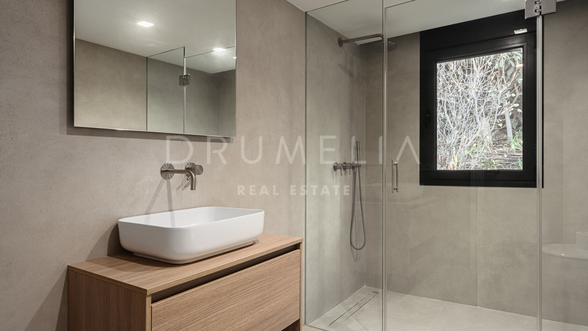 Alla lokala bekvämligheter finns nära till hands, inklusive fantastiska golfbanor, flera internationella skolor, affärer, stormarknader, ekologiska kaféer, restauranger och barer, sport- och rekreationsanläggningar, Las Tortugas Lake för promenader och picknick, en populär lördag utomhusmarknad, konsertarena och kasino. Det tar bara några minuter att köra till stränderna med blå flagga, legendariska Puerto Banus, livliga San Pedro, lyxiga Marbella’s Golden Mile och Old Centre. Estepona resort, New Golden Mile och gourmetbyn Benahavis ligger också på kort avstånd.