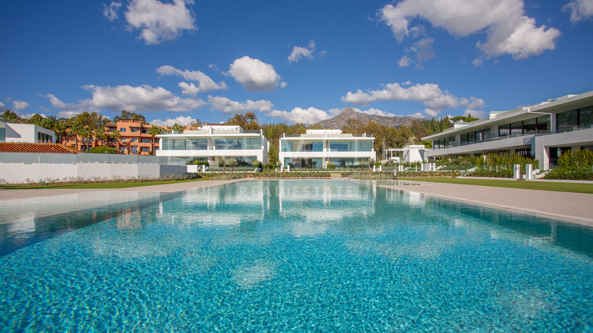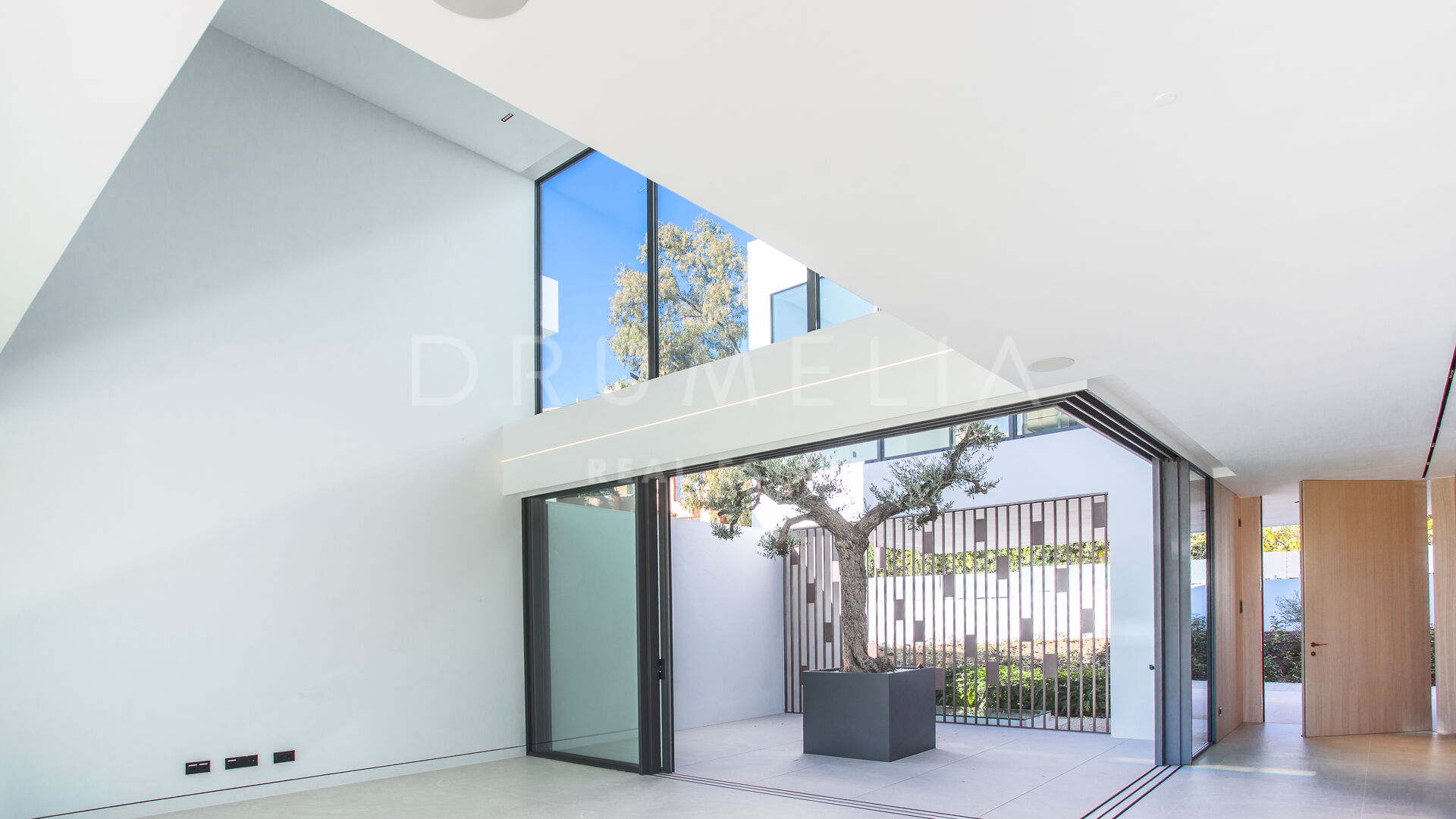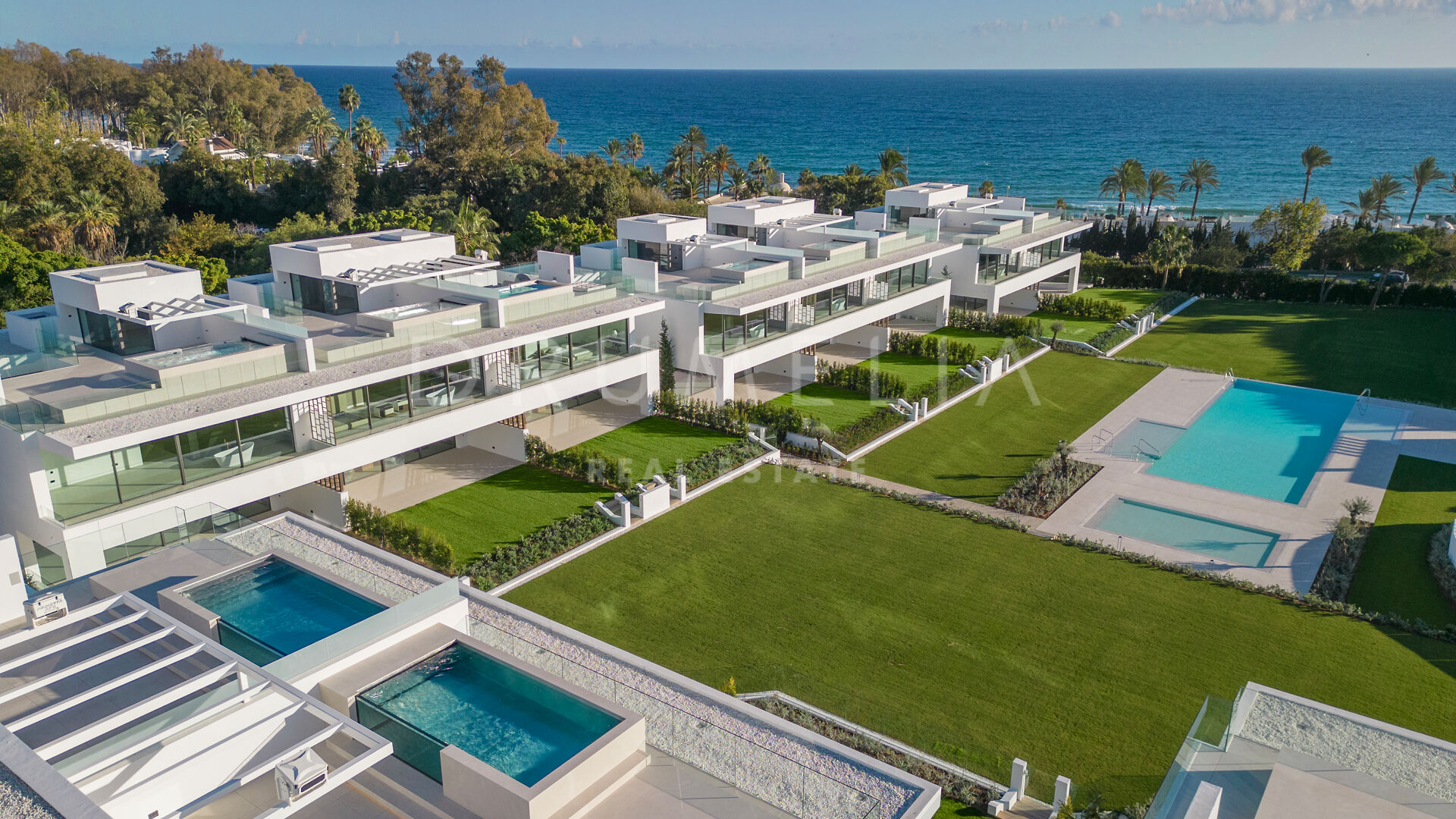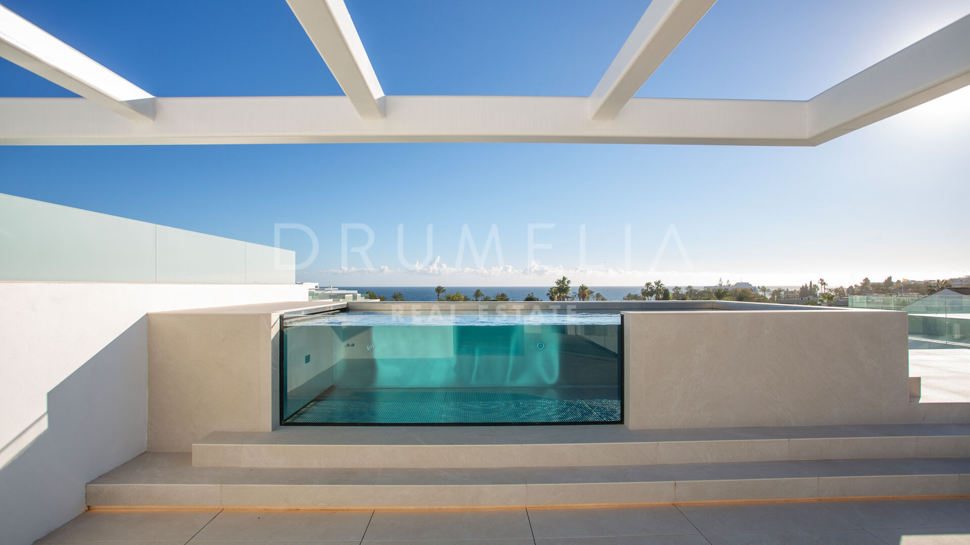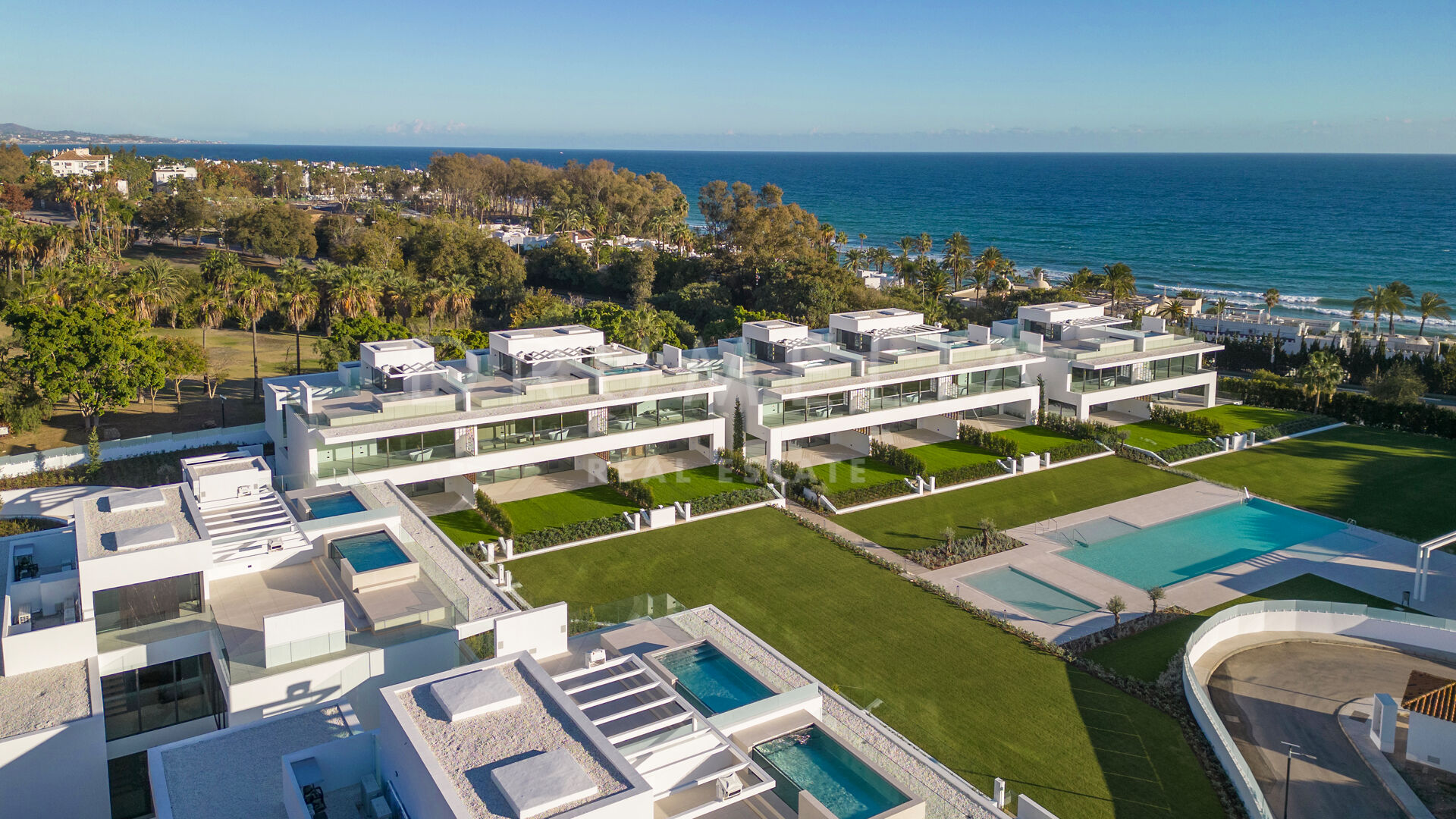 Detta nya magnifika hus till salu kommer att ligga i en sluten och säker bostad på den lyxiga strandkanten Marbellas Golden Mile, nära alla bekvämligheter, inklusive stränder, golfbanor, tennisklubbar, designbutiker, internationella skolor och fina restauranger. Det är en idealisk fastighet för dem som söker komfort och lyx i ett av de mest prestigefyllda områdena i hela Medelhavsområdet. Den erbjuder hög kvalitet och stor mångsidighet som en utmärkt hyresfastighet eller ett permanent hem. Byggnadsåret är 2023.