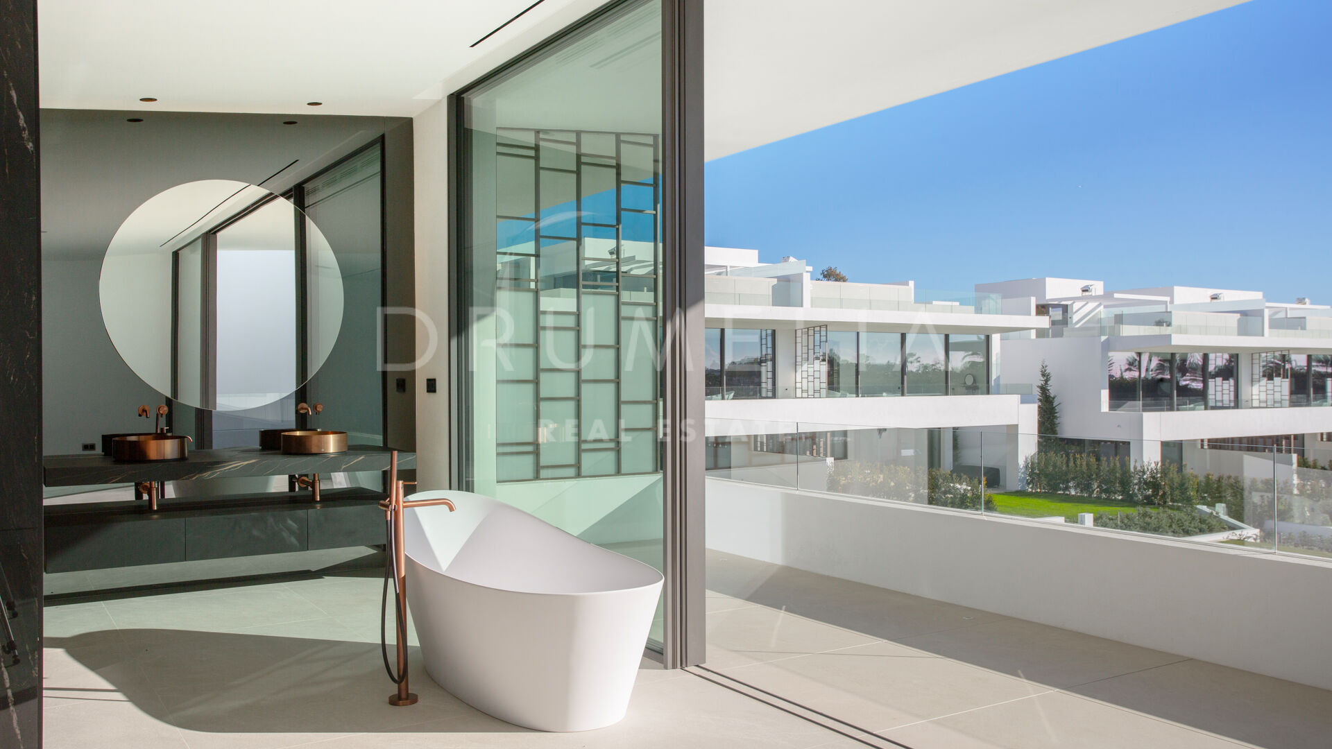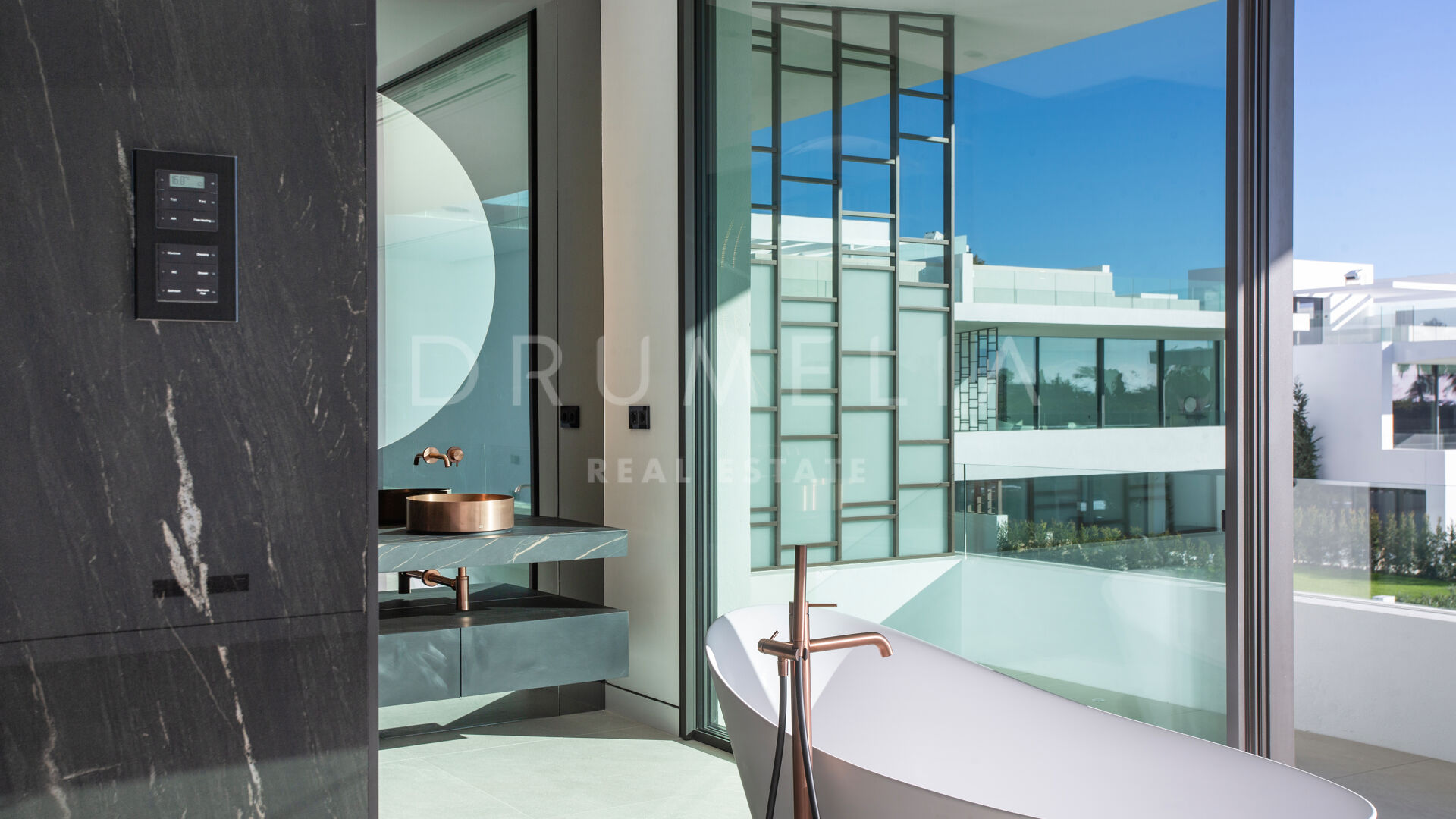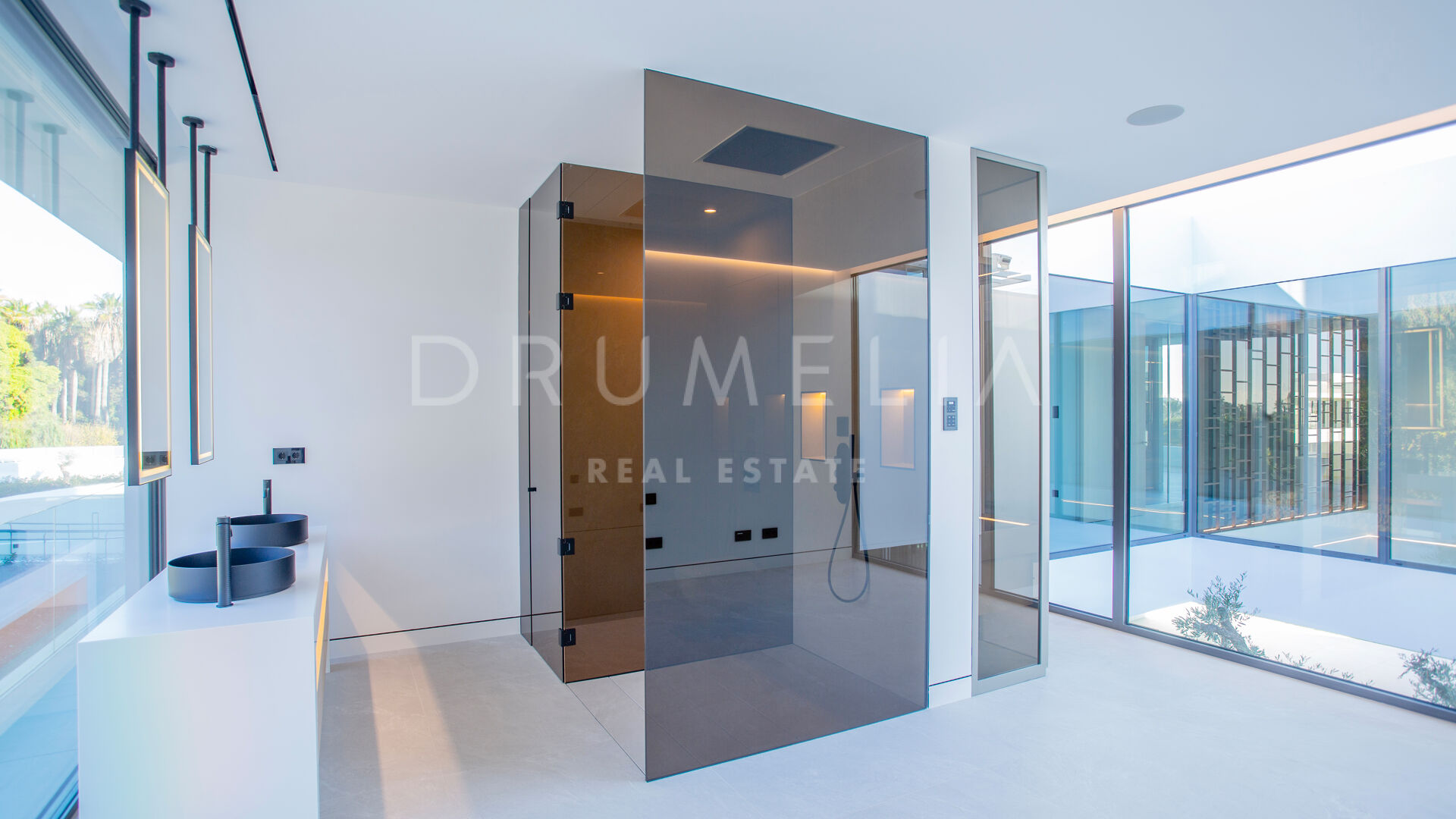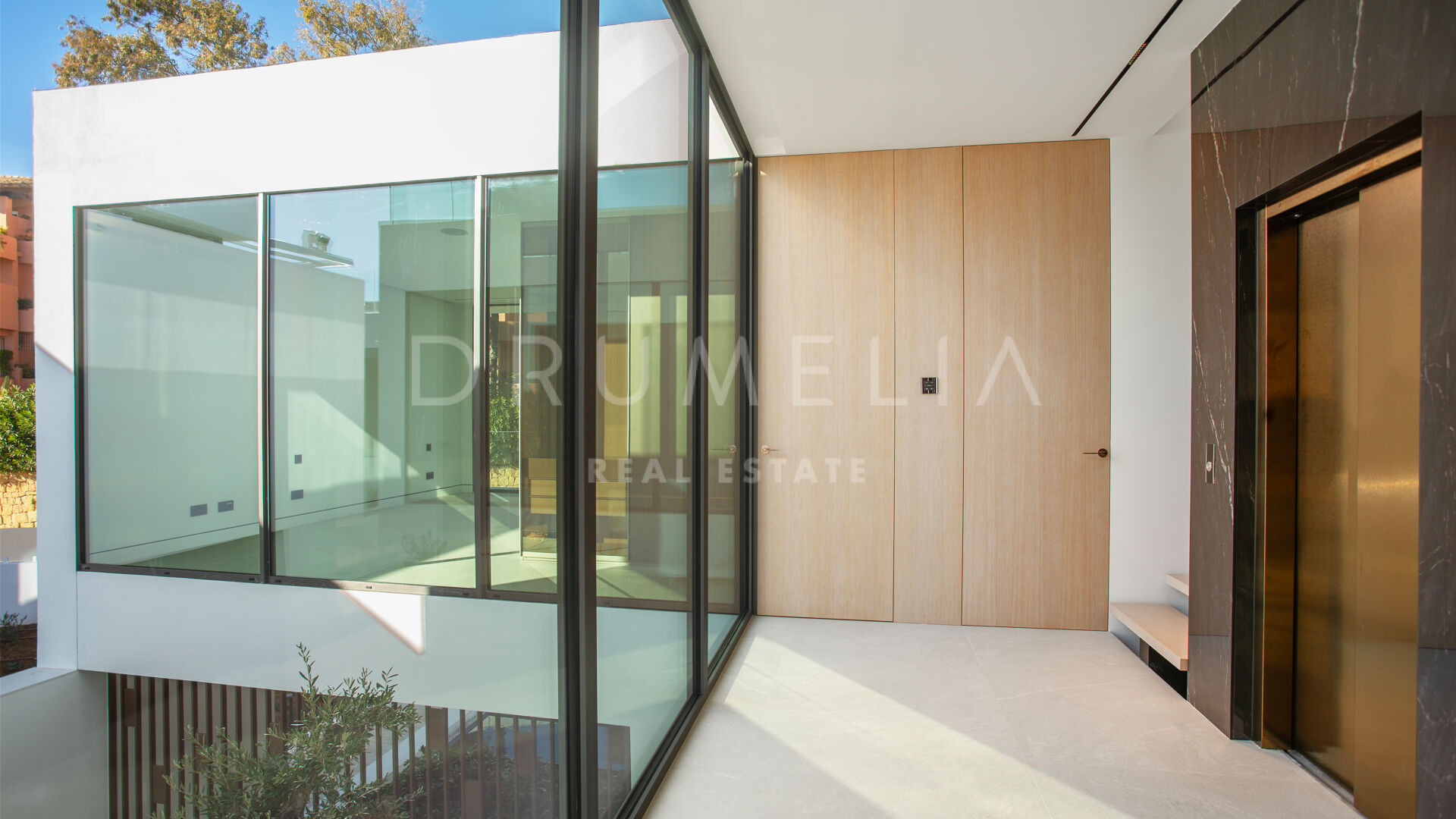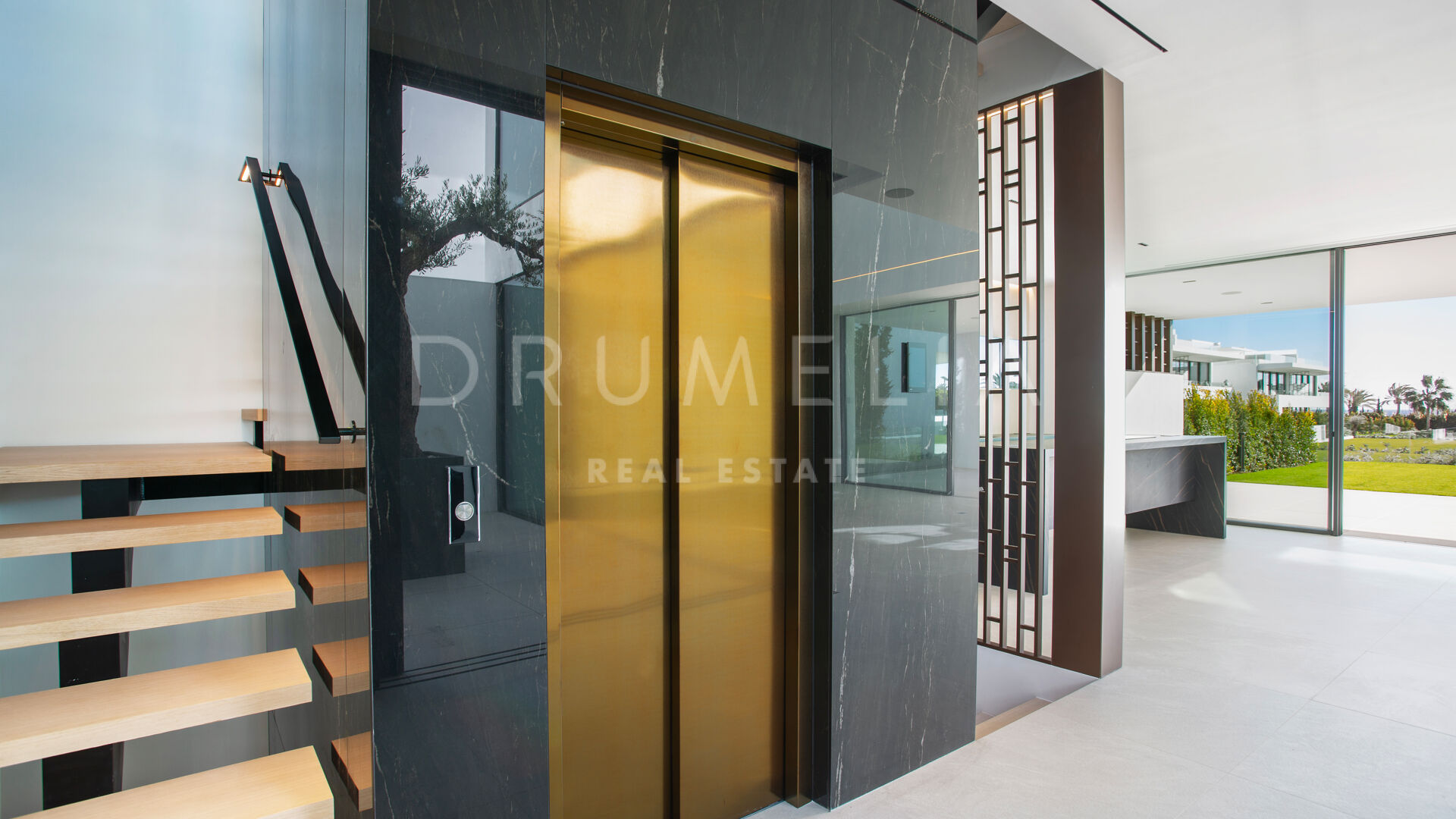 Det splitternya huset på Golden Mile kommer att levereras i utmärkt skick, med hiss, hemautomationssystem, golvvärme (genomgående), Dolby Stereo Surround-system, sofistikerad LED-belysning, Internet Wi-Fi, elektriska persienner, inbyggda garderober, luftkonditionering, öppen spis, dubbla glasrutor, glasdörrar och balustrader, etc. En uppvärmd pool med nollkant, en TV-lounge utomhus, solbadplatser, chill-out-platser och uteserveringar inbjuder till att njuta av solen och det varma klimatet och till att fira medelhavslivet, som handlar om att ha en särskild inställning till livet. Tiden går långsamt och det är lätt att vara lycklig.