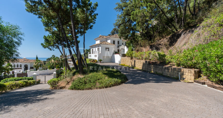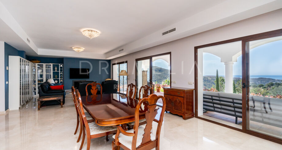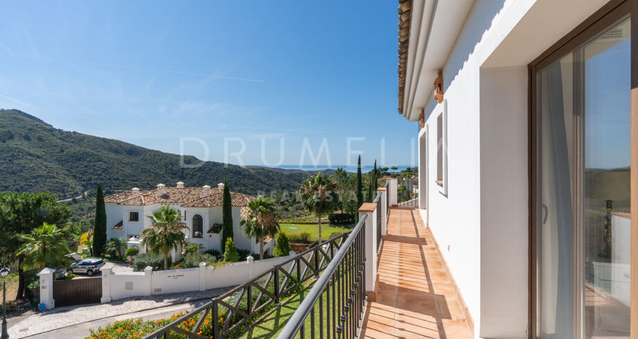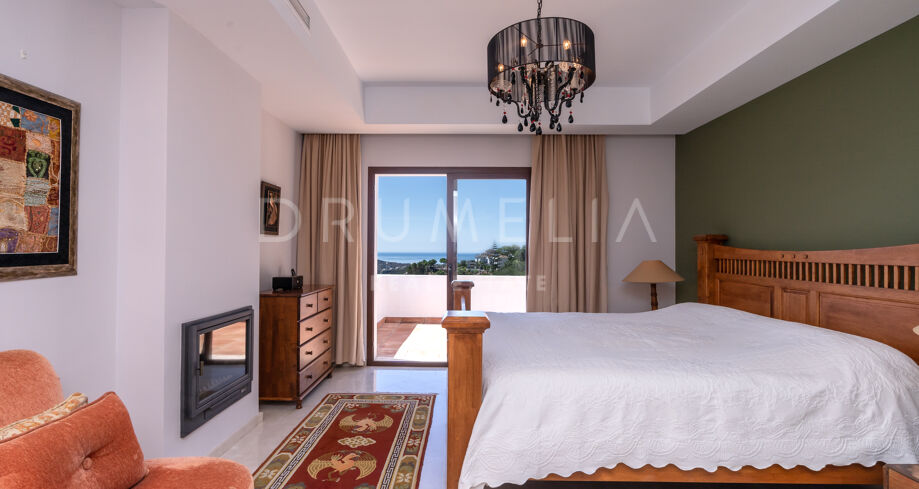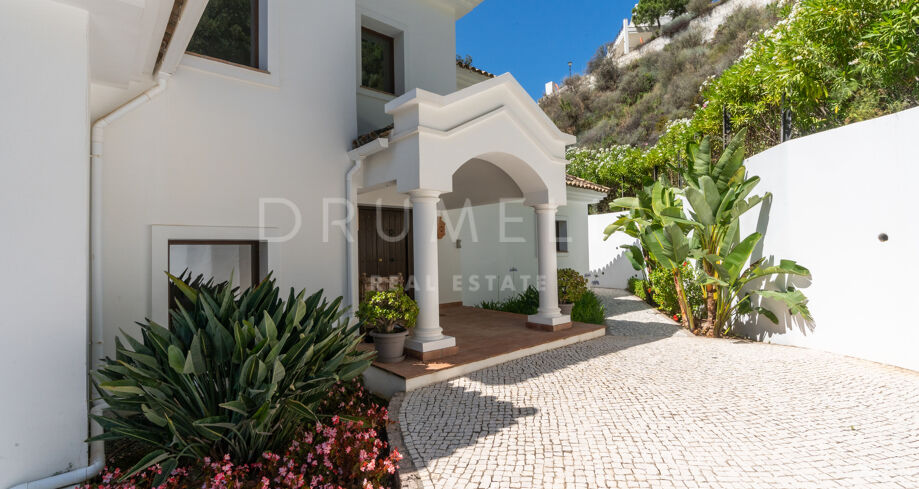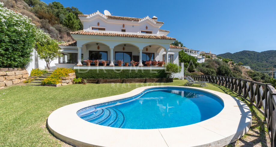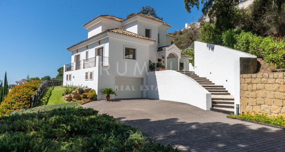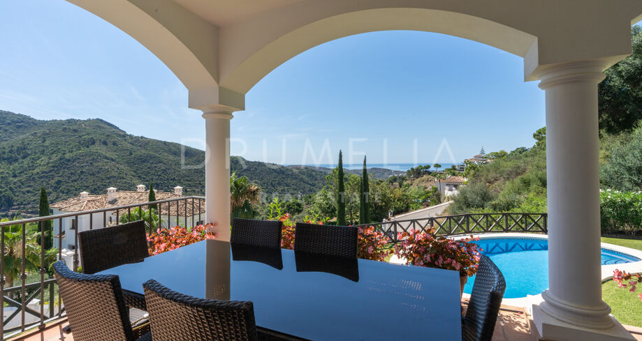 Vacker medelhavsinspirerad high-end villa med utsikt över havet och bergen i Monte Mayor, Benahavís