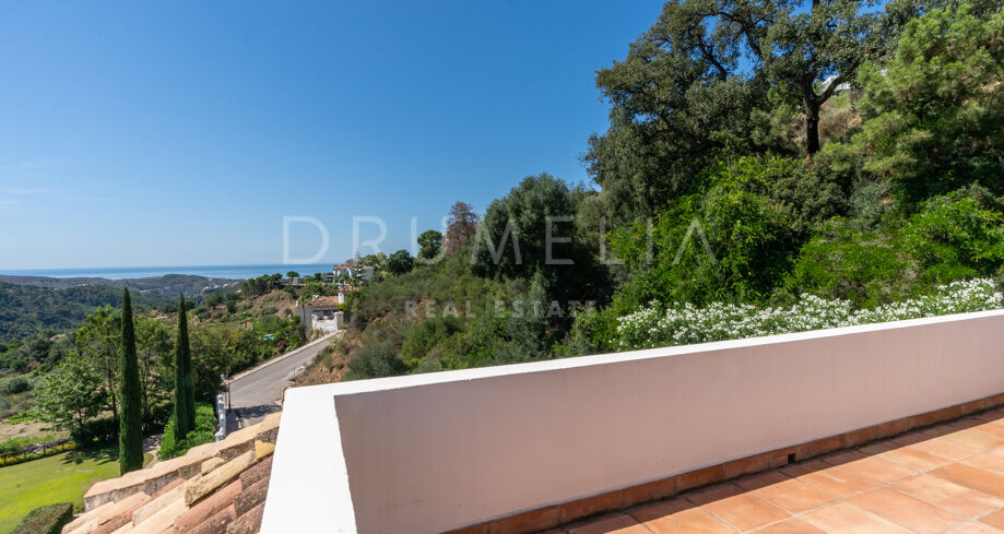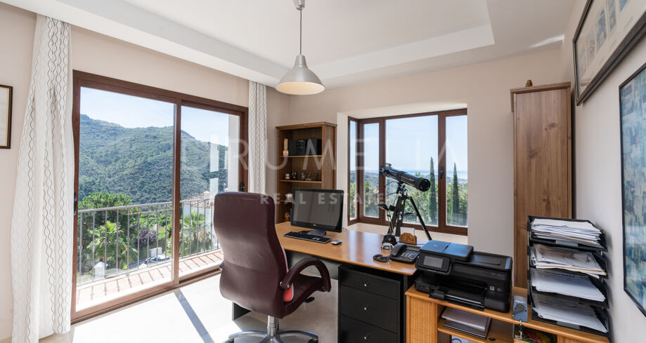 Denna vackra medelhavsvilla med 4 sovrum och fantastisk utsikt över havet och bergen erbjuds till försäljning i prestigefyllda Monte Mayor i Benahavis kommun. Det gated och mycket fridfulla samhället med 24-timmars säkerhetstjänst ligger inbäddat i 330 hektar och mer än hälften av territoriet förblir en skyddad grön bälteszon. Omgiven av fantastisk andalusisk natur och liknande lyxfastigheter i Benahavis-området, har gården hisnande panoramautsikt över kullarna, dalarna och bergen, Medelhavet, Gibraltar och den afrikanska kusten. Du kommer att ha det mest exklusiva livet i Marbella-området, bara 15 minuter från havet och nära alla bekvämligheter och golfbanor!