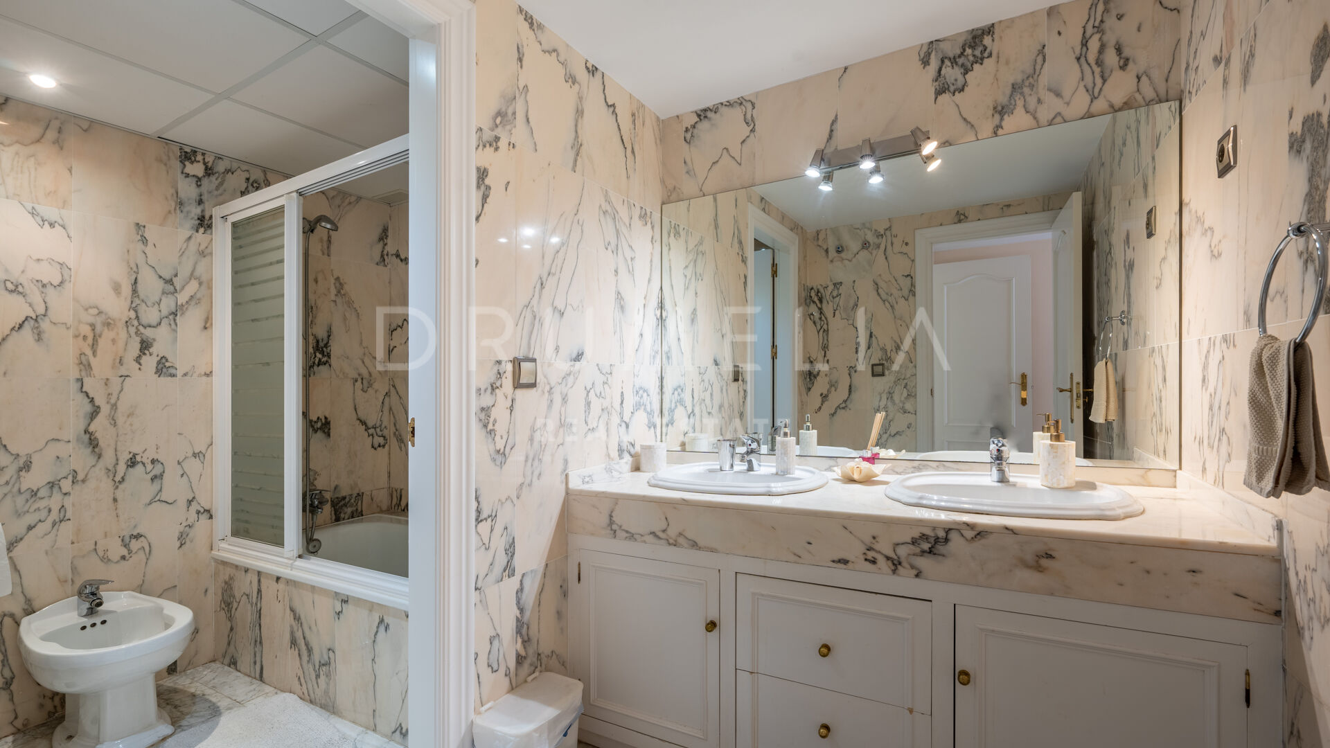 Den lägre nivån har den 4: e sovrumssviten med badrum, en lounge och tillgång till ett garage med 2 bilar. Denna nivå har potential att omvandlas till en separat lägenhet med egen tillgång, vilket ger mångsidighet för ytterligare bostadsyta eller uthyrningsmöjligheter. Marbellas toppadress med glamorös miljö och lyxfastigheter är inte bara exklusiv och vacker, utan det är också en solid investering. Radhuset säljs i gott skick och, som du kan se, med mycket potential. Det kan bli ditt fantastiska medelhavshem som kombinerar en exklusiv modern livsstil med fantastiskt läge i Marbella.
