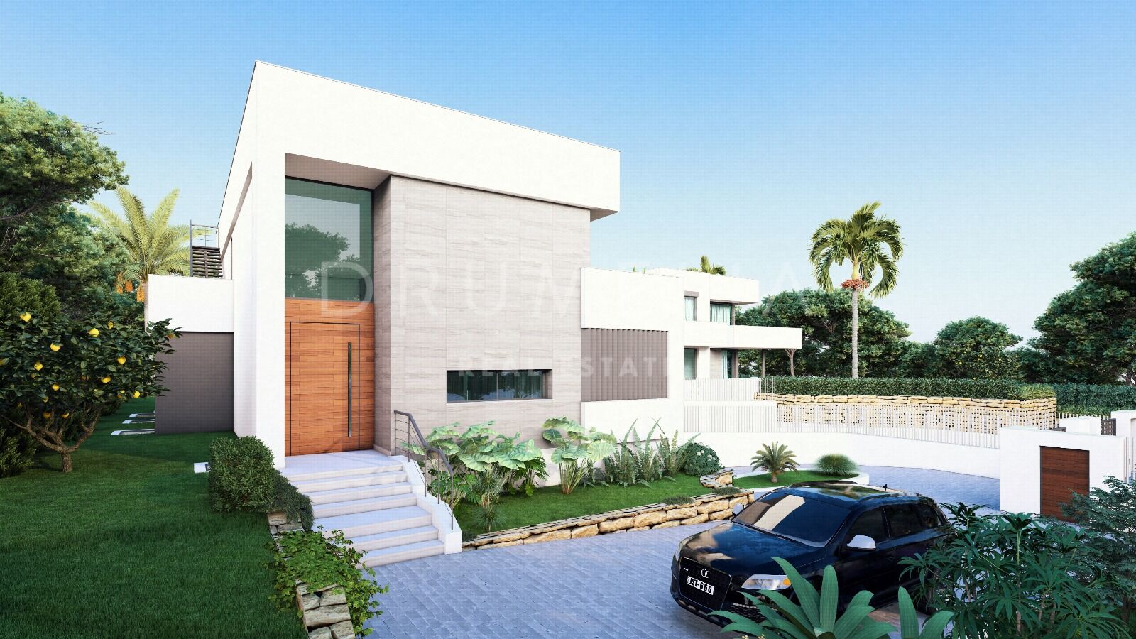 Denna moderna villa erbjuder en unik möjlighet att njuta av lyxigt boende i ett av Marbellas mest eftertraktade områden. Fastigheten är under uppförande och beräknas stå färdig i januari 2026. Den är utformad med rymliga interiörer, rena arkitektoniska linjer och material av hög kvalitet, vilket skapar en elegant och modern hemmiljö.
