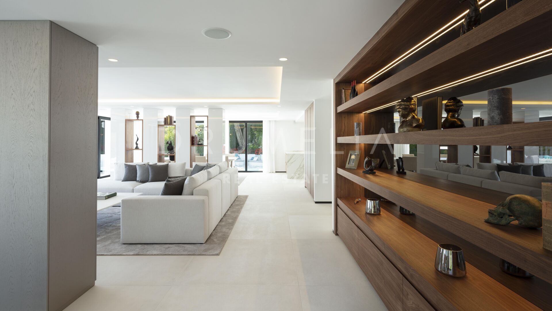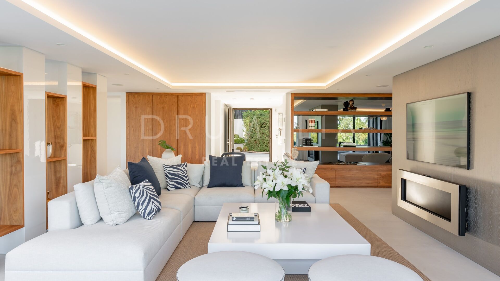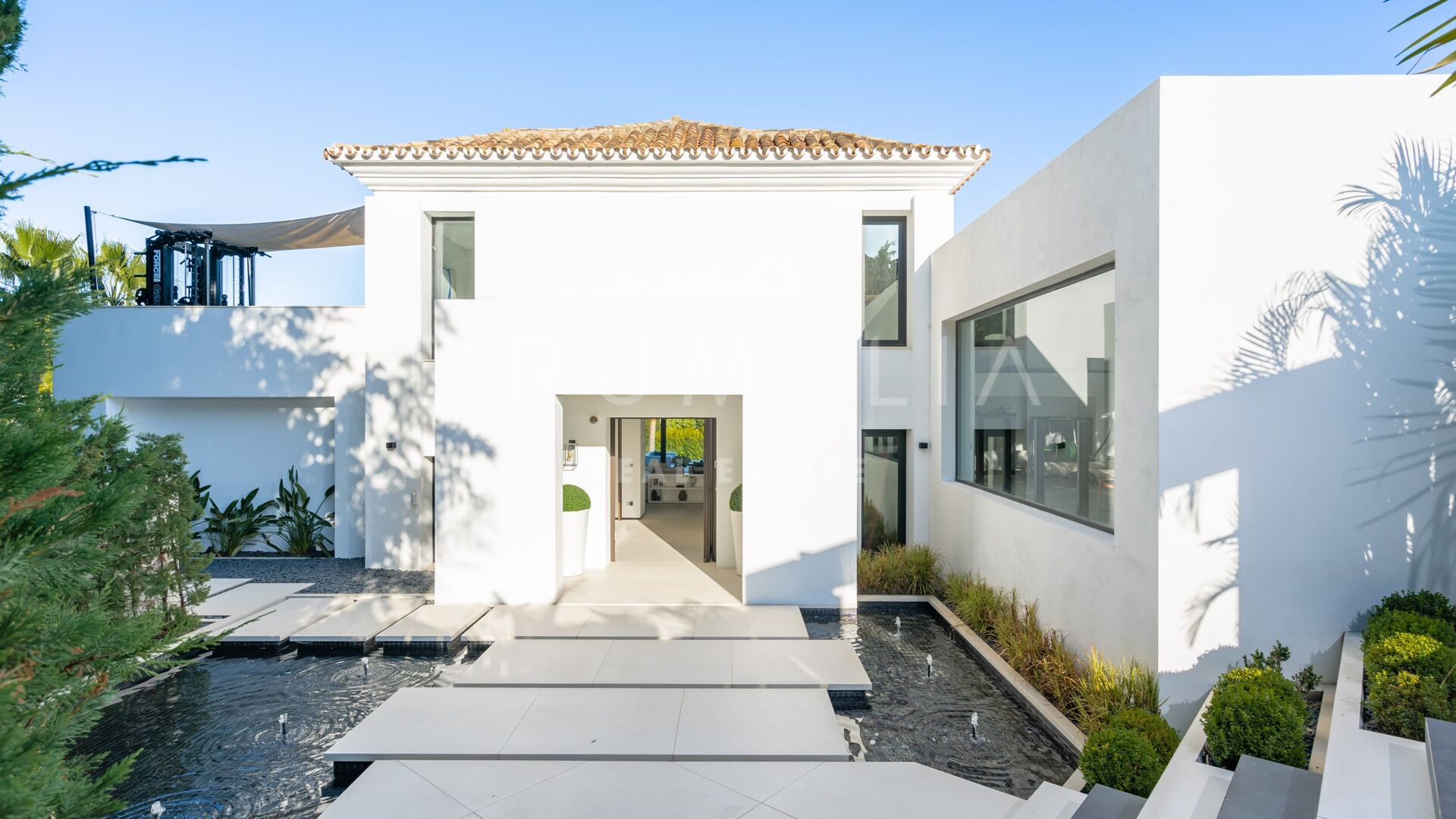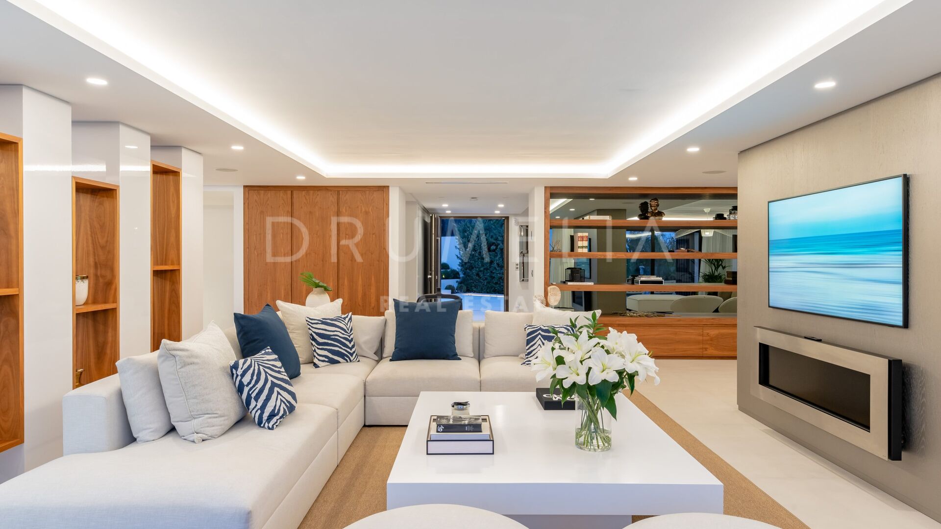 Denna eleganta villa till salu i ett utmärkt läge i Nueva Andalucía, Marbella, är platsen för att omfamna det fantastiska medelhavslivet när det är som bäst.