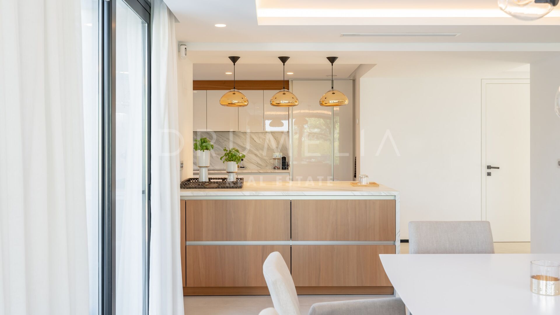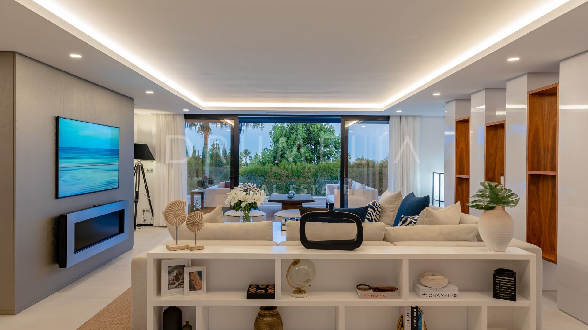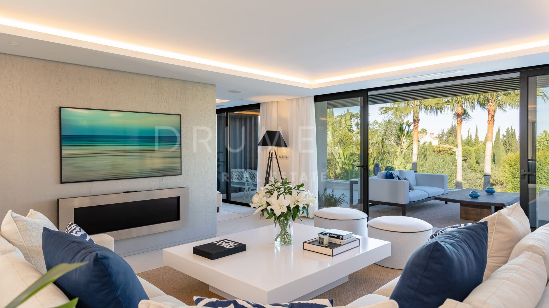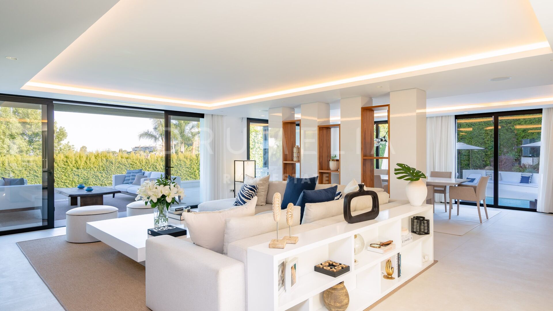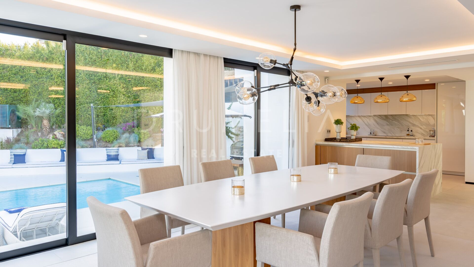 Denna eleganta villa till salu i ett utmärkt läge i Nueva Andalucía, Marbella, är platsen för att omfamna det fantastiska medelhavslivet när det är som bäst.