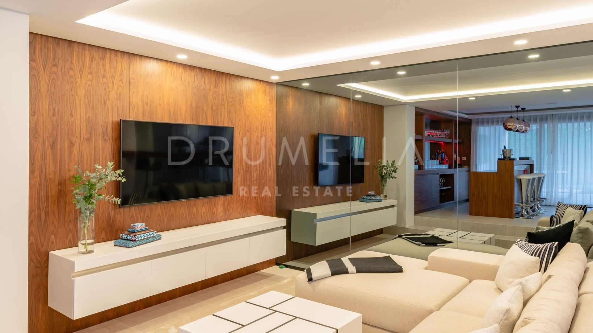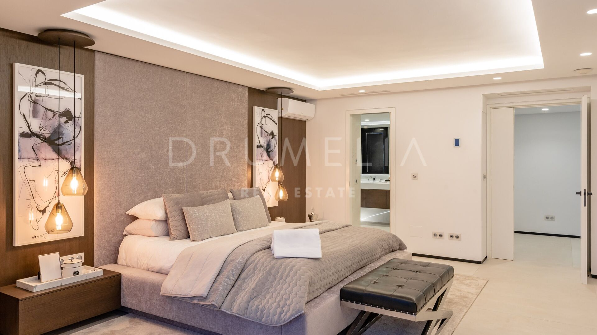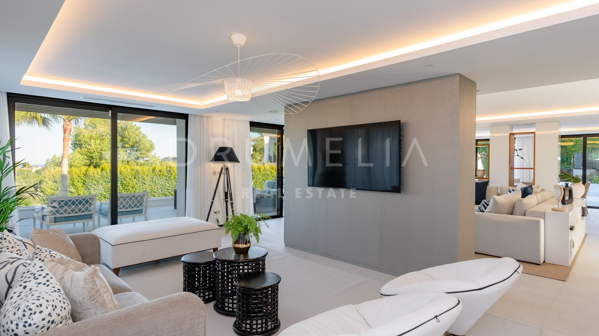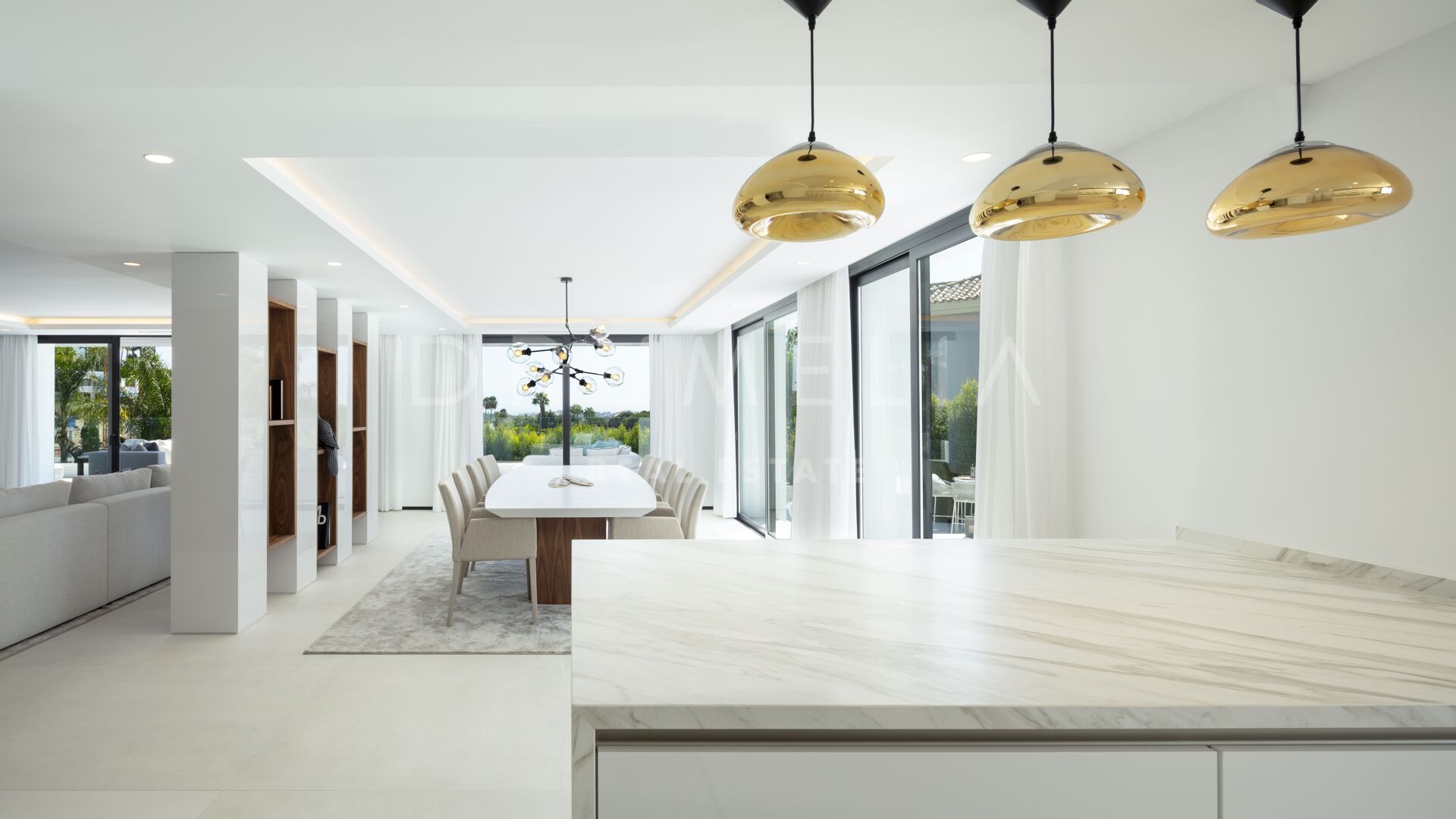 Denna eleganta villa till salu i ett utmärkt läge i Nueva Andalucía, Marbella, är platsen för att omfamna det fantastiska medelhavslivet när det är som bäst.
