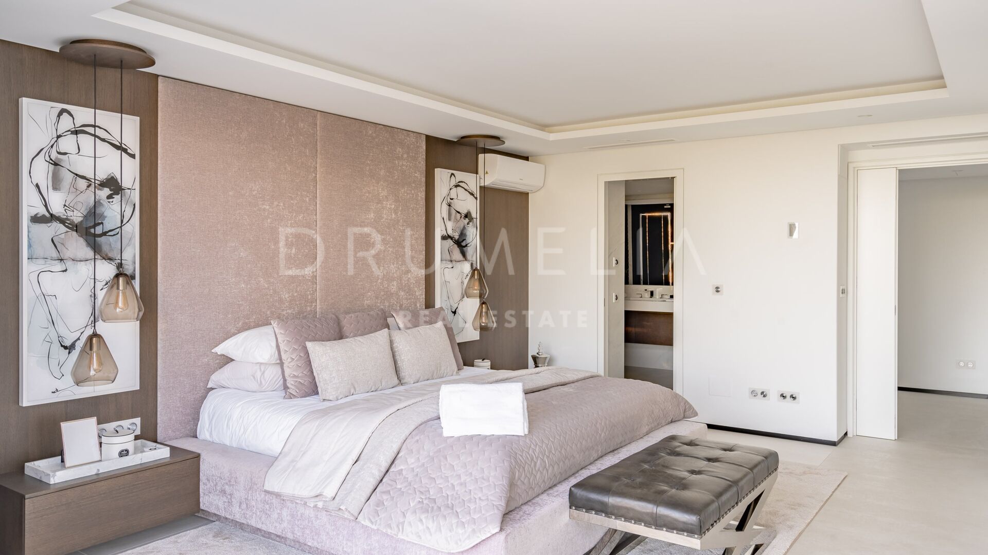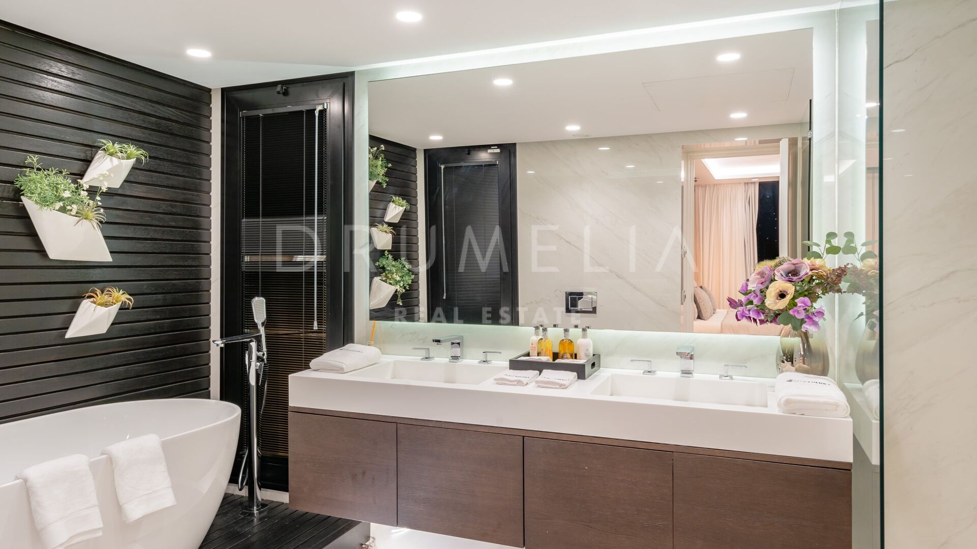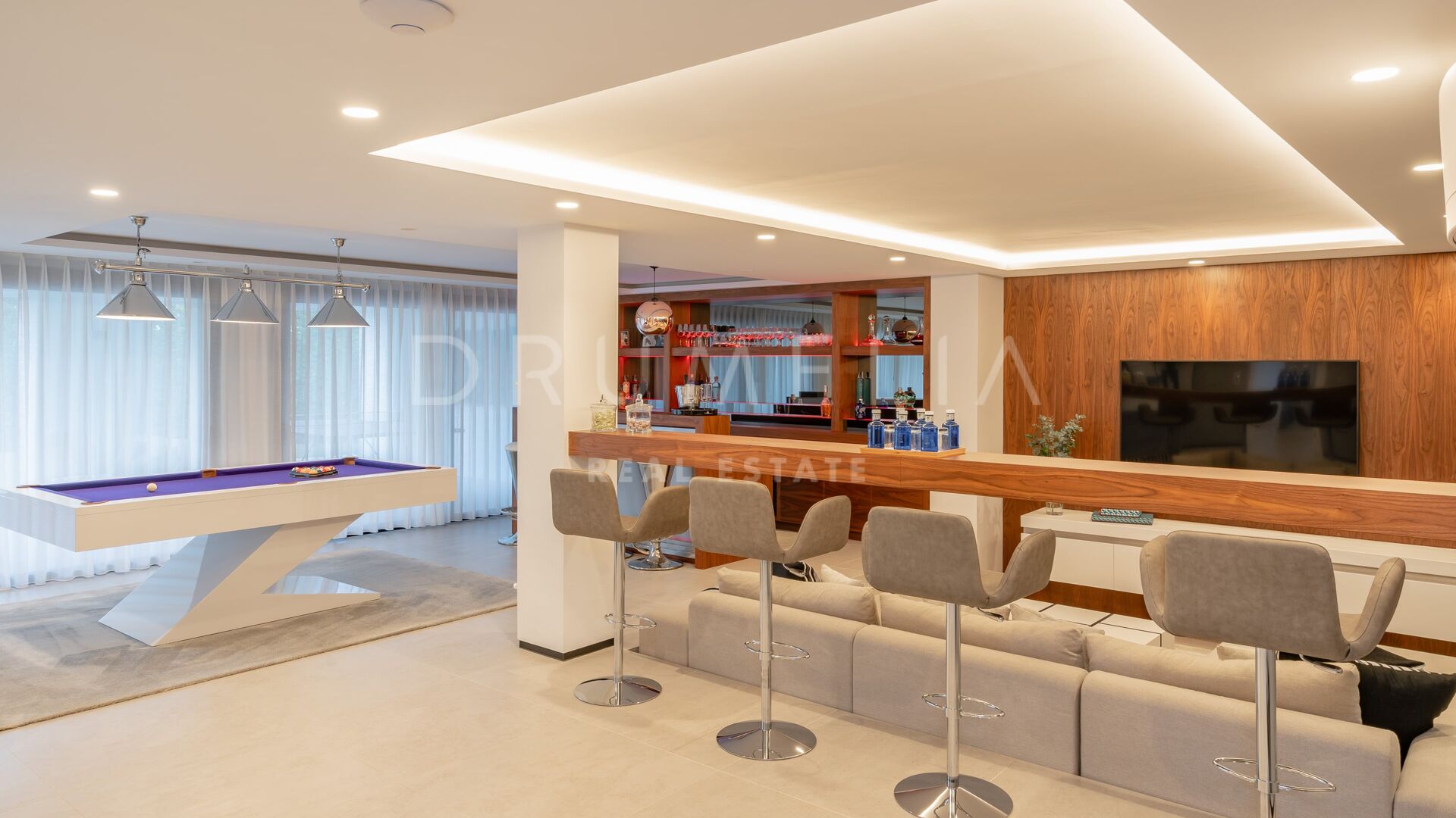 Denna lyxiga fastighet säljs med garage, gästtoalett, förråd, modern tak- och belysningsdesign, luftkonditionering, fristående badkar, inbyggda garderober och klädskåp, genomskinliga balustrader osv. Den drar nytta av många lyxiga funktioner, material av högsta kvalitet och superb utrustning och hushållsapparater. De avancerade möblerna är valfria, vilket ger dig en chans att skapa din egen sensationella inredningsvärld.
