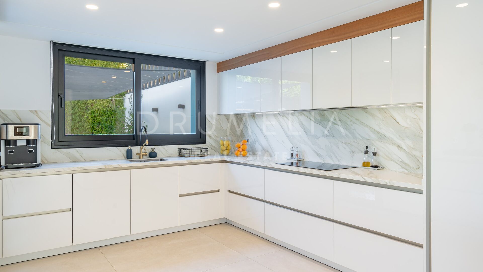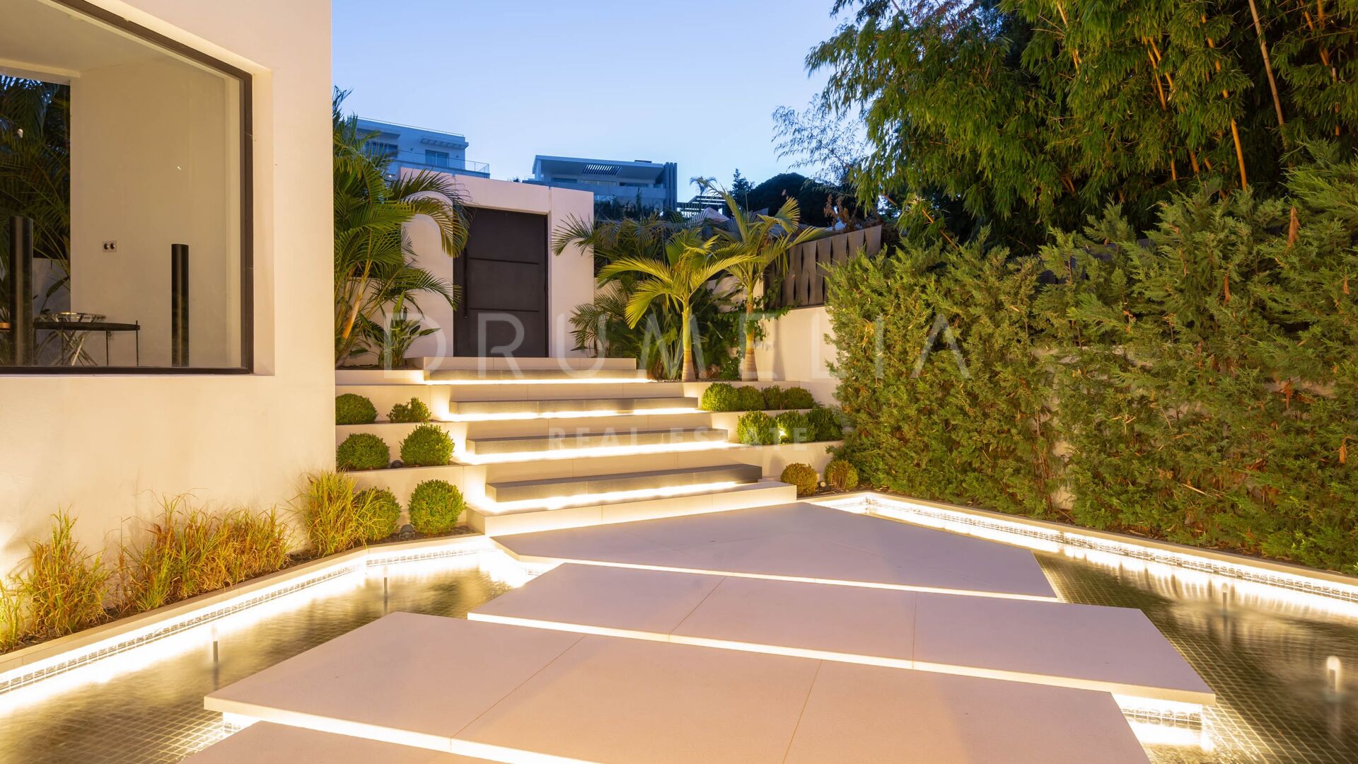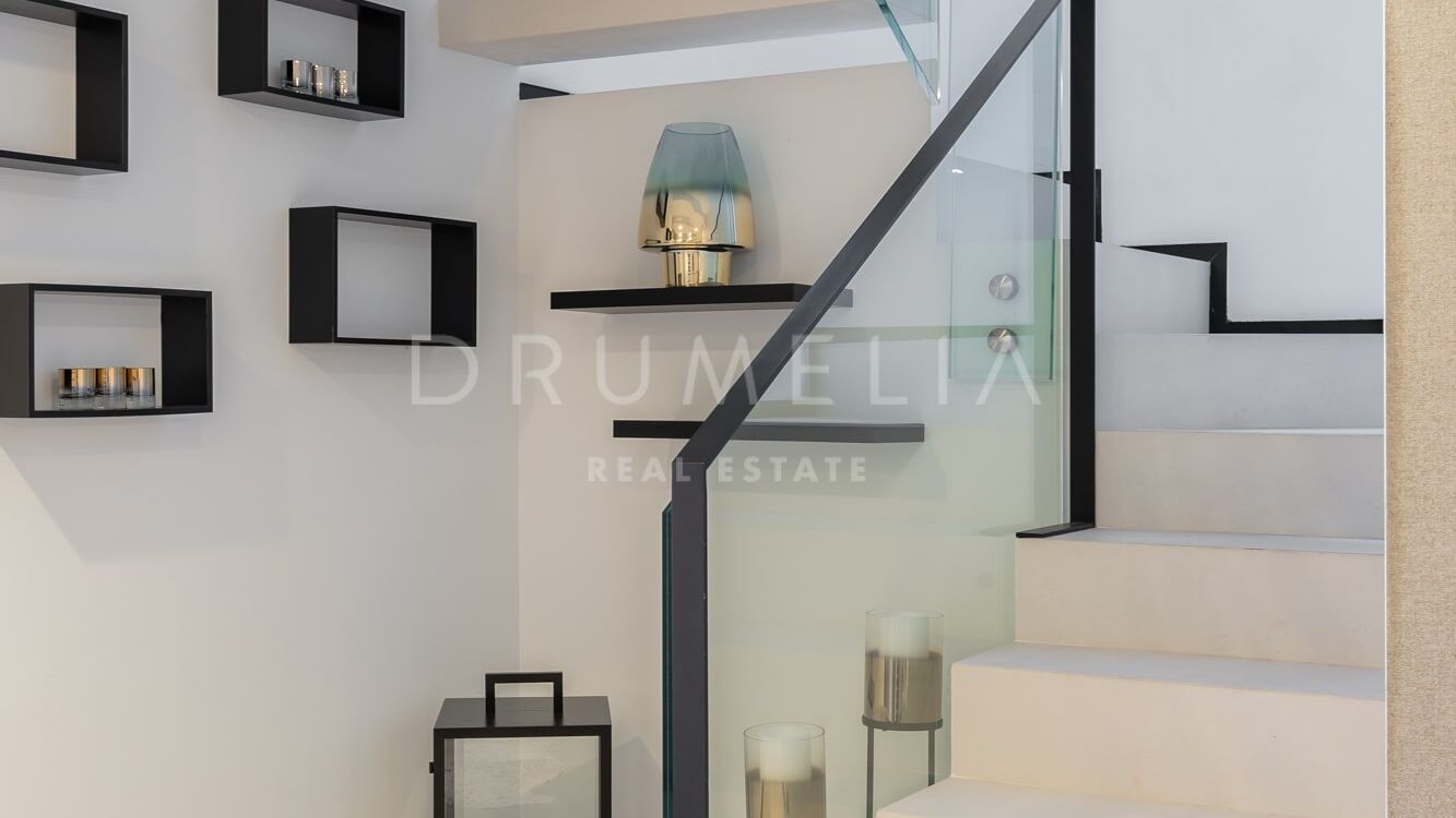 Att köpa den här villan är ett utmärkt tillfälle för dem som är intresserade av ett exceptionellt bekvämt liv i vackra Nueva Andalucía omgiven av liknande högklassiga fastigheter och frodig subtropisk grönska. Exklusiviteten hos fastigheten börjar med dess läge. Den här ligger i närheten av de prestigefyllda Los Naranjos Golf och Las Brisas Golf.