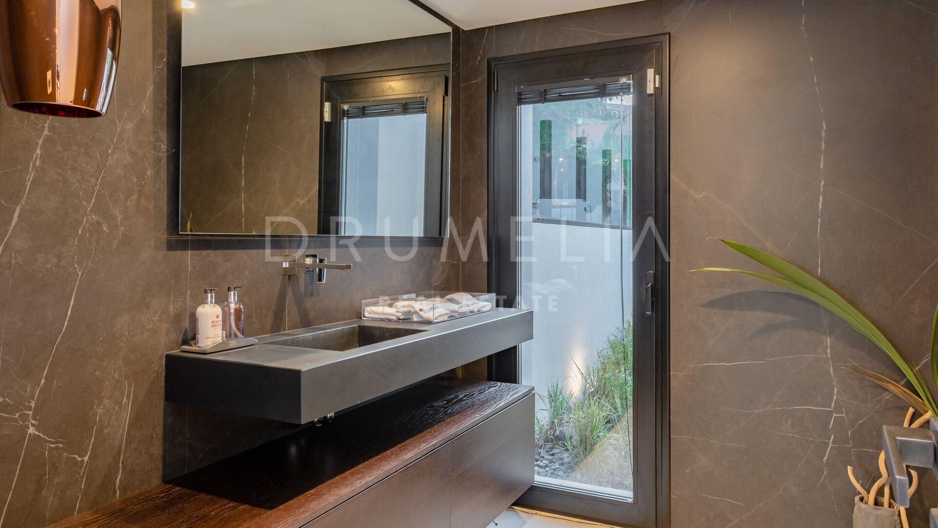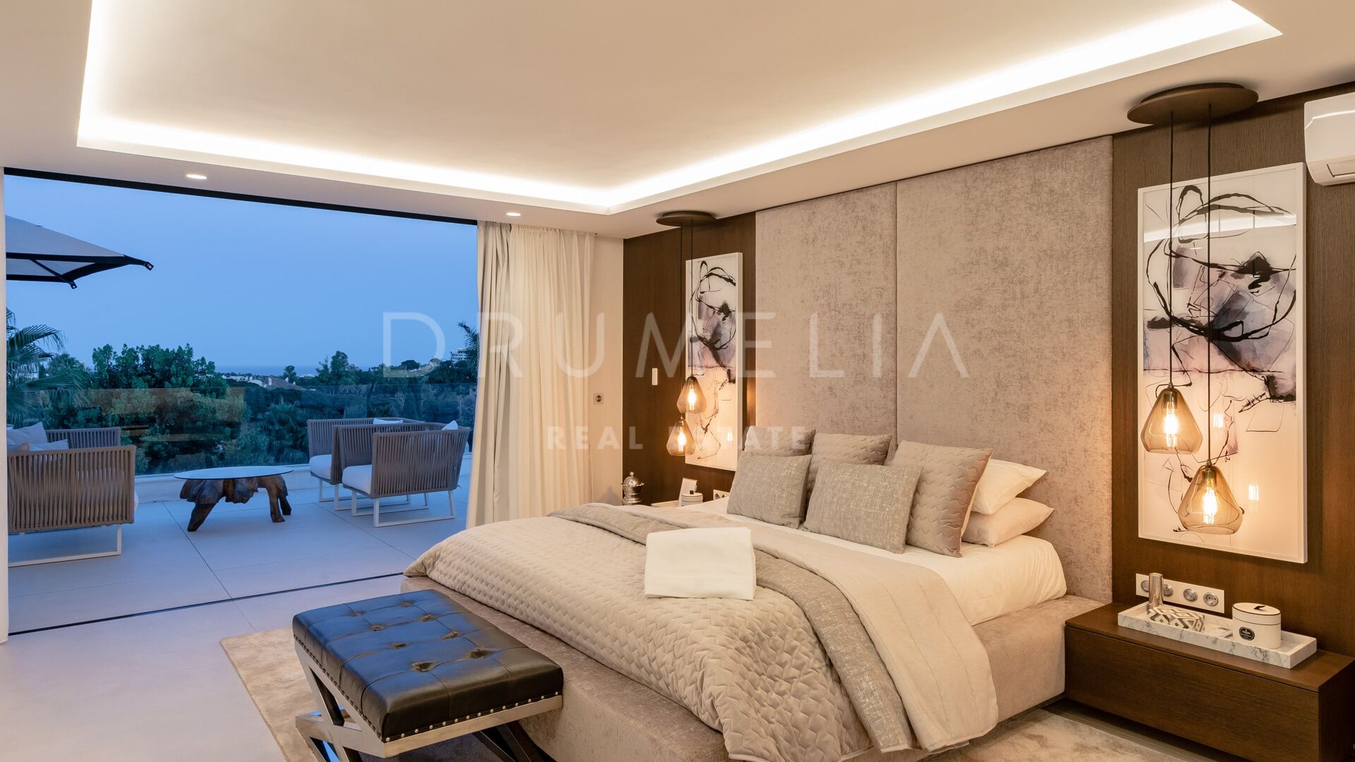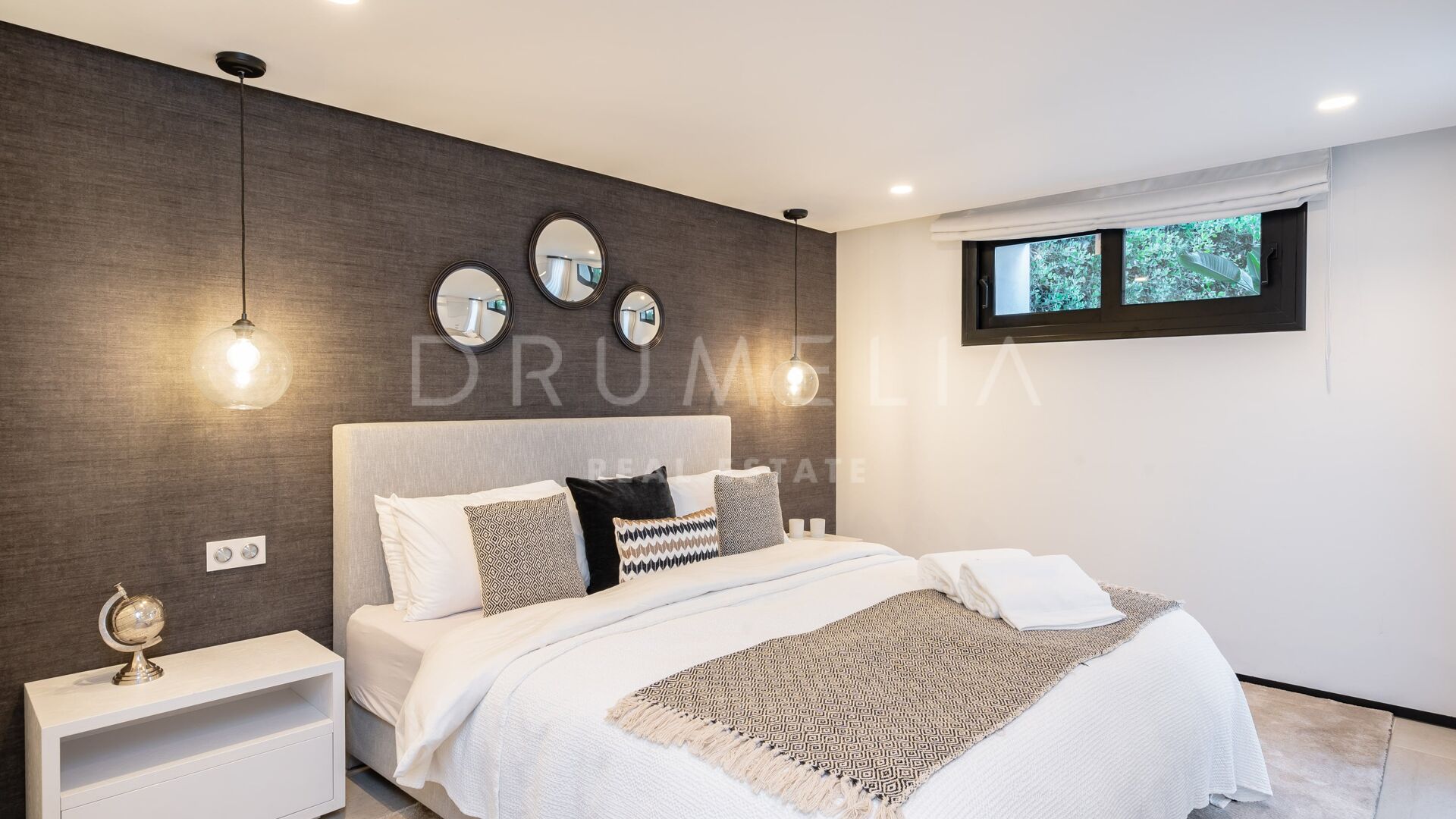 Att köpa den här villan är ett utmärkt tillfälle för dem som är intresserade av ett exceptionellt bekvämt liv i vackra Nueva Andalucía omgiven av liknande högklassiga fastigheter och frodig subtropisk grönska. Exklusiviteten hos fastigheten börjar med dess läge. Den här ligger i närheten av de prestigefyllda Los Naranjos Golf och Las Brisas Golf.