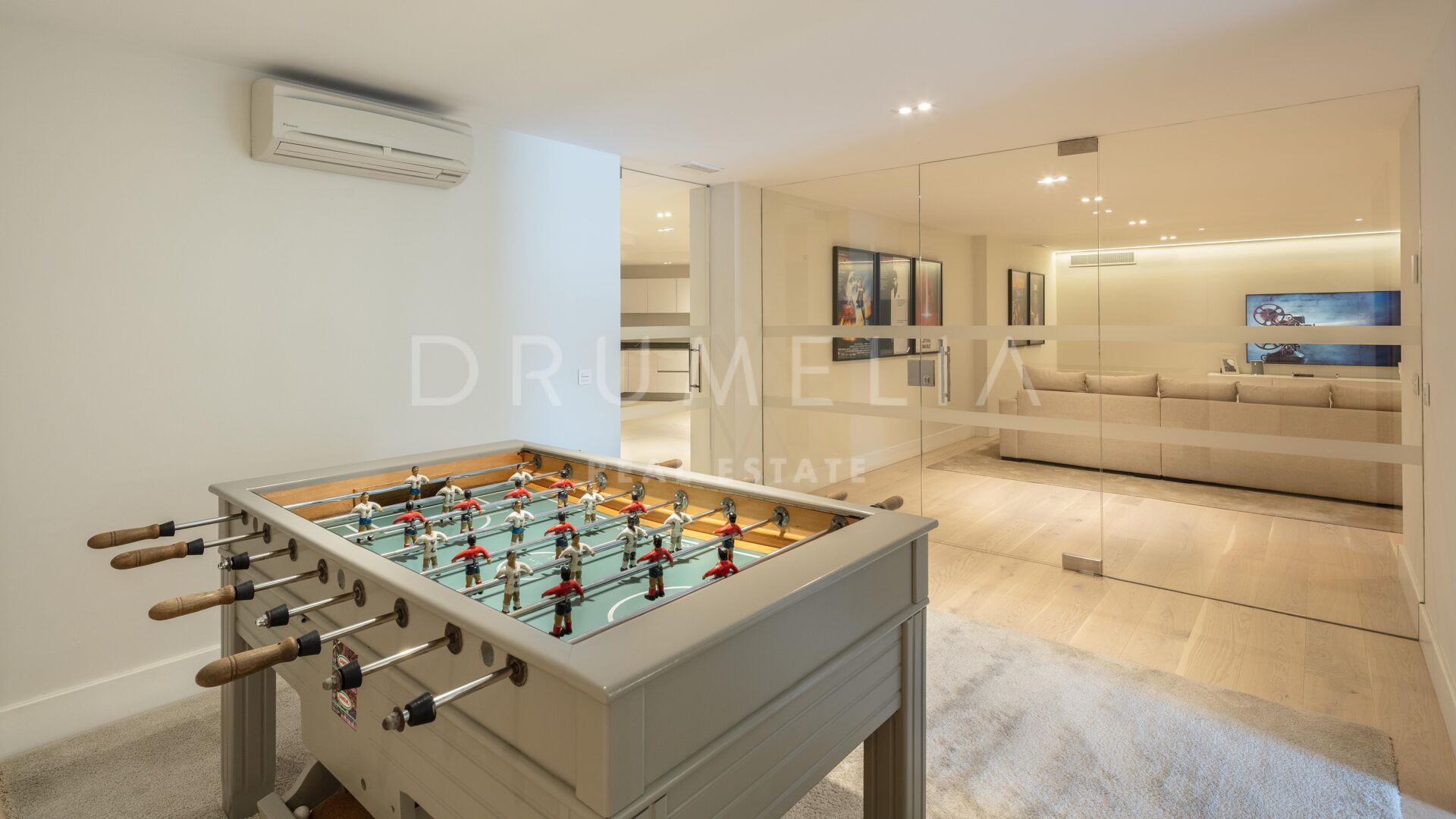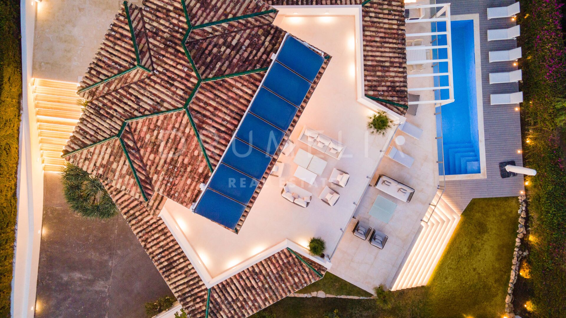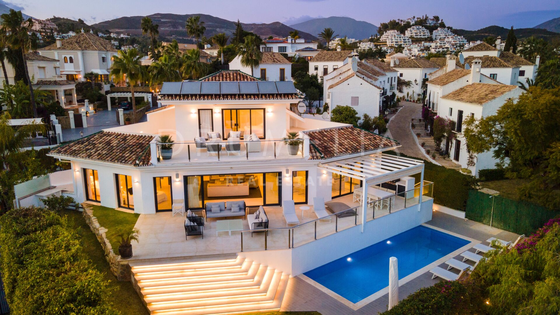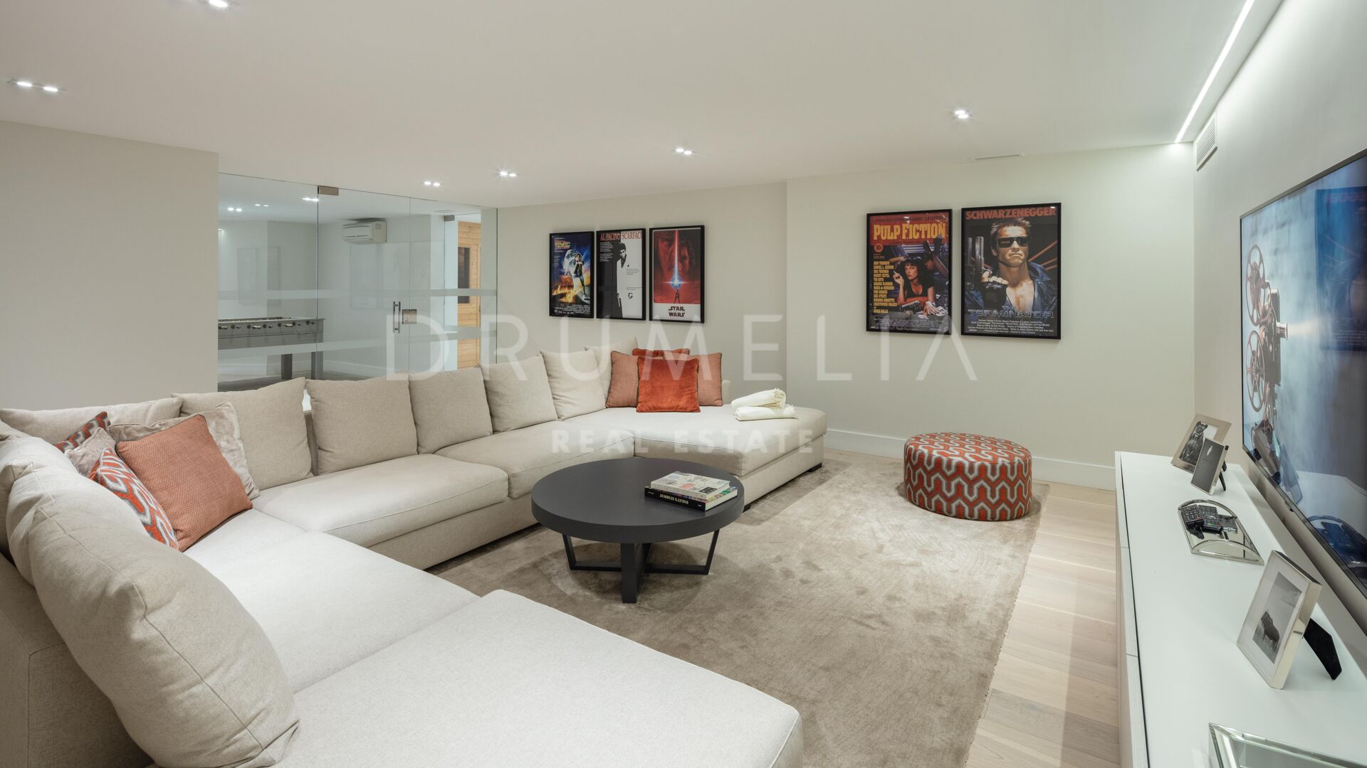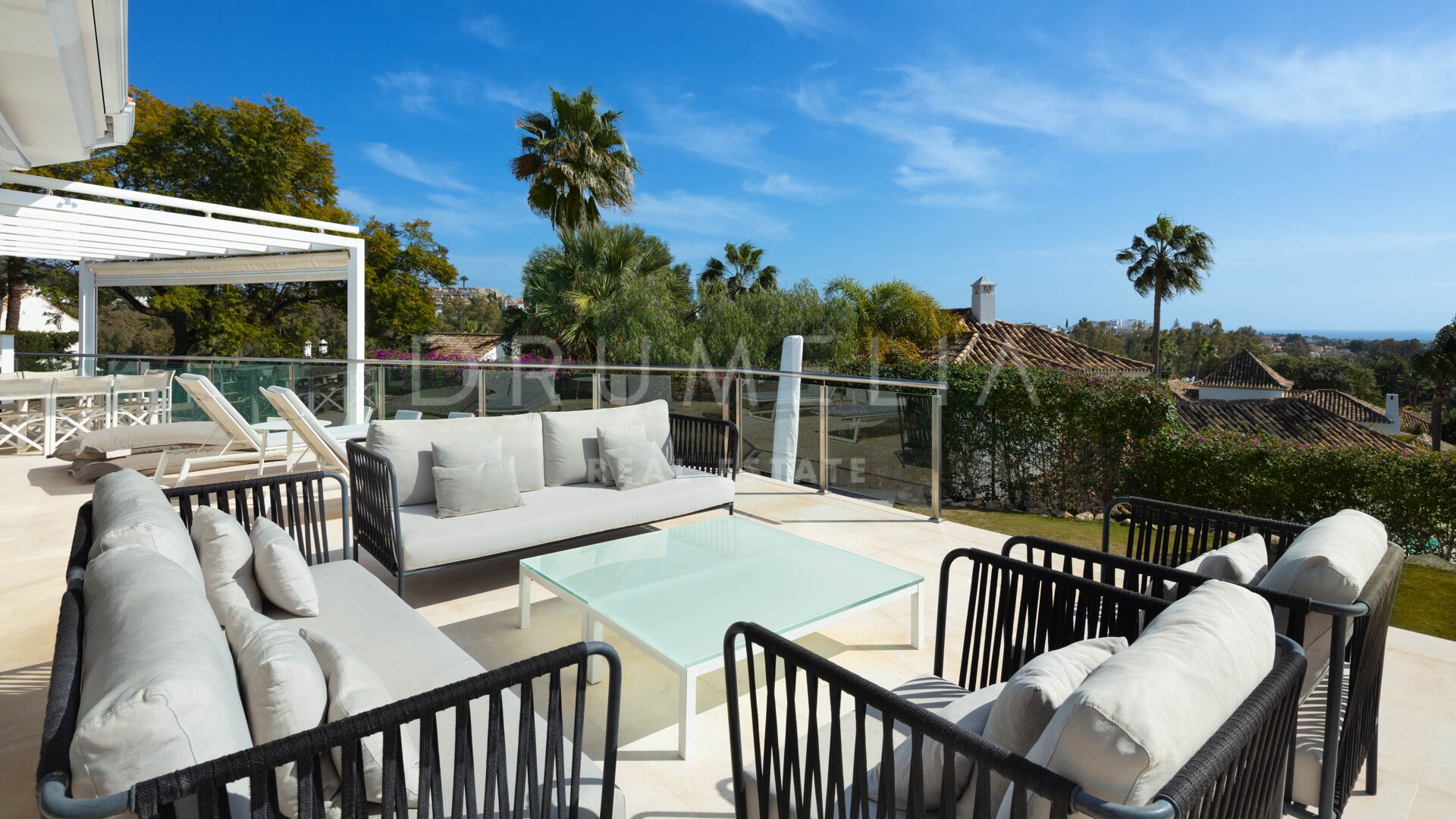 Denna helt nyrenoverade familjevilla till salu ligger i hjärtat av golfdalen i Nueva Andalucia, Marbella. Det gör det möjligt att njuta av modern atmosfär och alla bekvämligheter i det eleganta hemmet och dess bekväma läge bara några minuter från fantastiska golfbanor och alla bekvämligheter, inklusive internationella skolor, barer och restauranger, ekologiska kaféer, gatumarknad, tennisklubbar och gym, affärer och stormarknader, samt kasino, stränder med blå flagg, nattklubbar och strandklubbar i den världsberömda hamnen Banus.